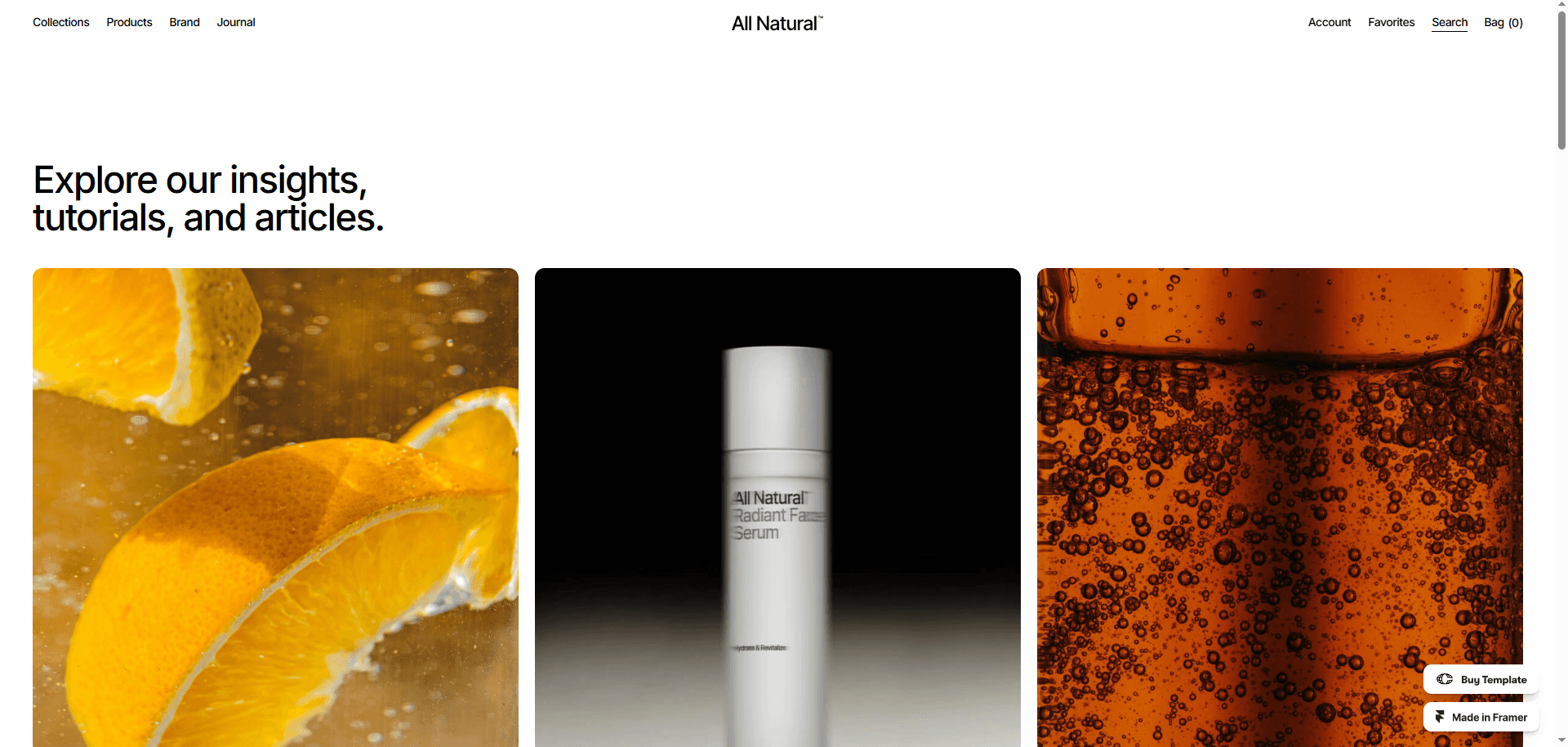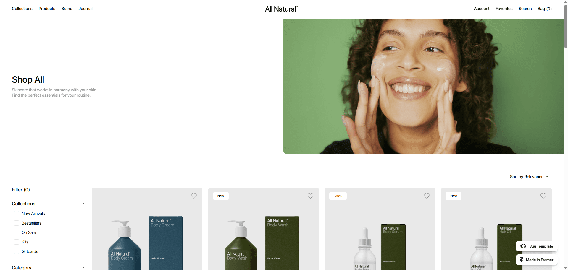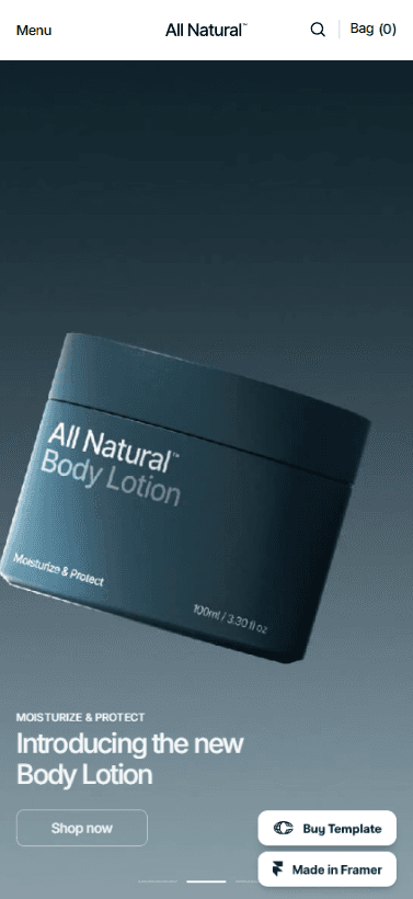 A premium Framer + Shopify template with native support for filtering, cart, wishlist, variants, and dynamic product data — get live fast with enterprise-level UX and full Shopify functionality inside Framer.