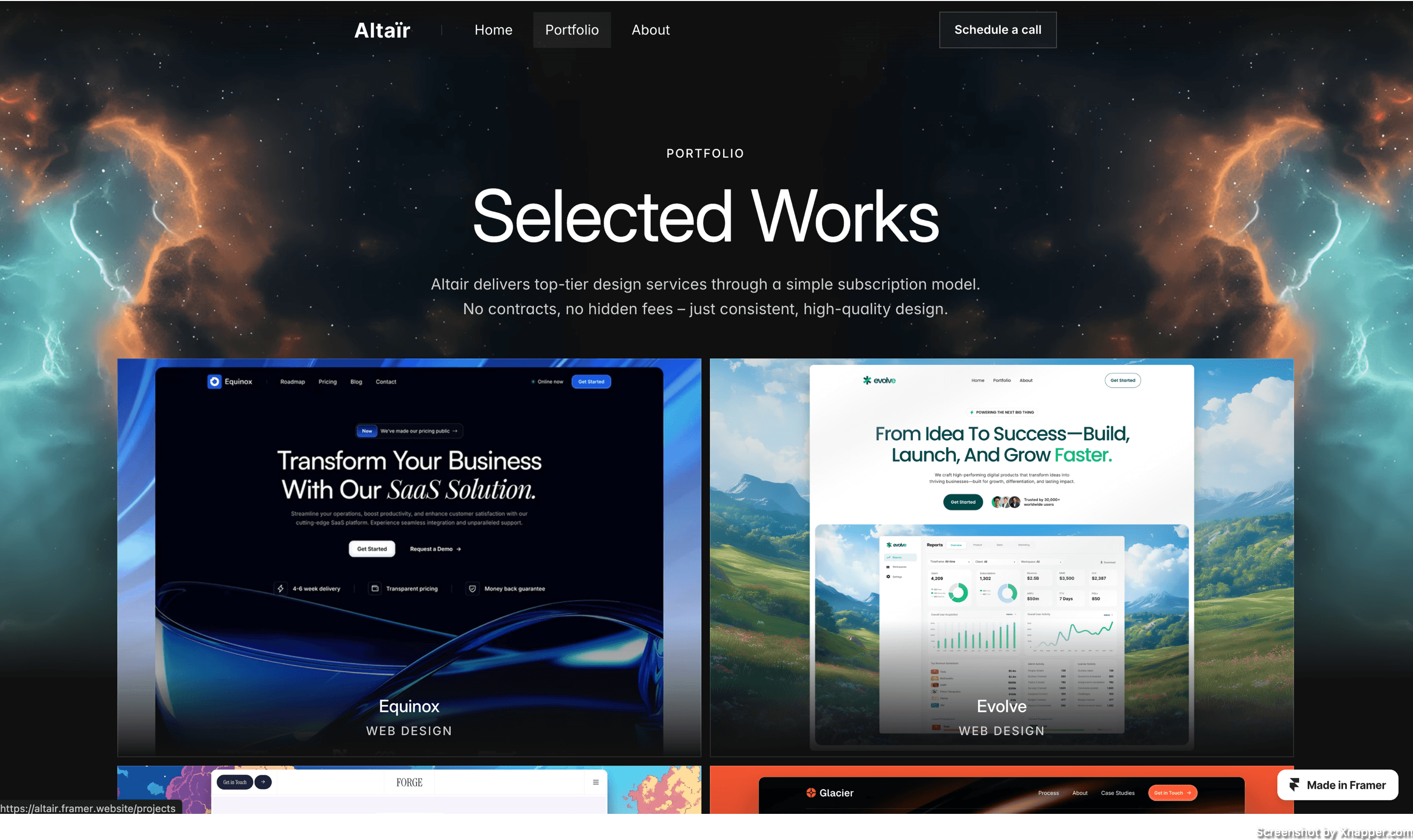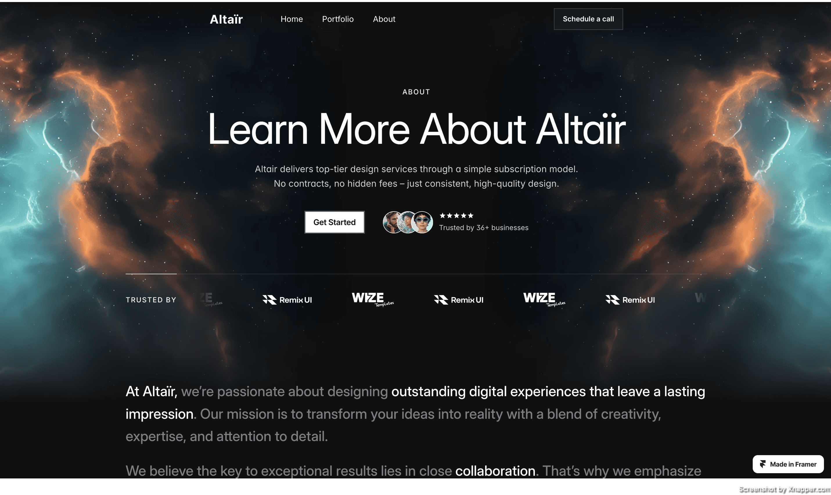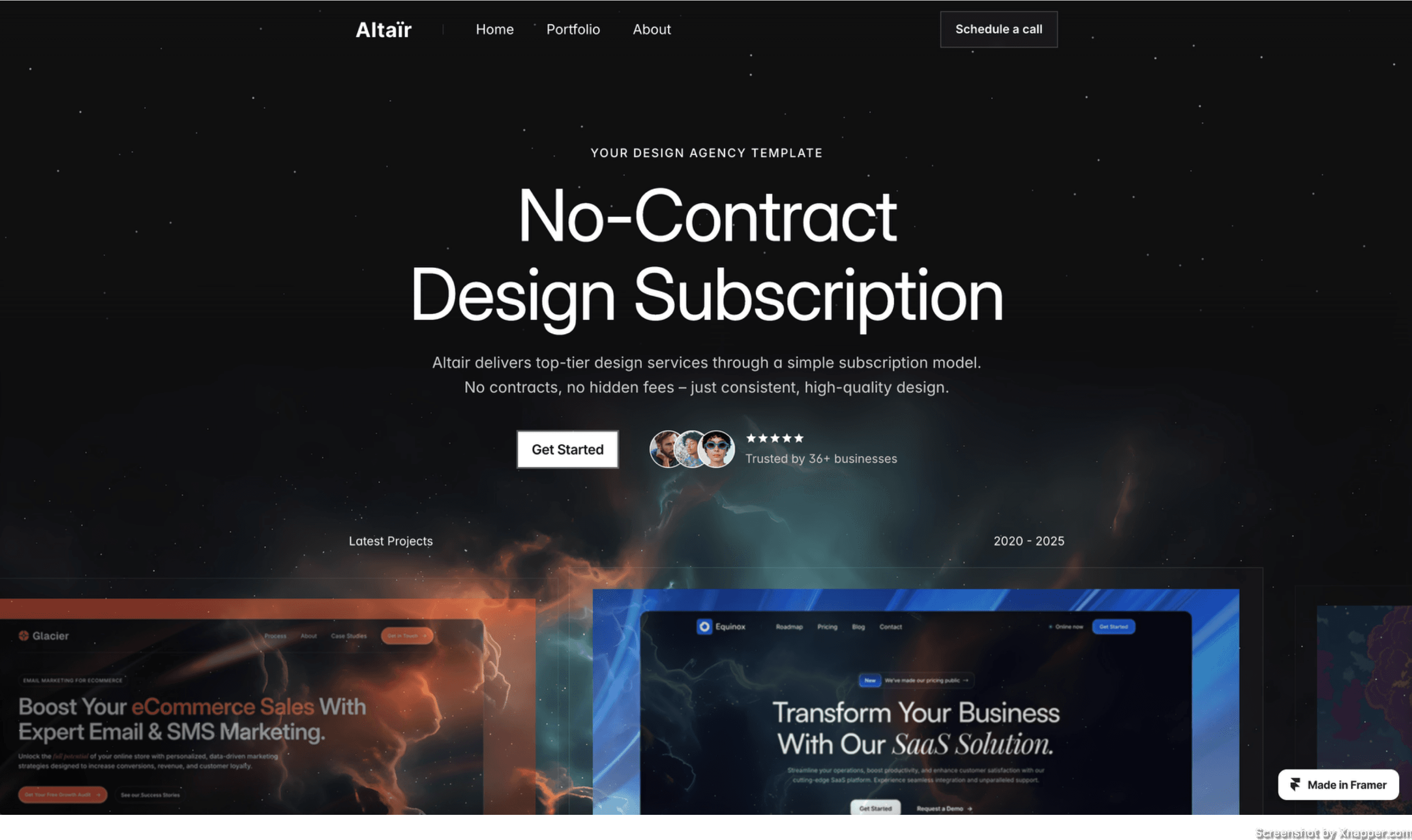 Altair is a high-converting Framer template designed for design subscription agencies.