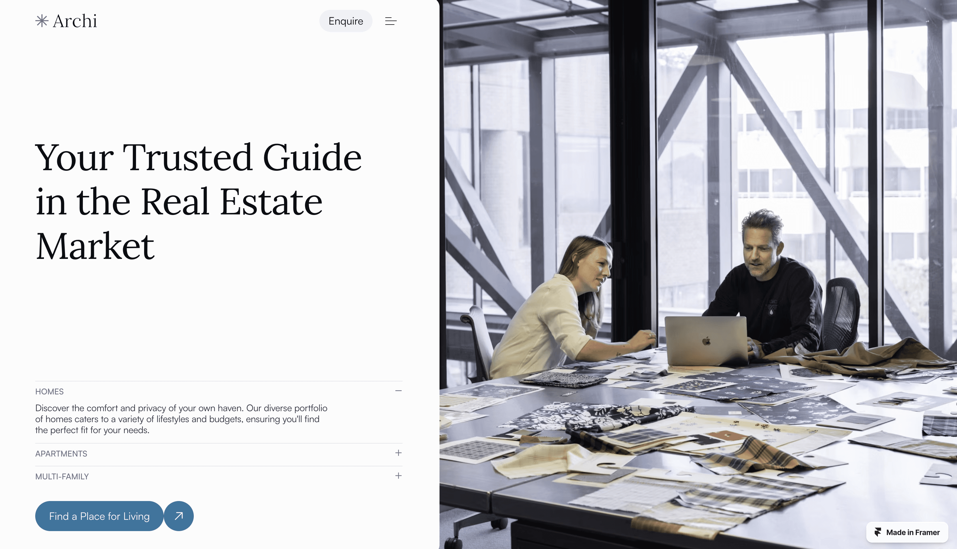 Discover Archi, a versatile Framer template designed for travel, business, real estate, and more.