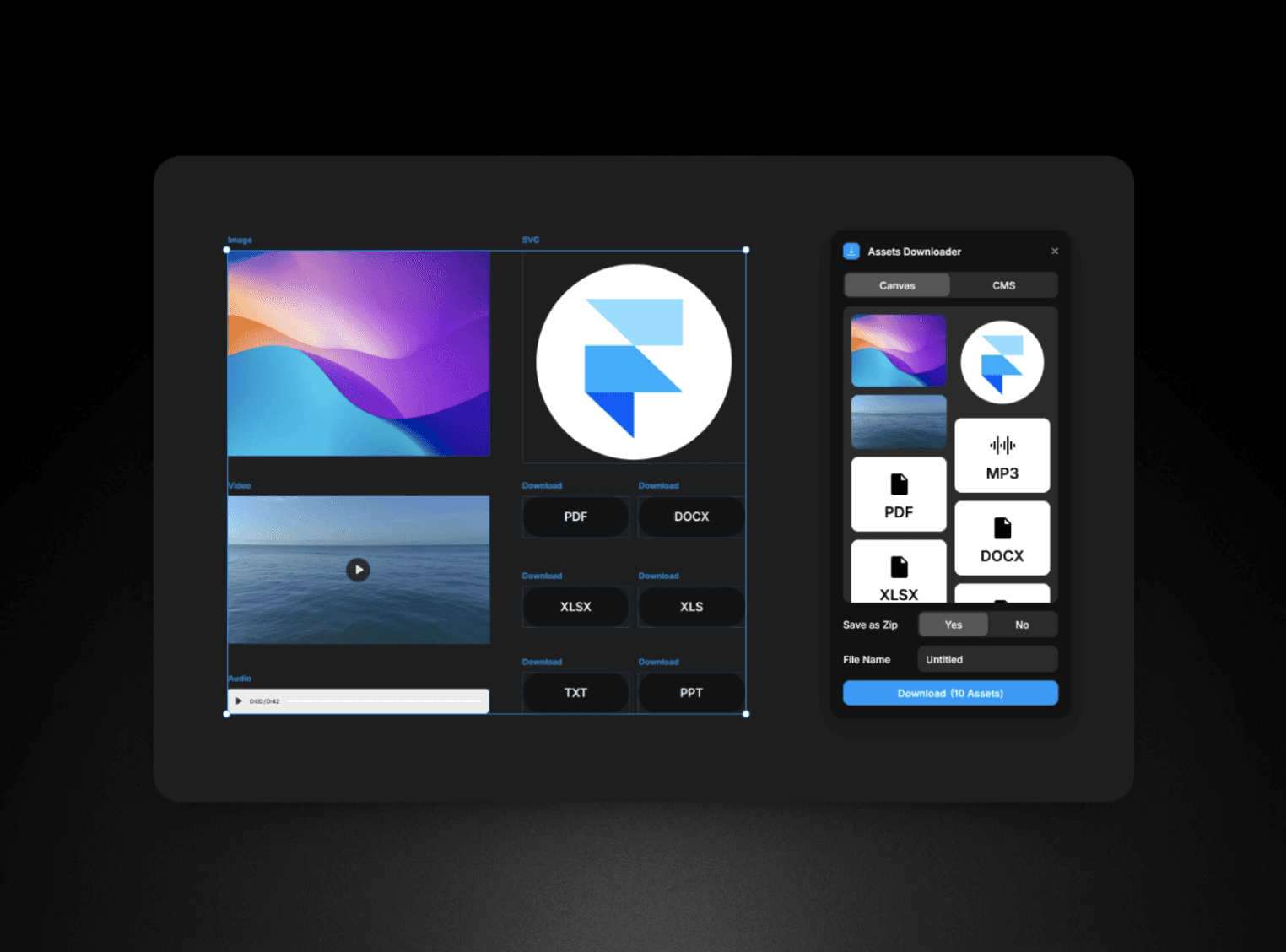 The Assets Downloader Plugin is a versatile tool designed to streamline the process of downloading various types of digital assets such as images (with SVG support), audio files, videos, and documents, all from a single interface.