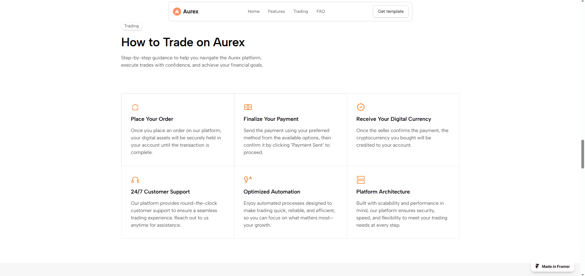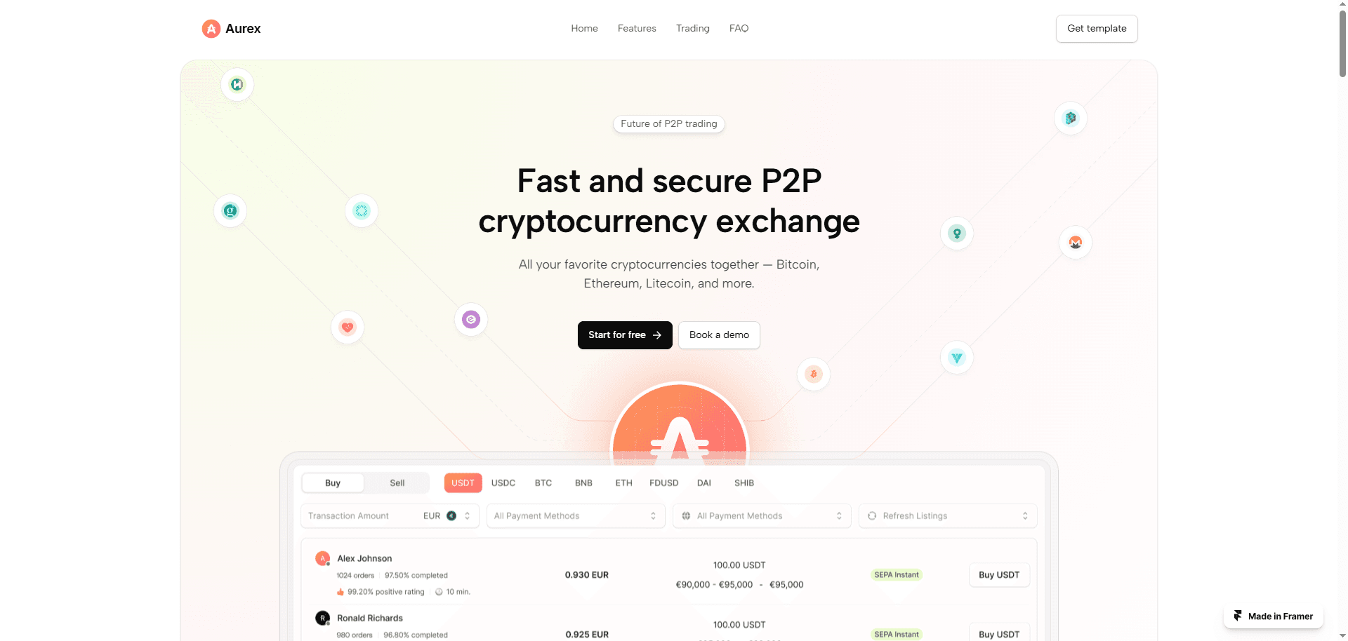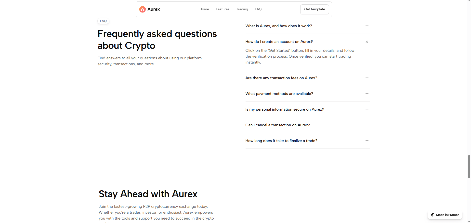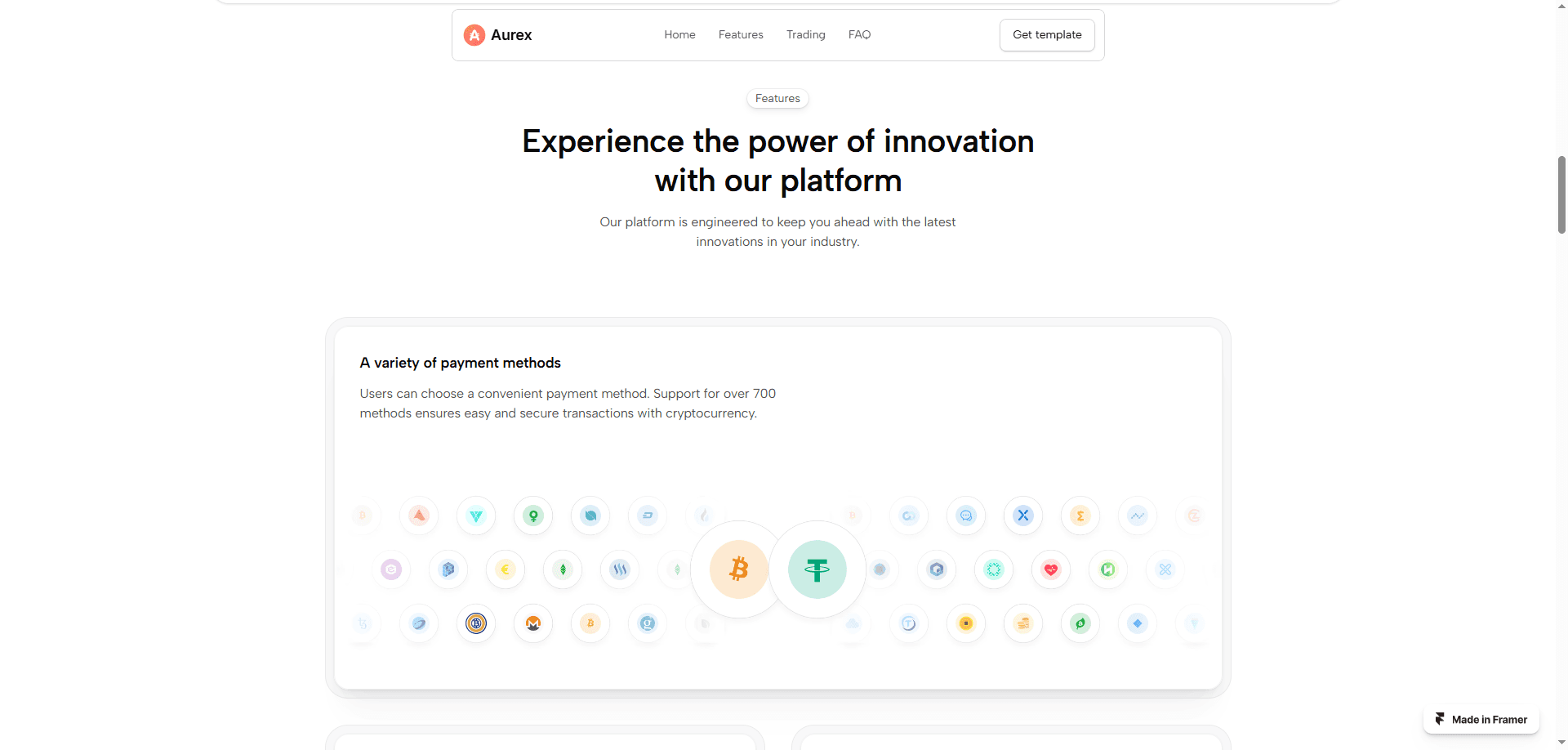 Aurex is a modern, minimalist template designed for cryptocurrency platforms, focusing on secure transactions and blockchain technology in a clean, user-friendly layout.