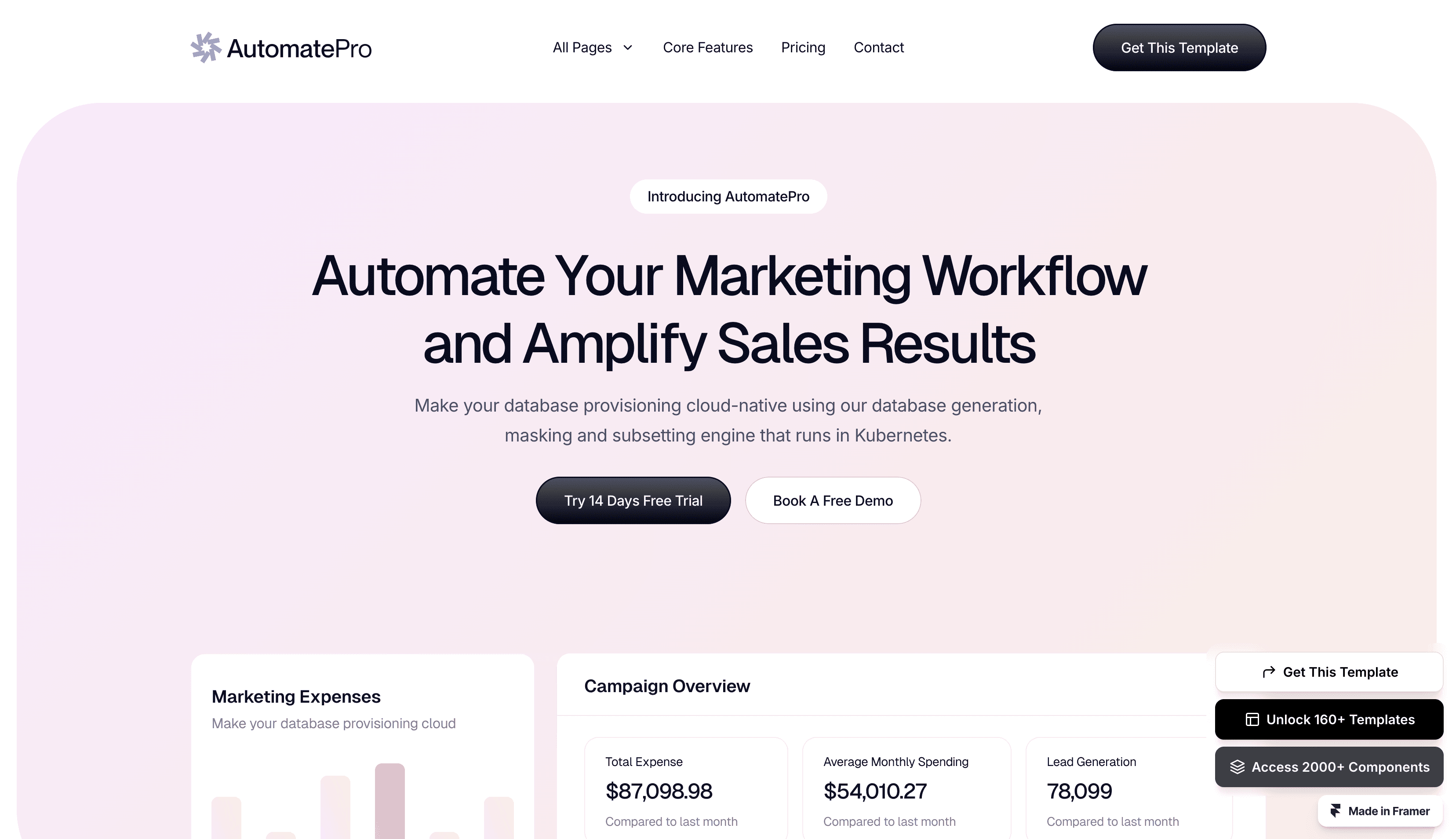 Introducing AutomatePro - the all-in-one Framer template for SaaS & startup businesses.