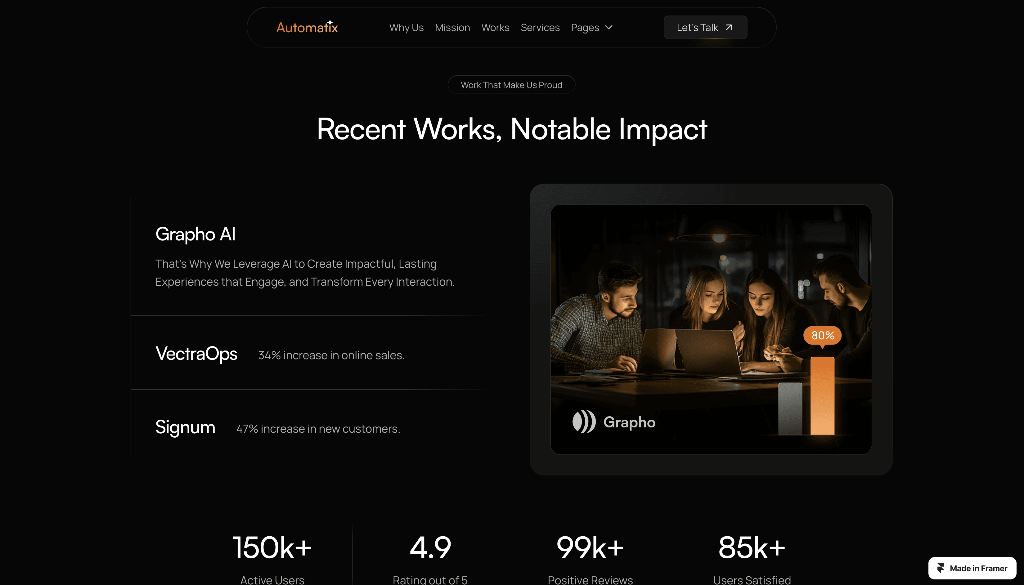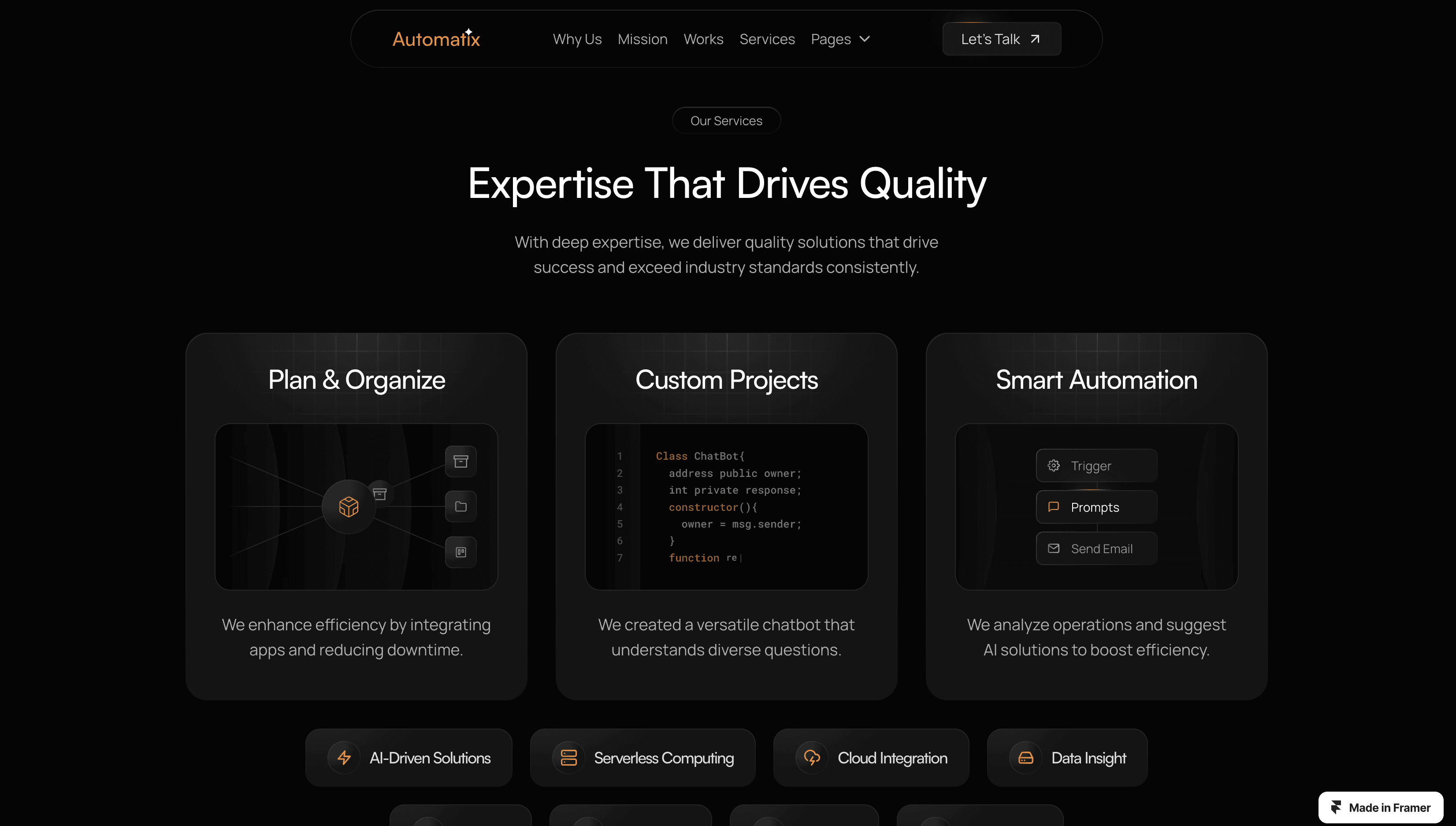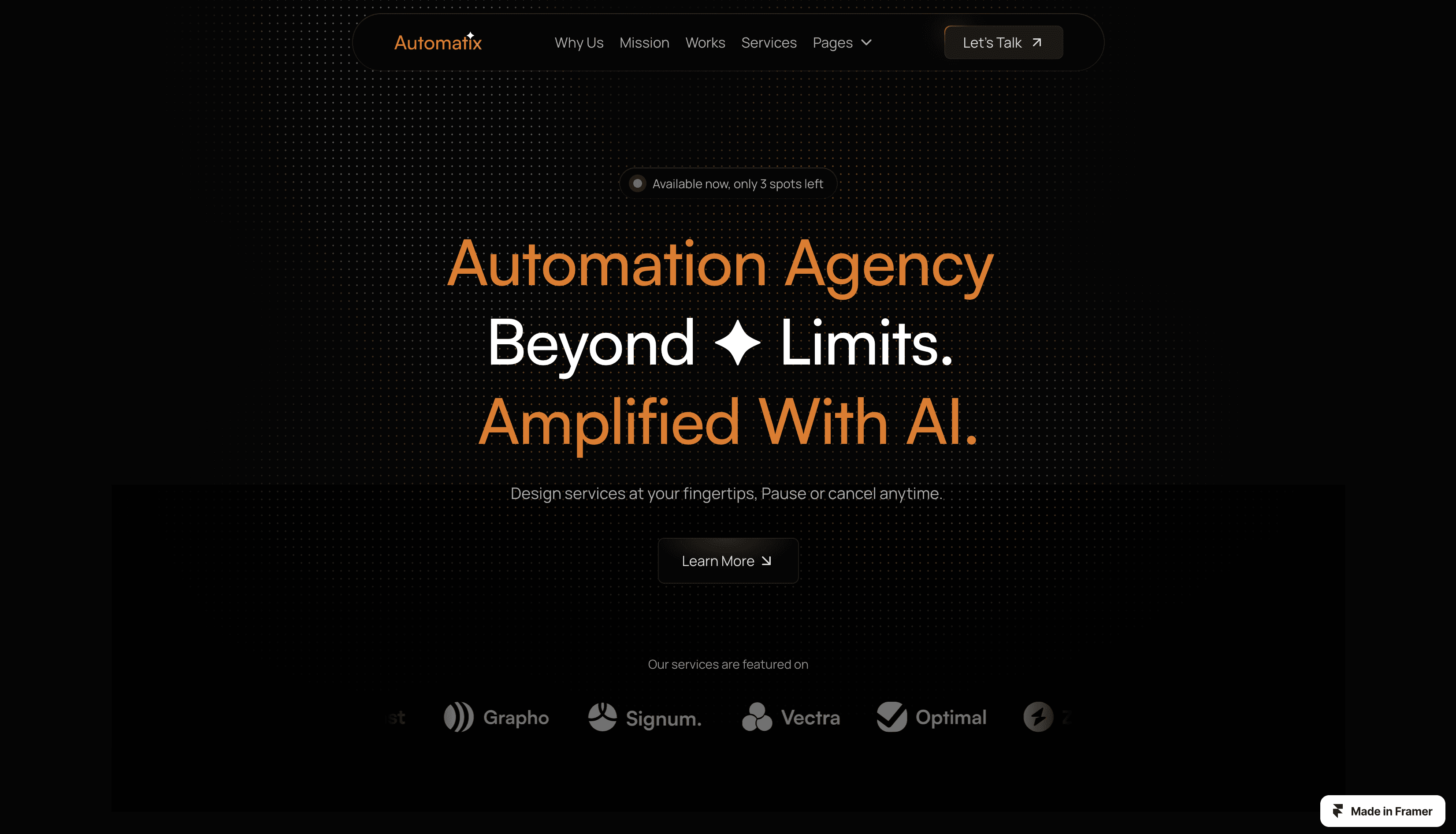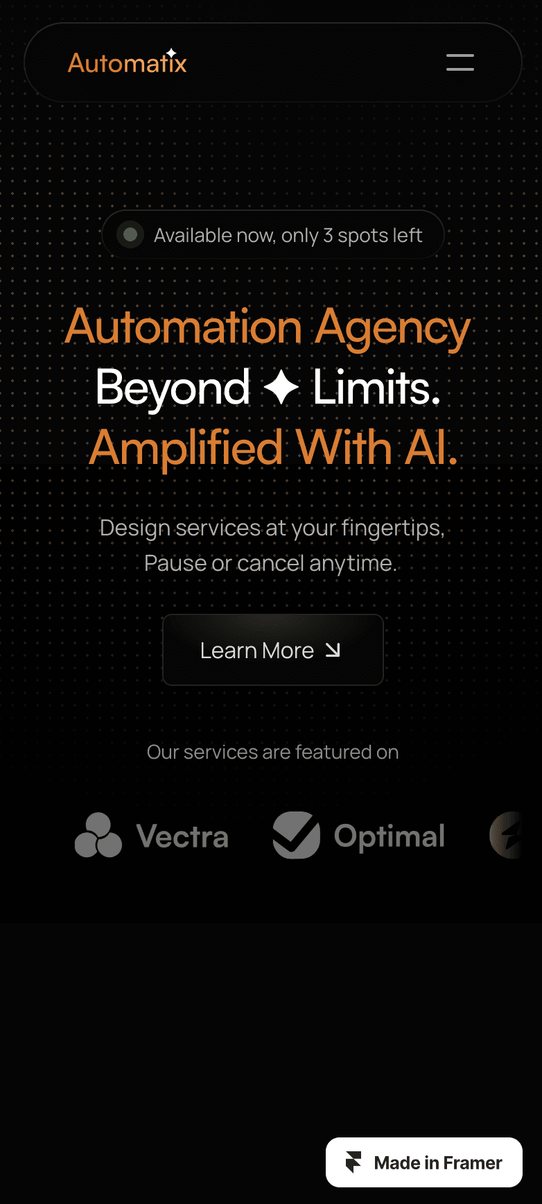 Automatix is a cutting-edge template crafted for AI agencies. Easily customizable to suit your needs, it allows you to quickly launch a professional website for your agency.