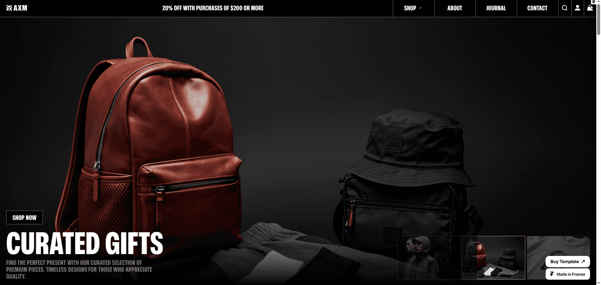 Premium e-commerce Framer template designed for fashion and lifestyle brands. Features seamless Shopify integration.