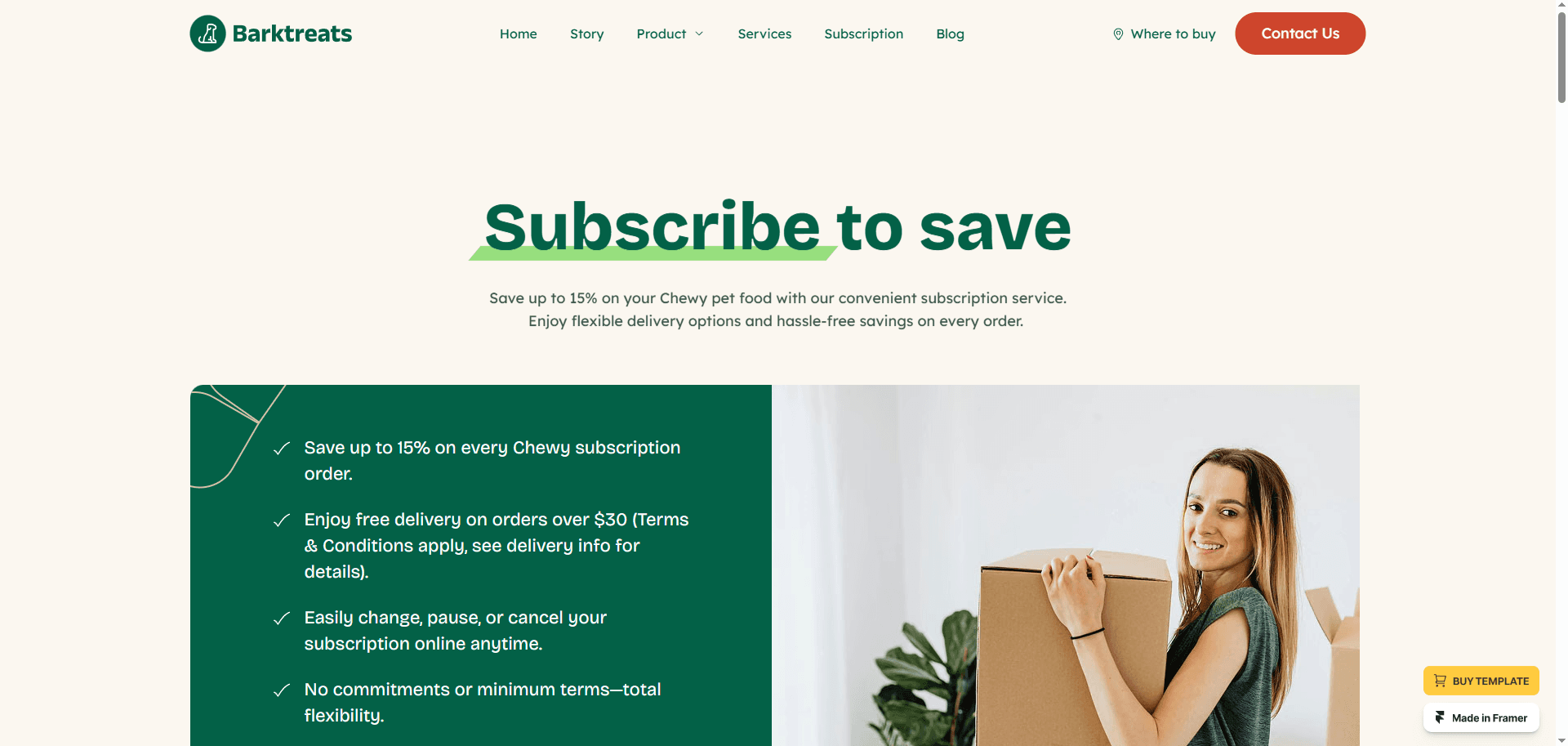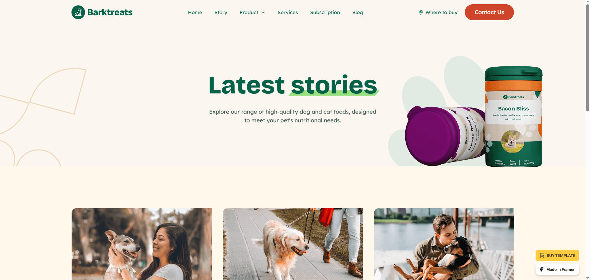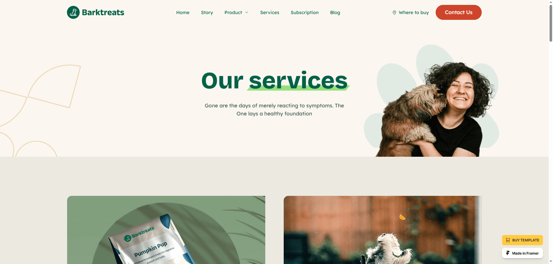 Built on Framer, this template offers a clean and modern design, with all the essential features you need to showcase pet care products & services.