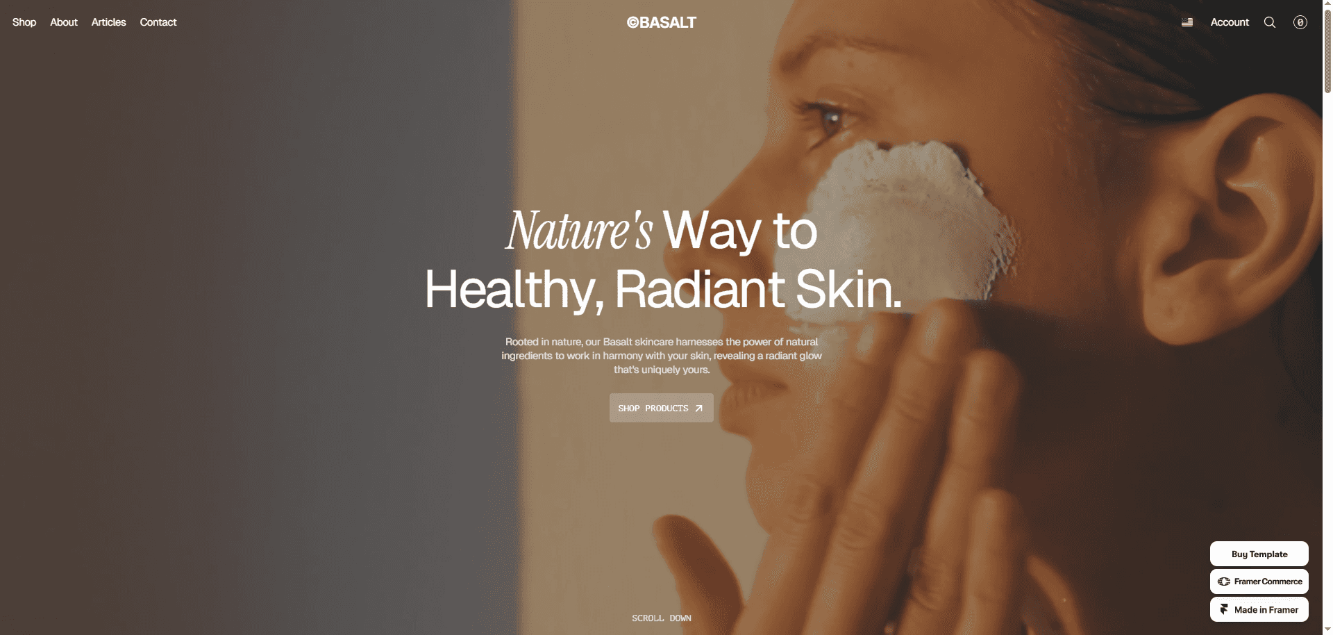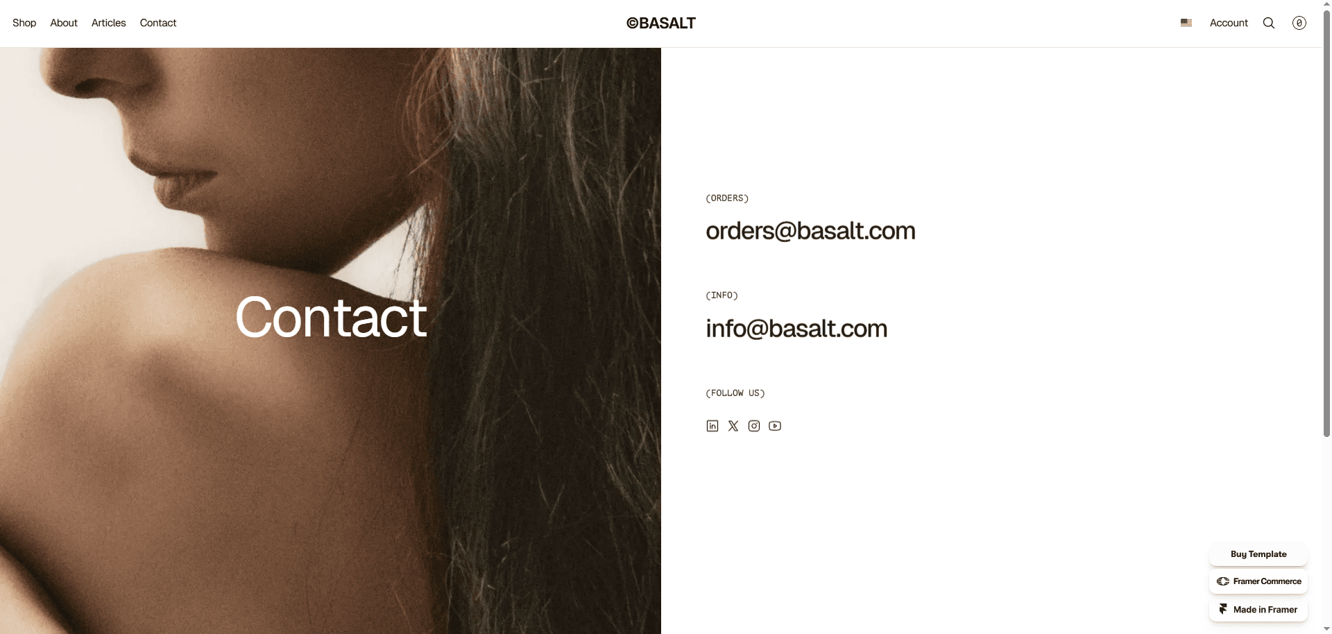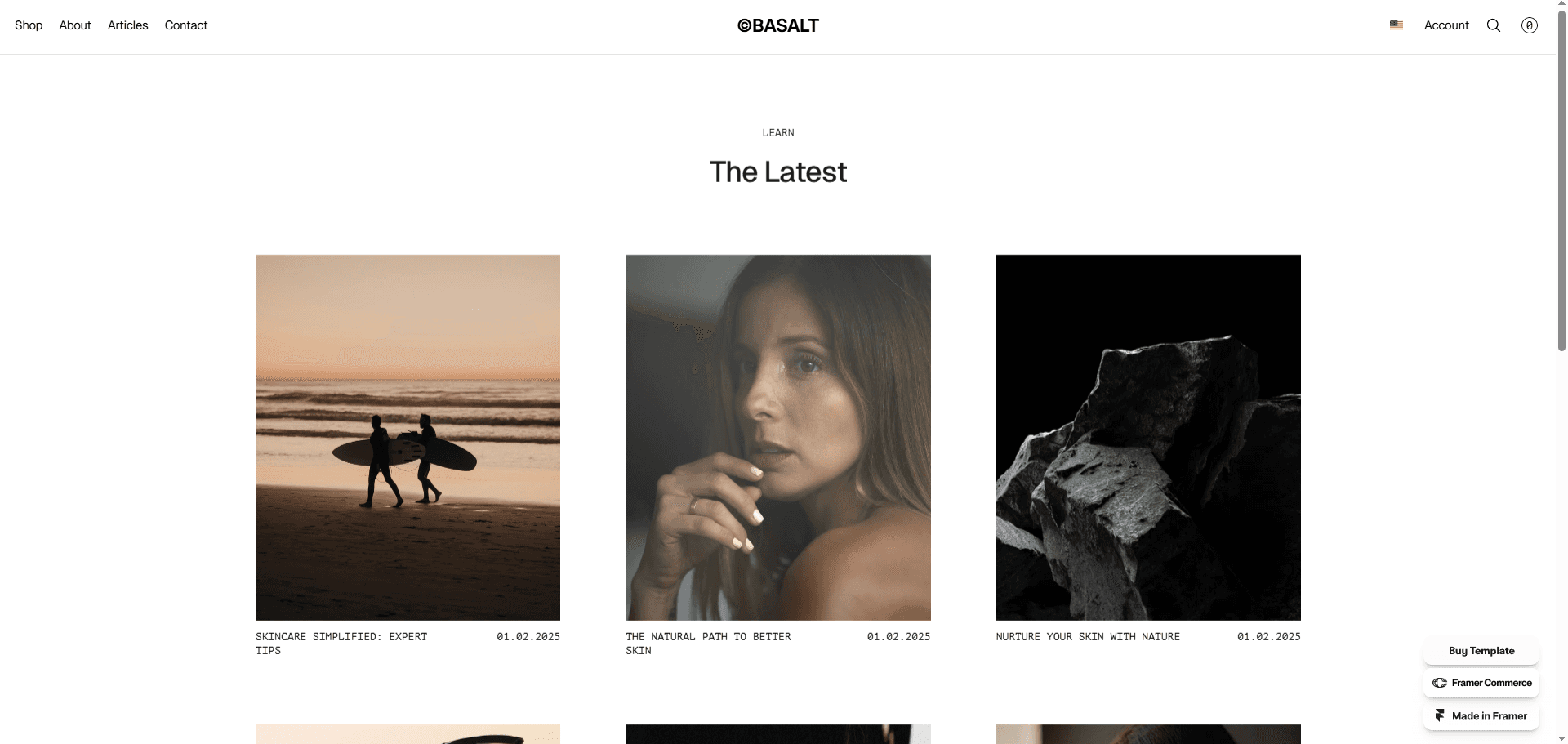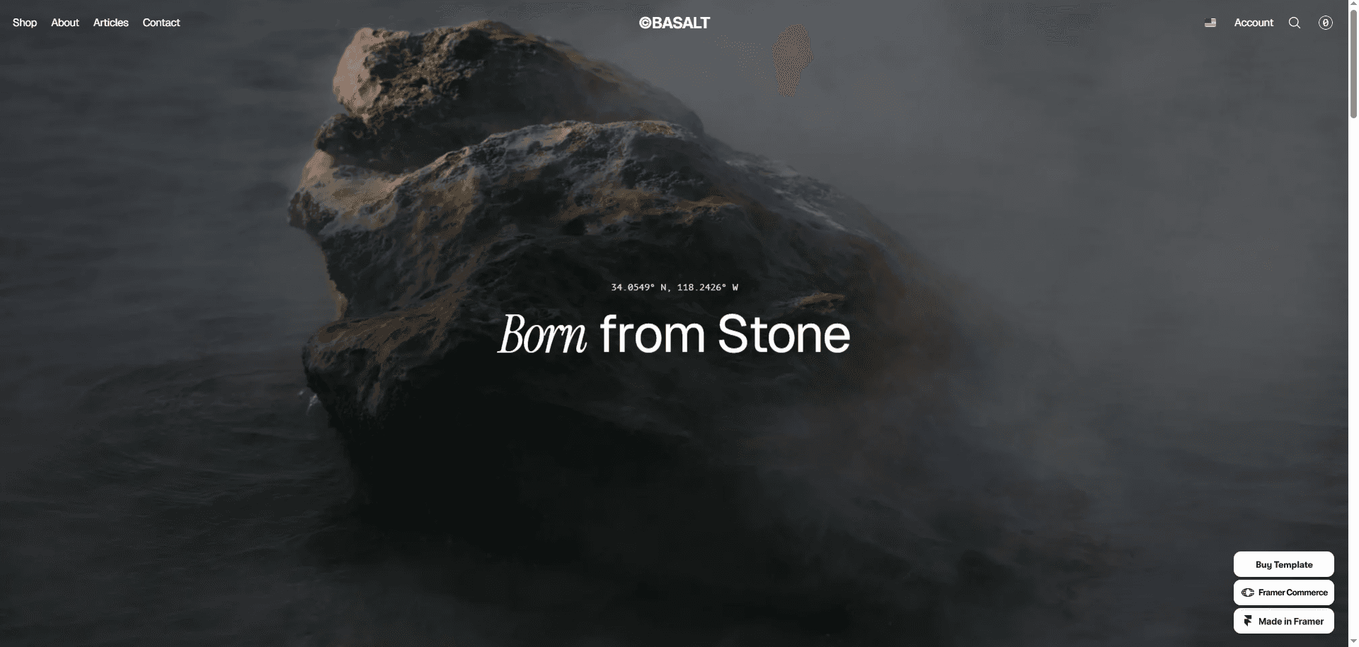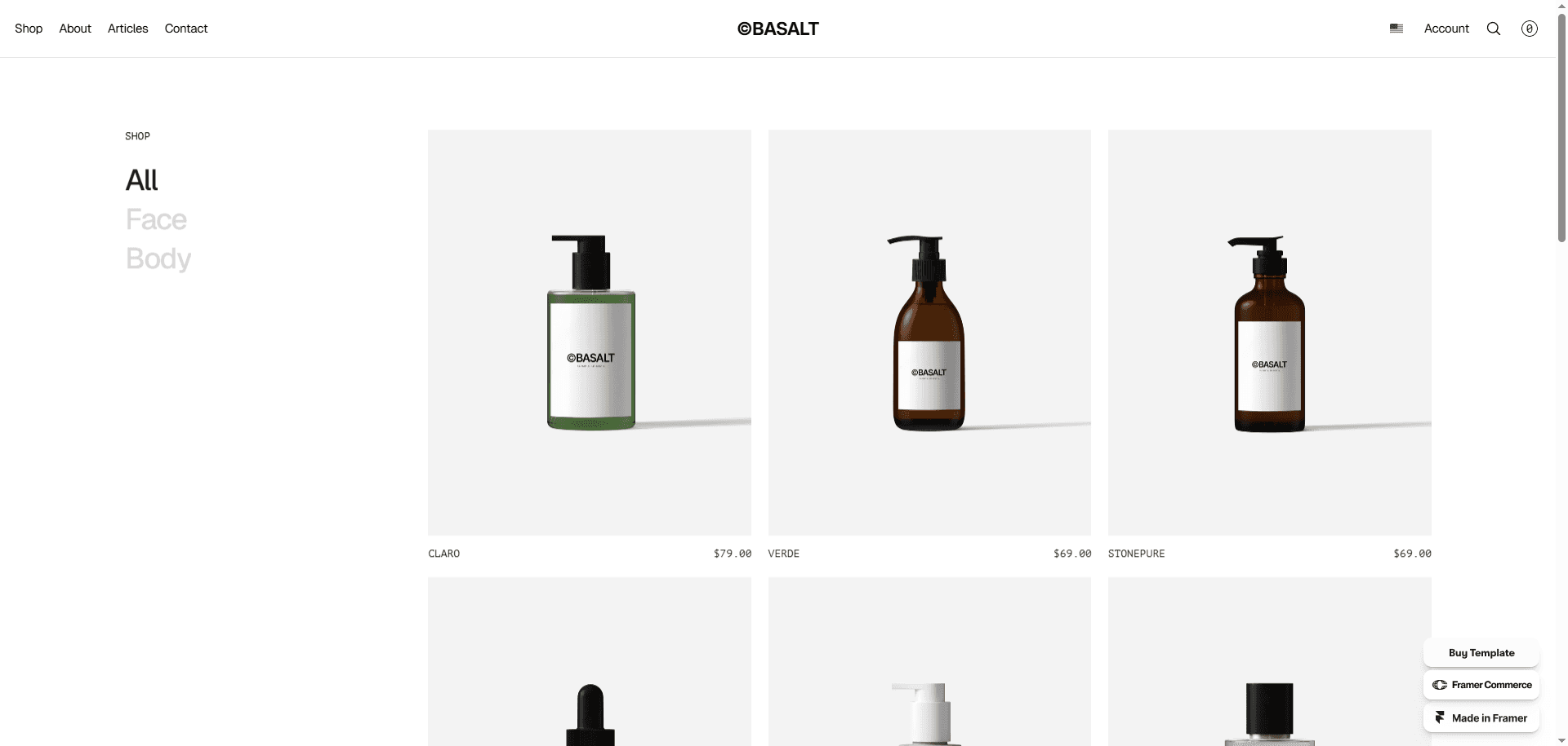 Basalt: A premium E-commerce template powered by Framer Commerce.