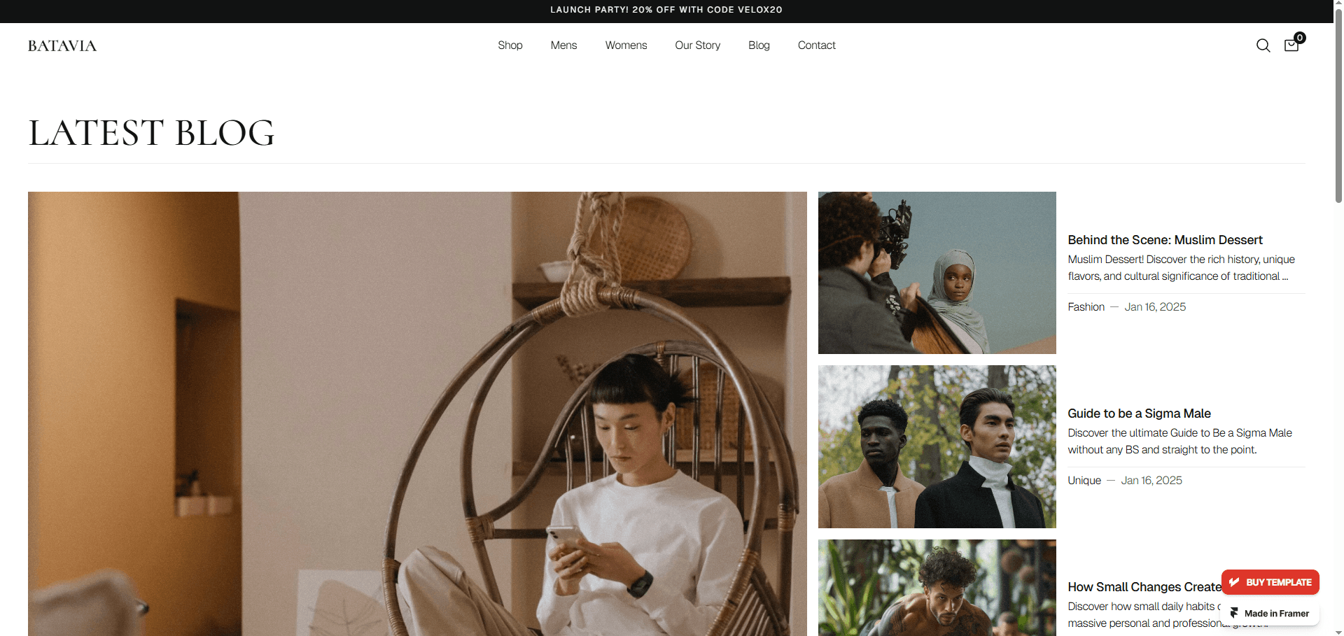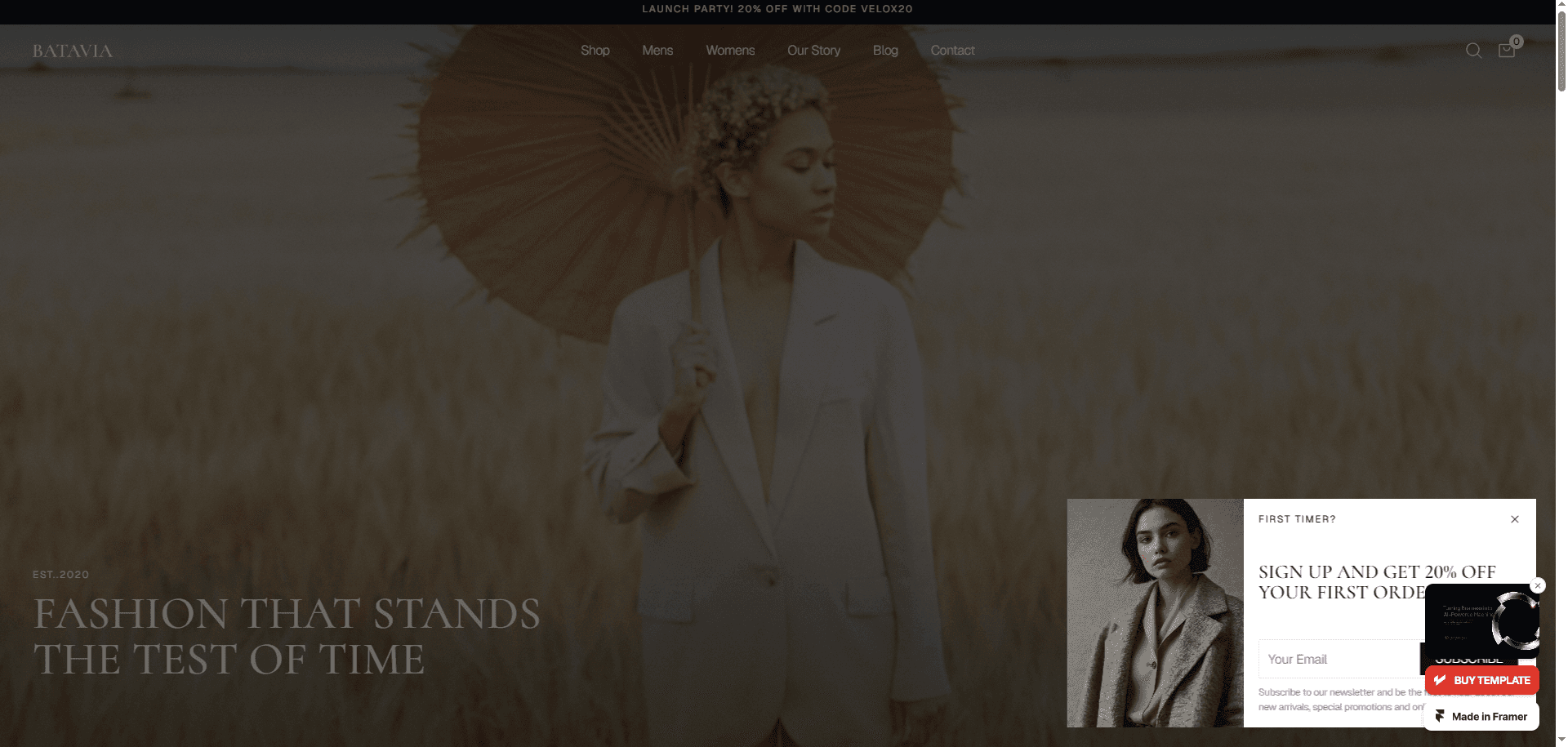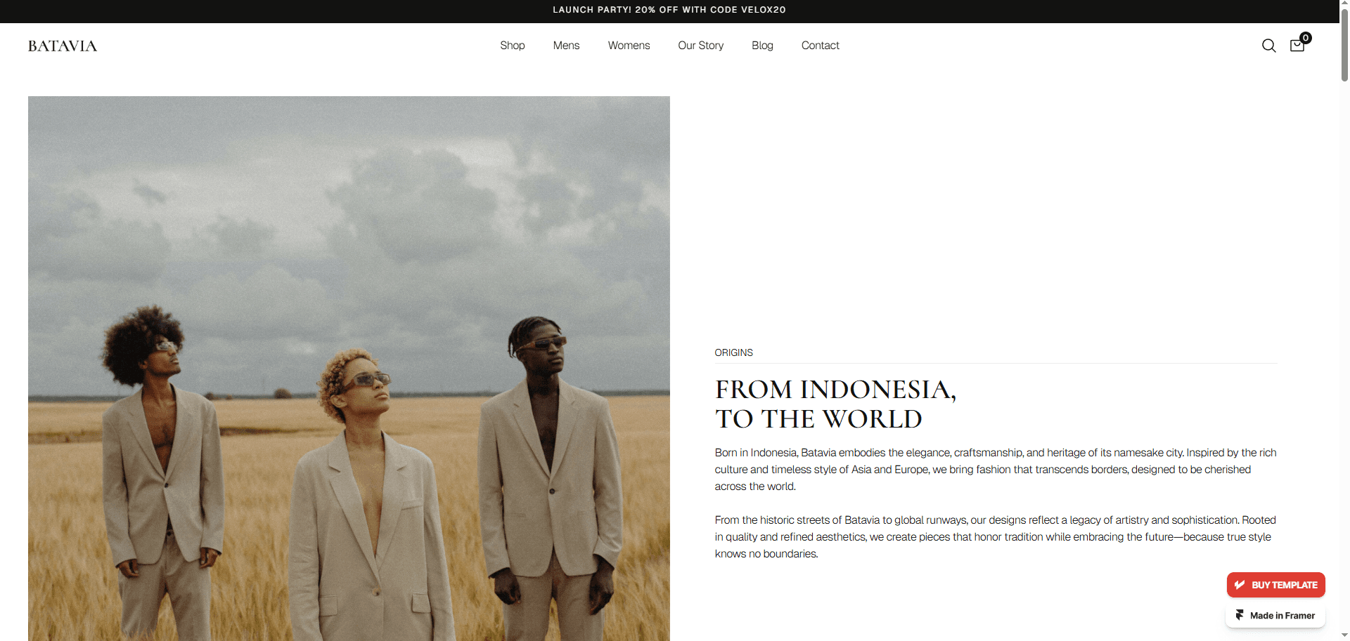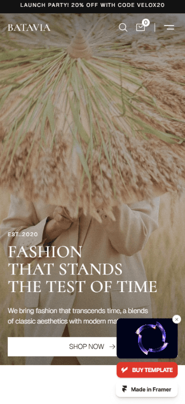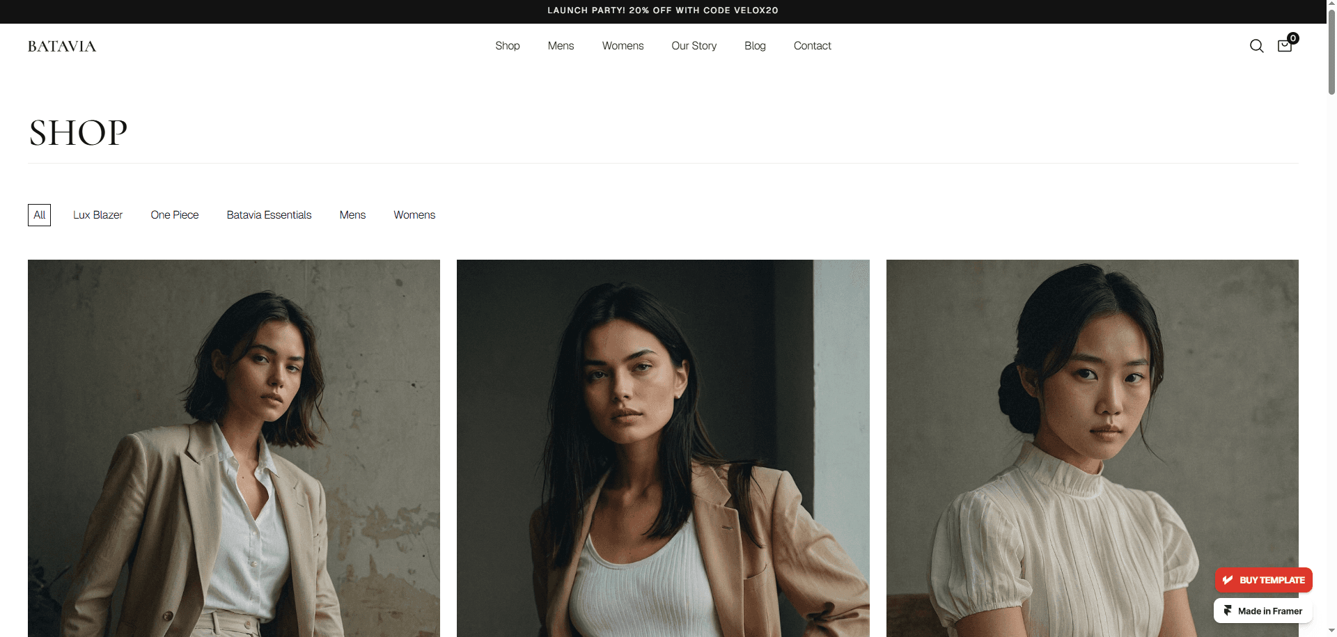 Batavia is a high-quality, minimalist Framer template designed for clothing brands and e-commerce businesses.