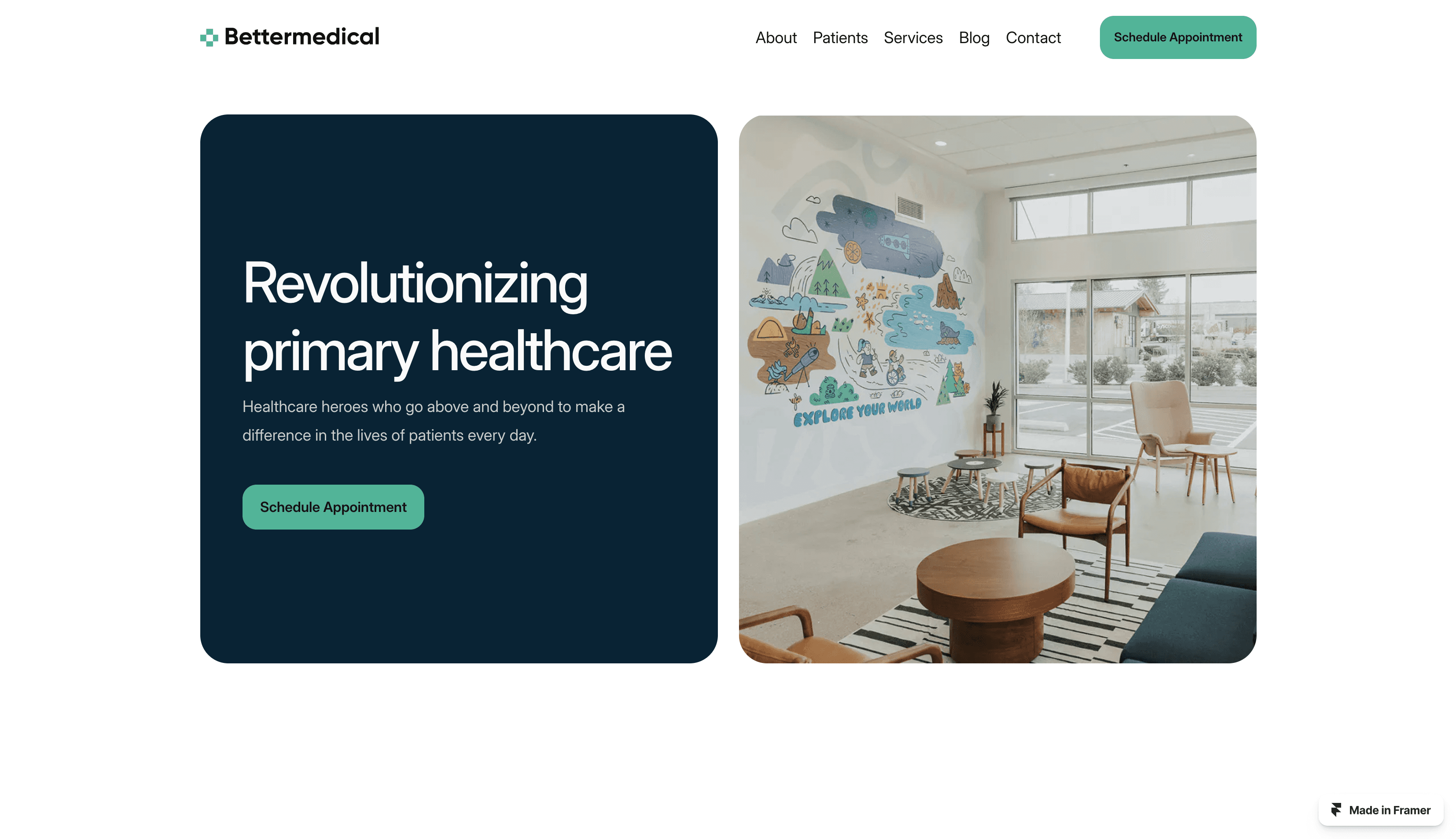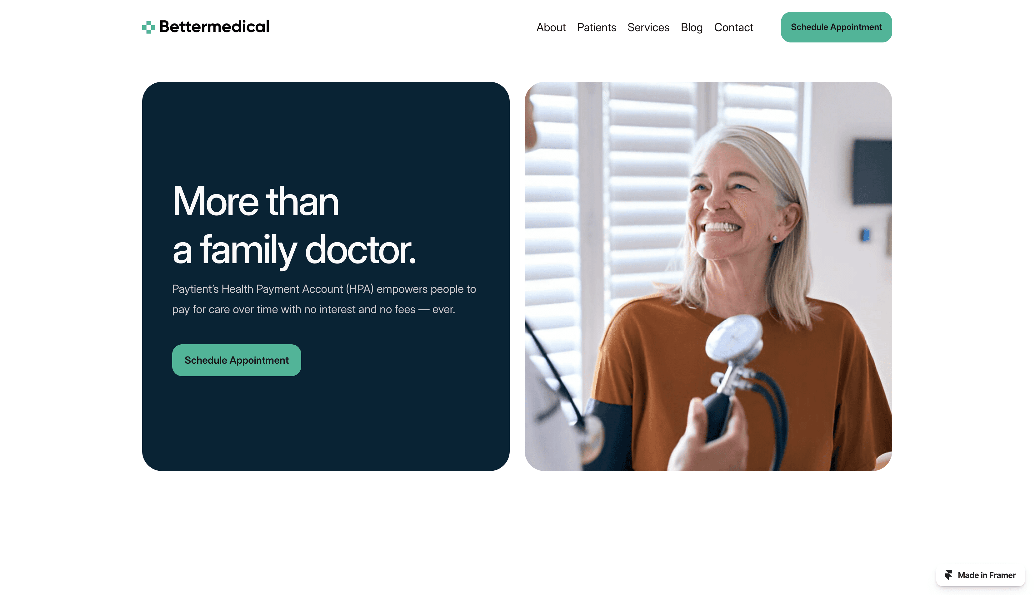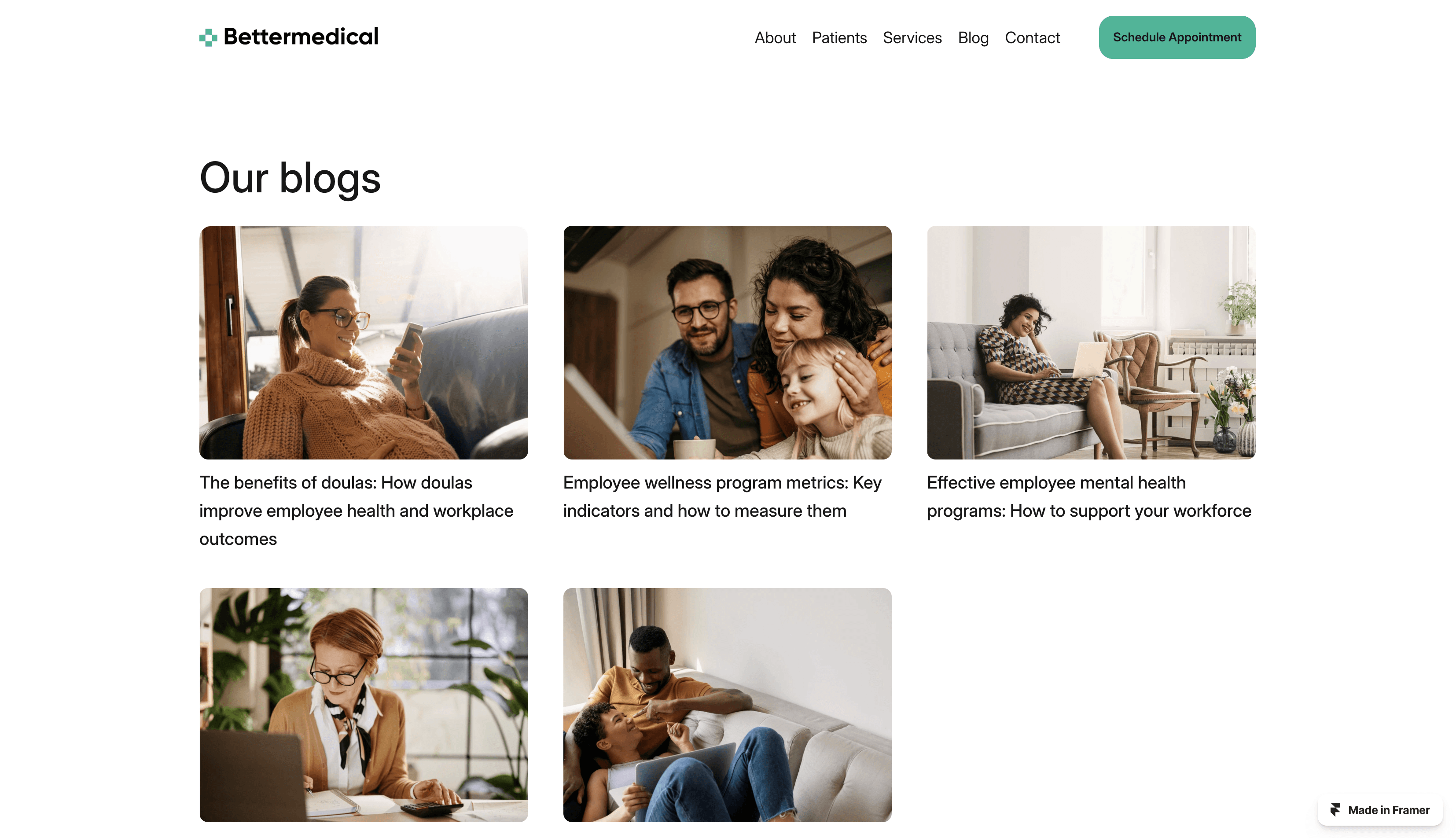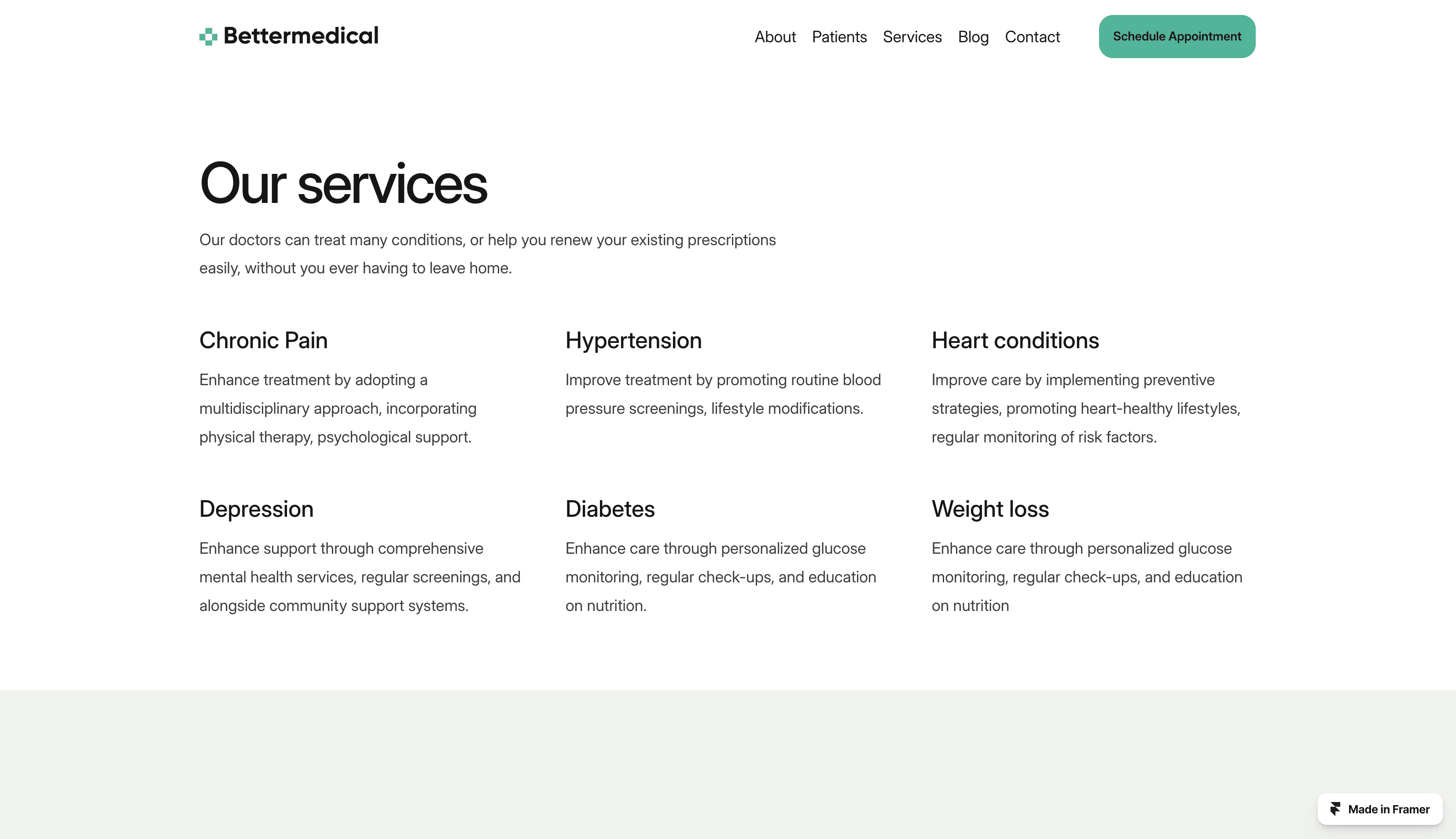 Your Trusted Healthcare Framer Template With BetterMedical, you can seamlessly craft stunning medical websites that not only meet but exceed industry standards, all while streamlining your creative workflow.