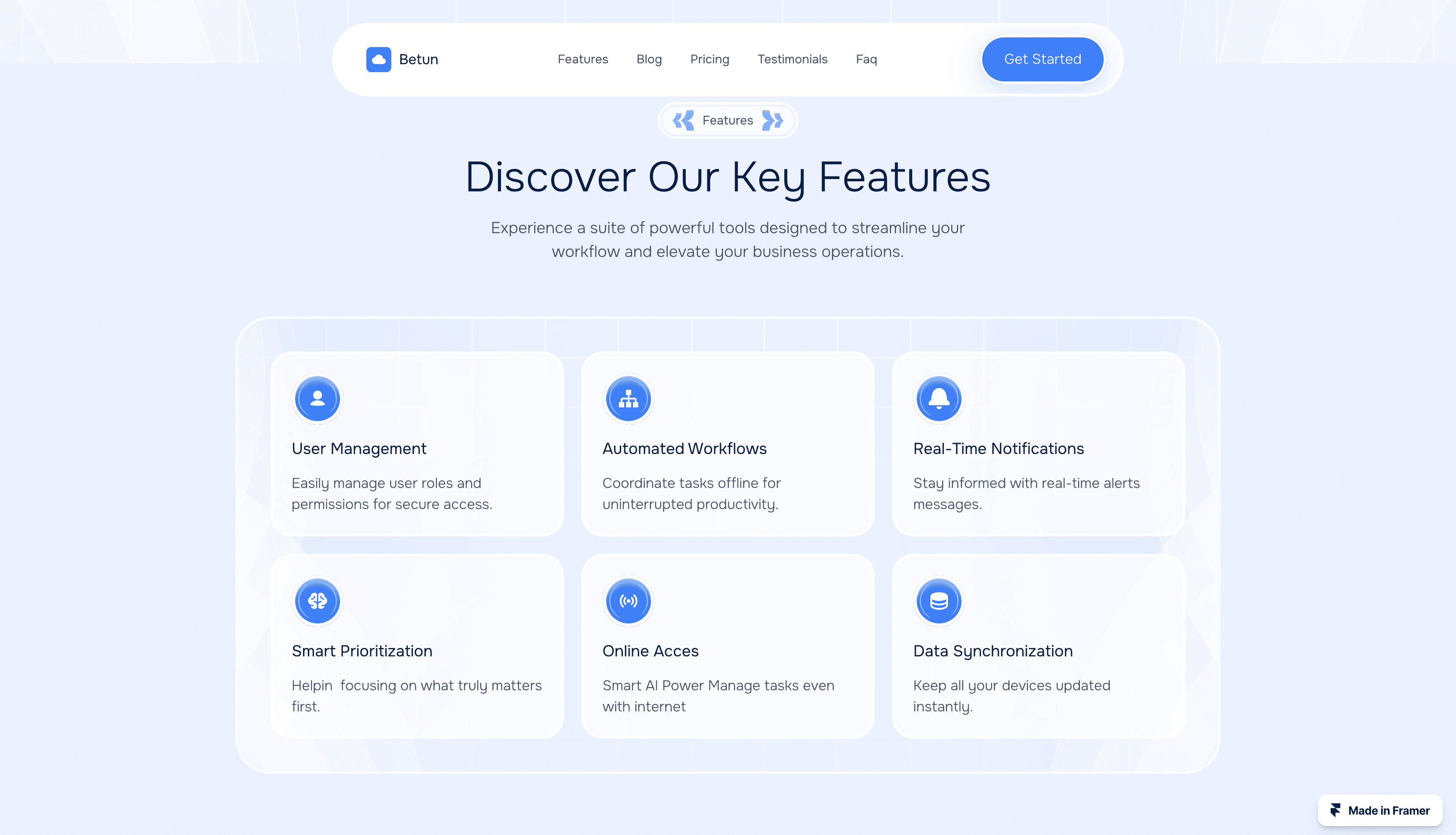 Betun is a sleek, modern, and lightweight SaaS template designed for innovative startups. It offers a clean, cool aesthetic with user-friendly layouts