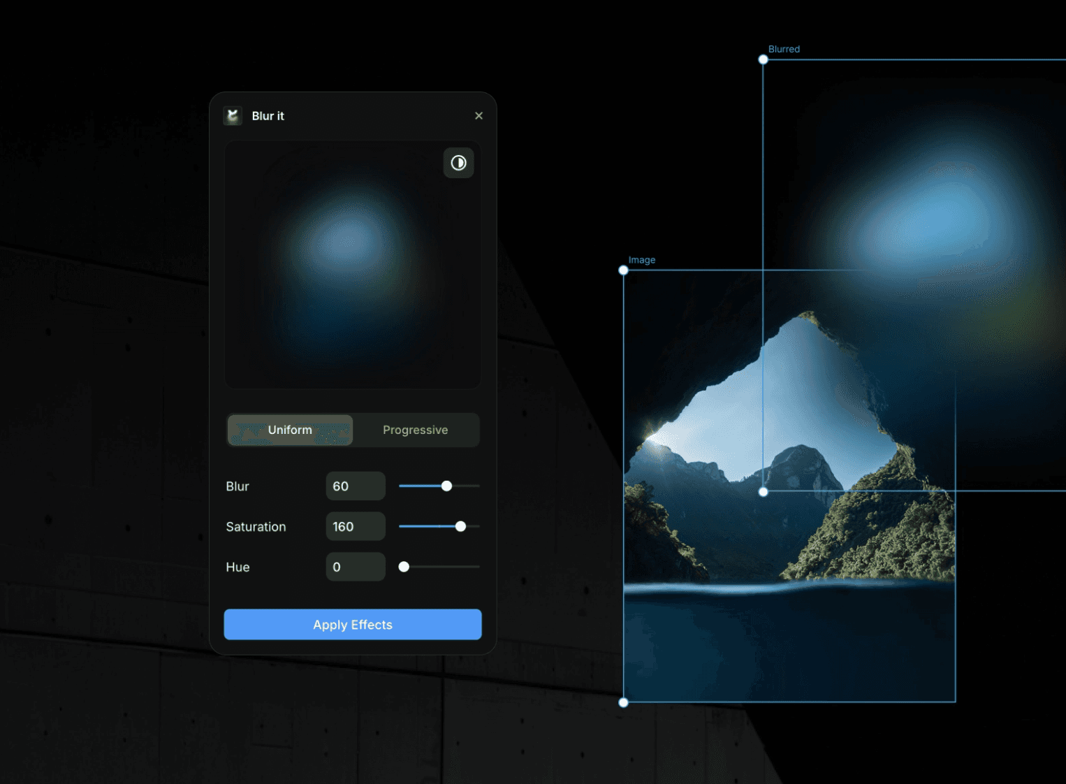 Apply high-quality image blur without hurting your site performance, using Gaussian or progressive blurs.