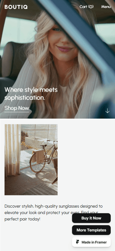 Premium eCommerce Framer template powered by Frameship, the ultimate Shopify integration plugin.