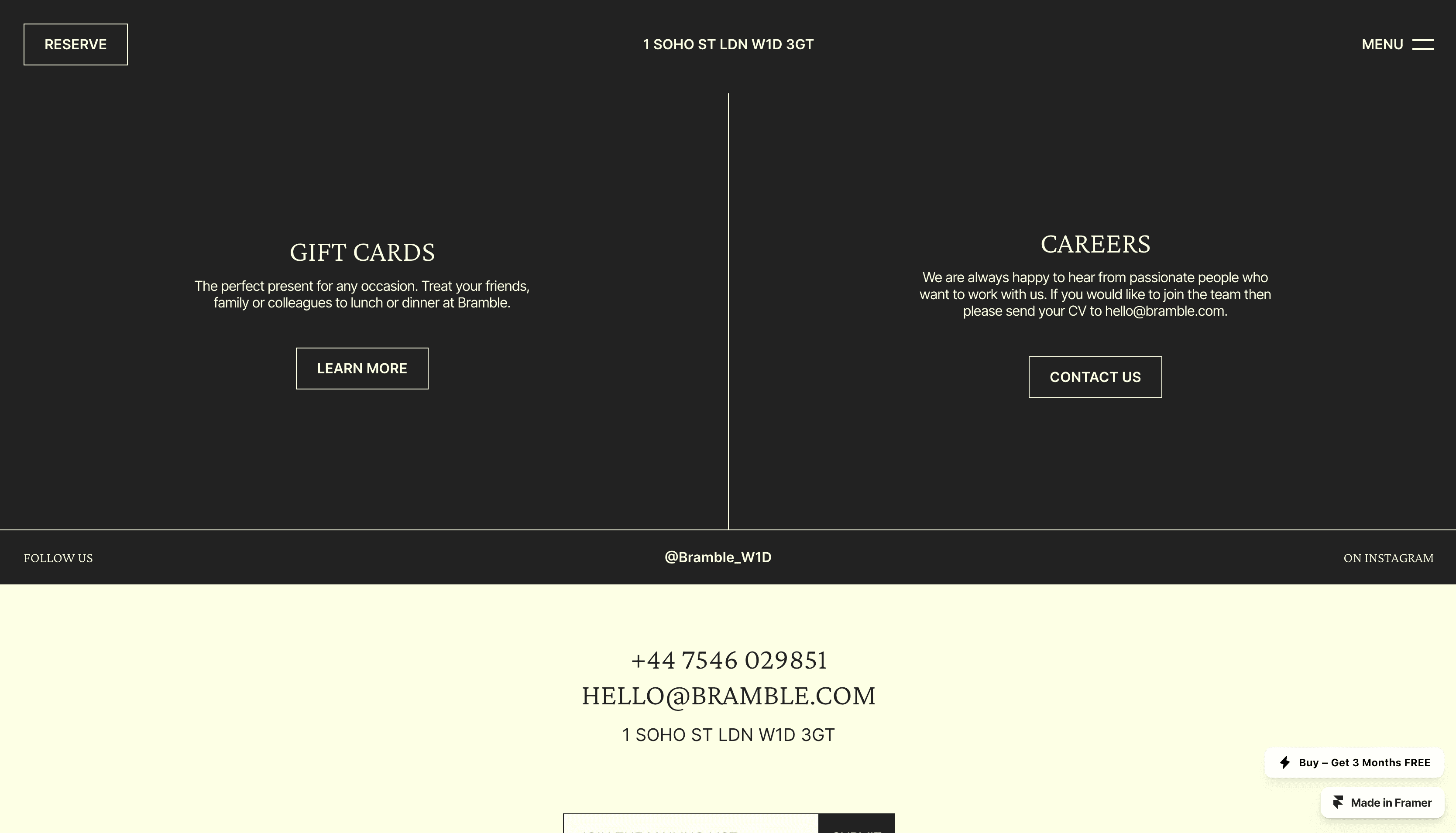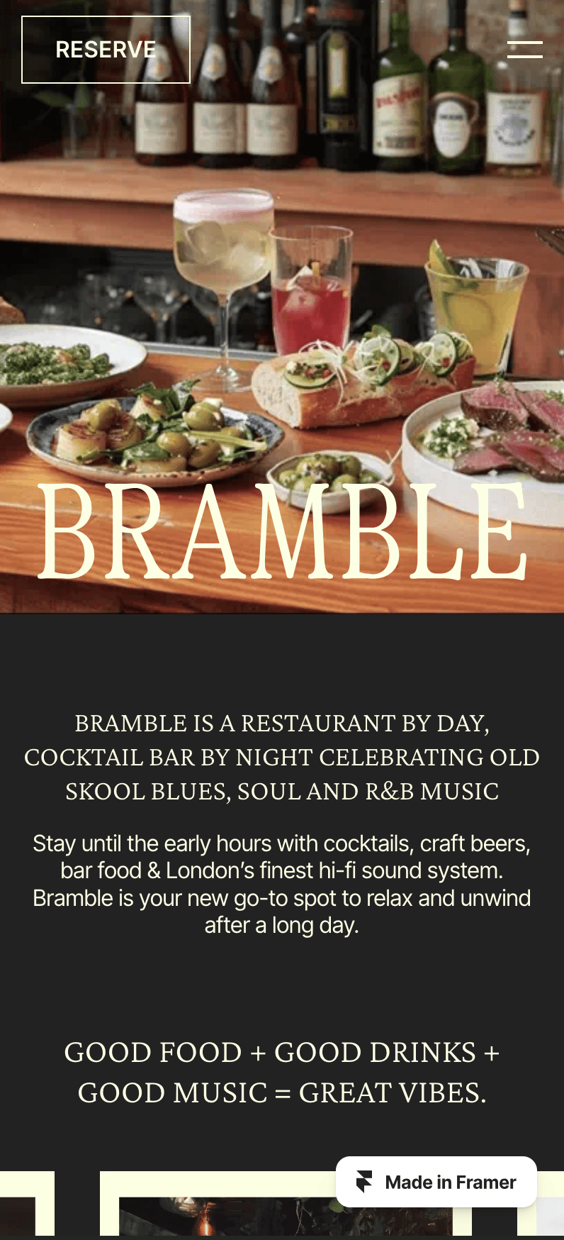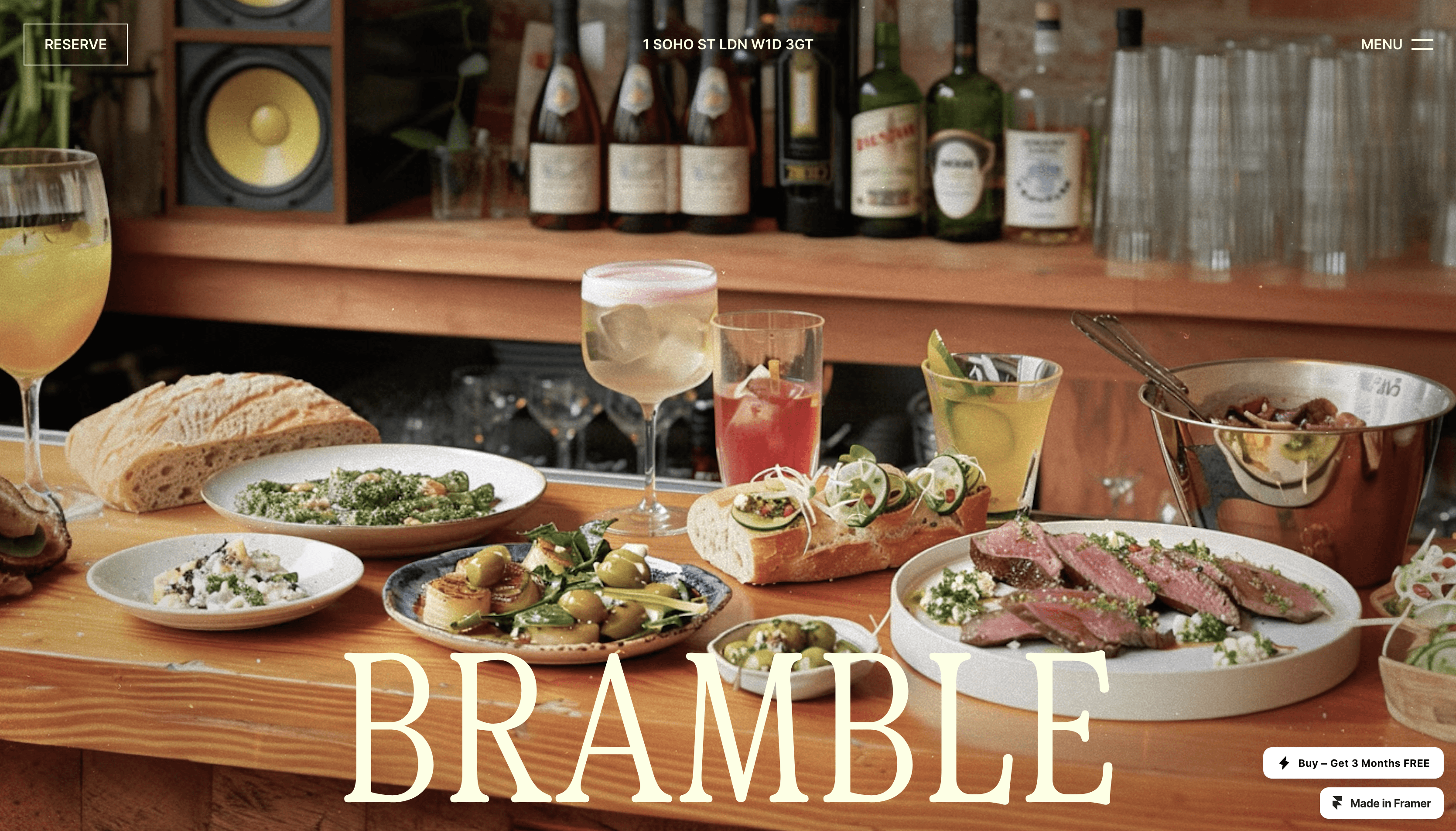 Meet BRAMBLE - a stylishly simple restaurant and bar website template with a charming retro twist.