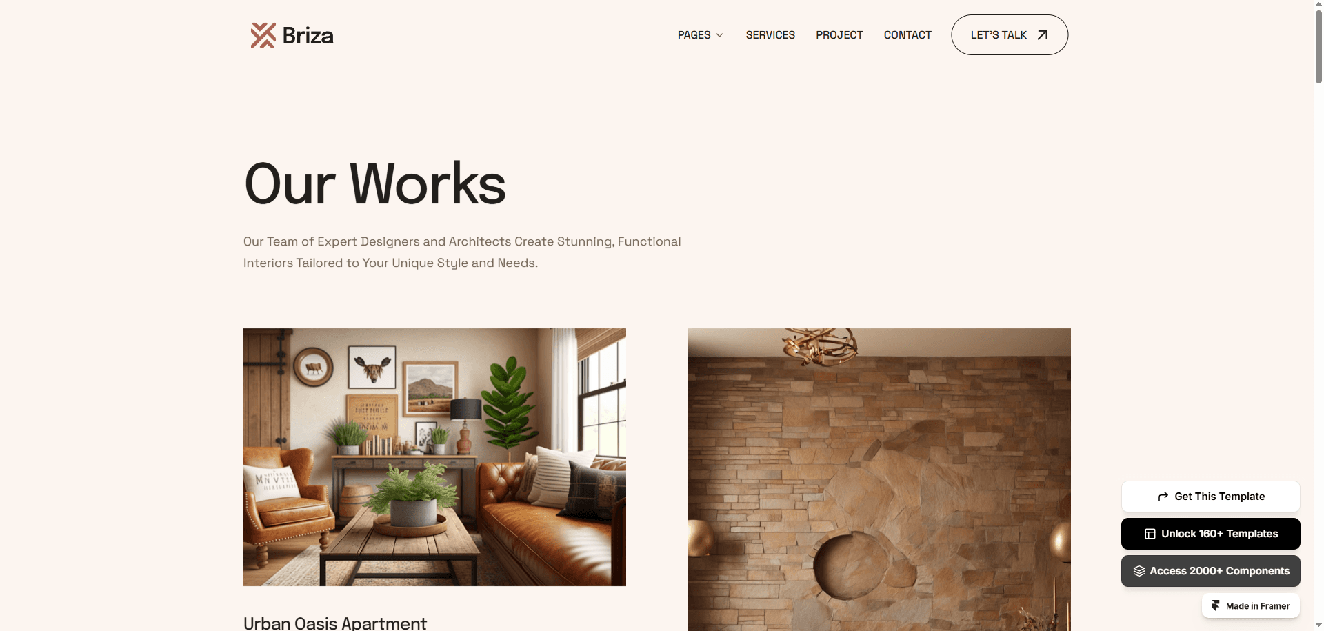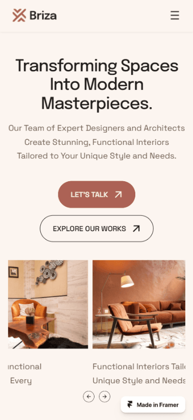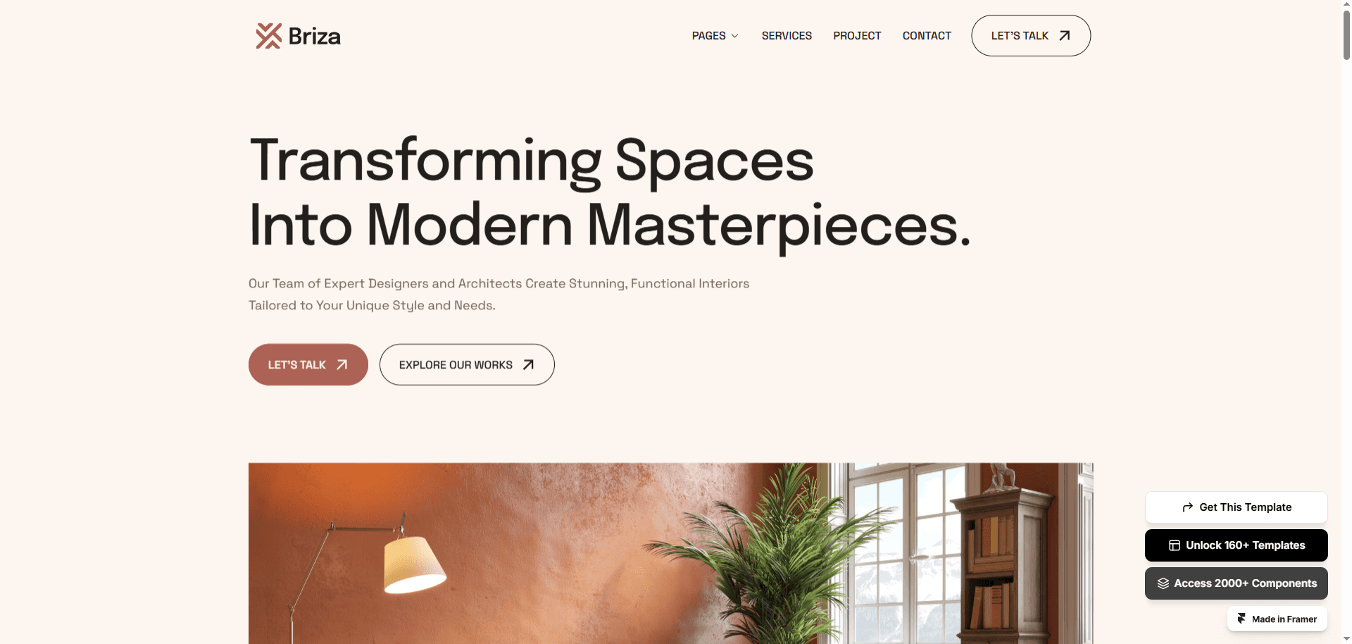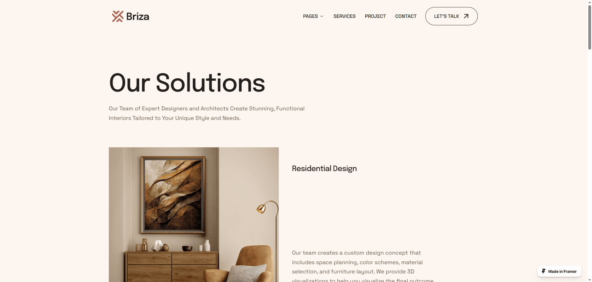 Briza is a professionally designed Framer template specifically created for businesses in the interior design and architecture, renovation, and building industries.