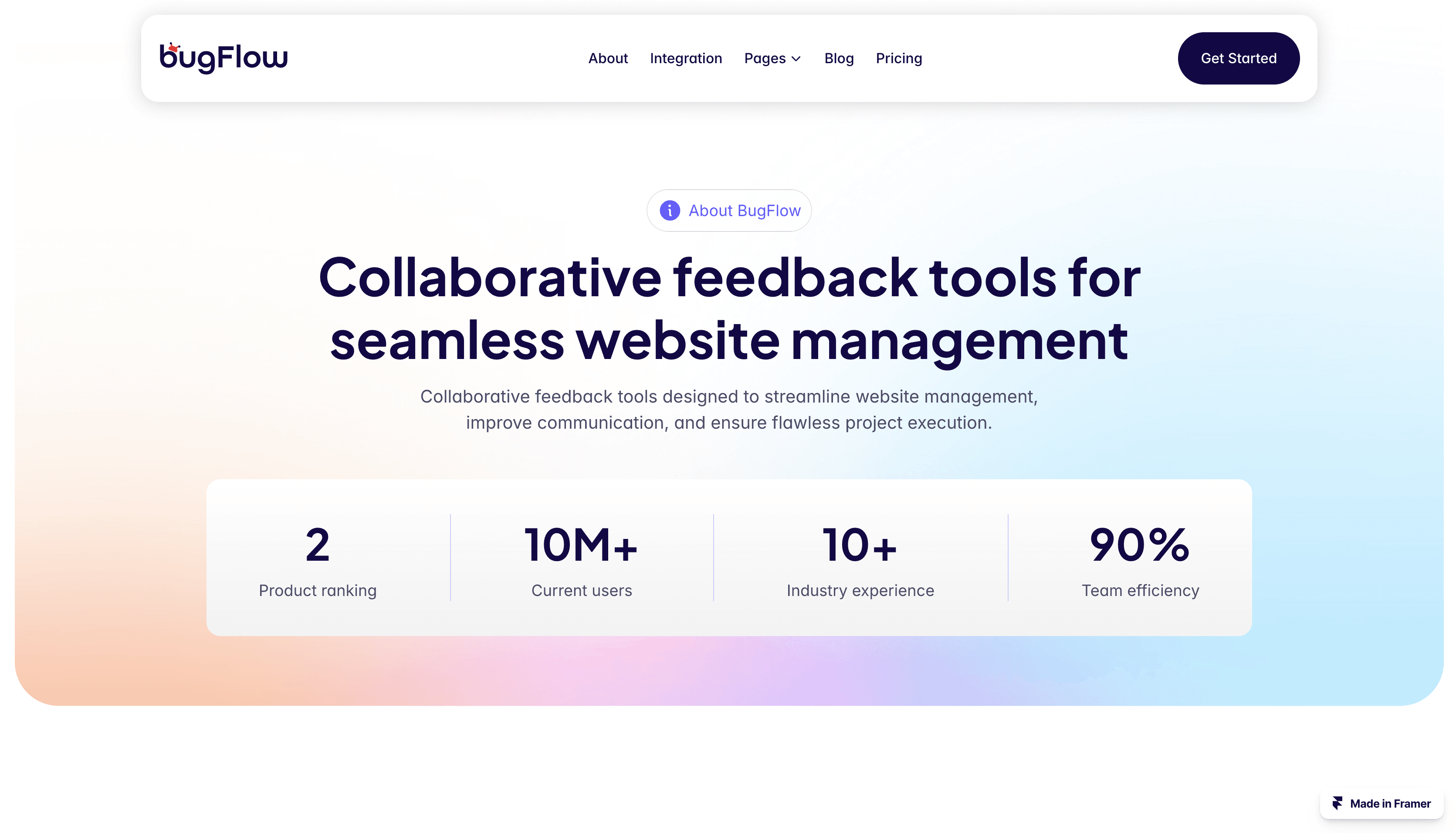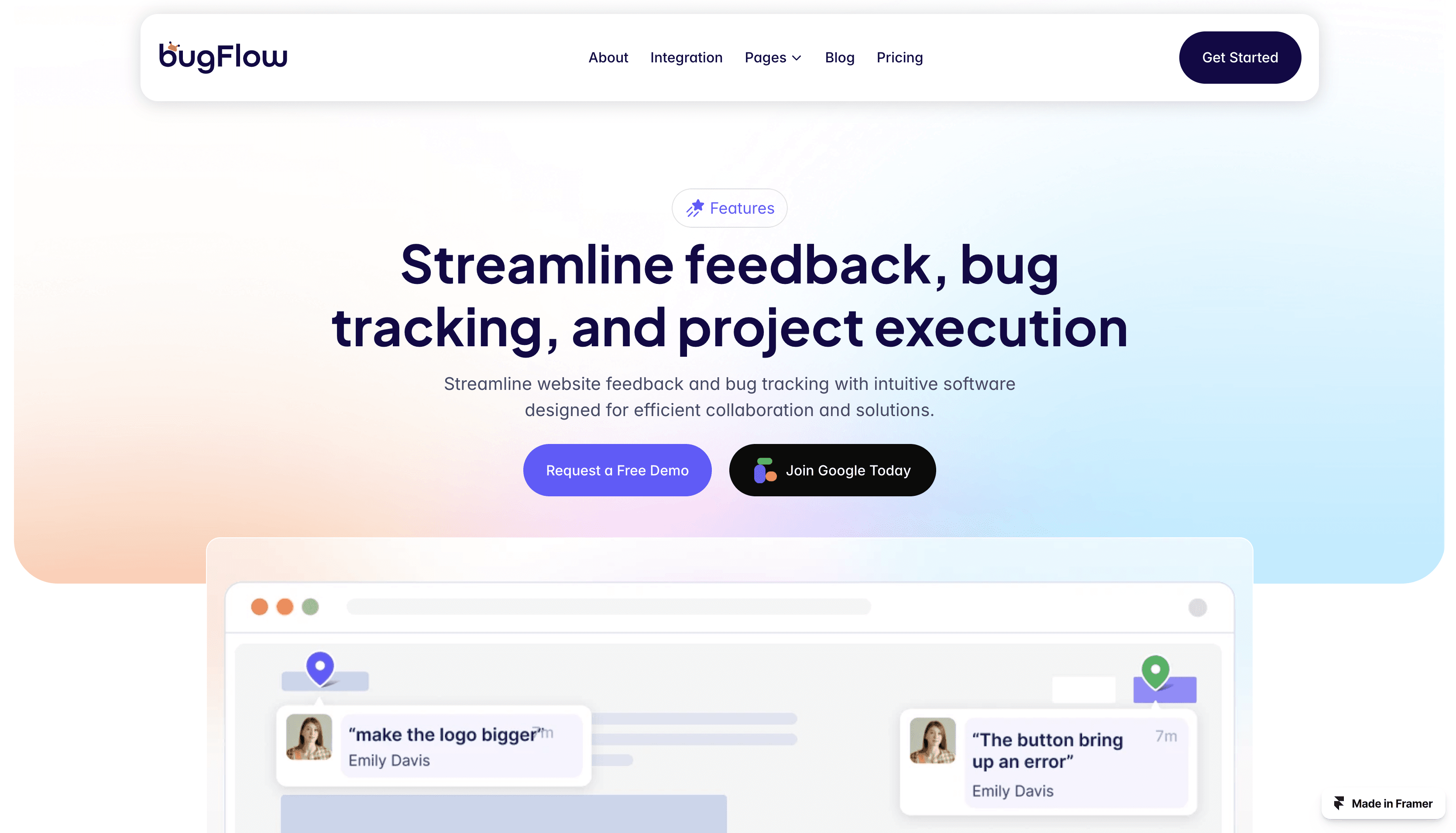 BugFlow is a clean and modern Framer template built for SaaS products that demand clarity, performance, and scale.