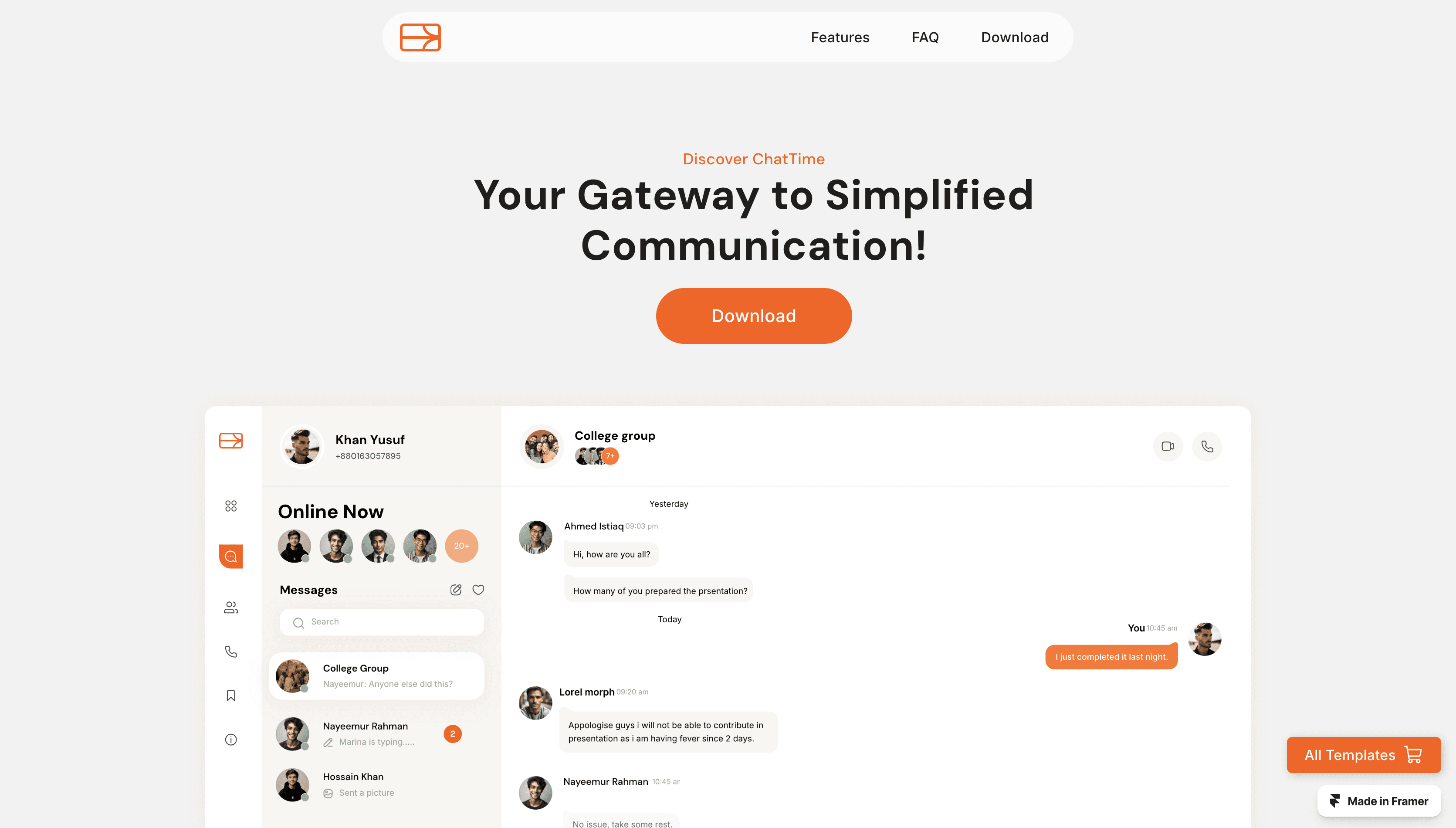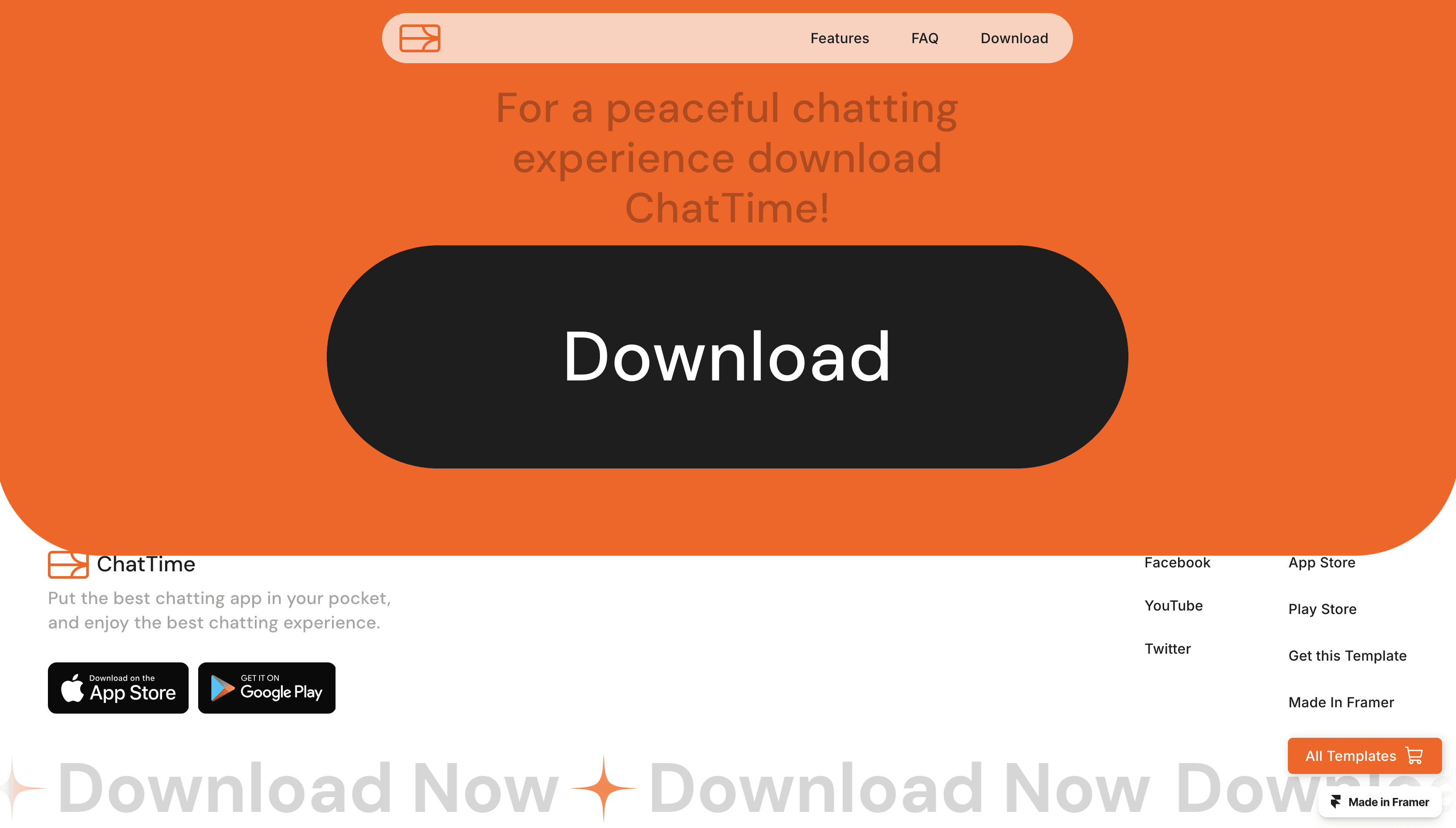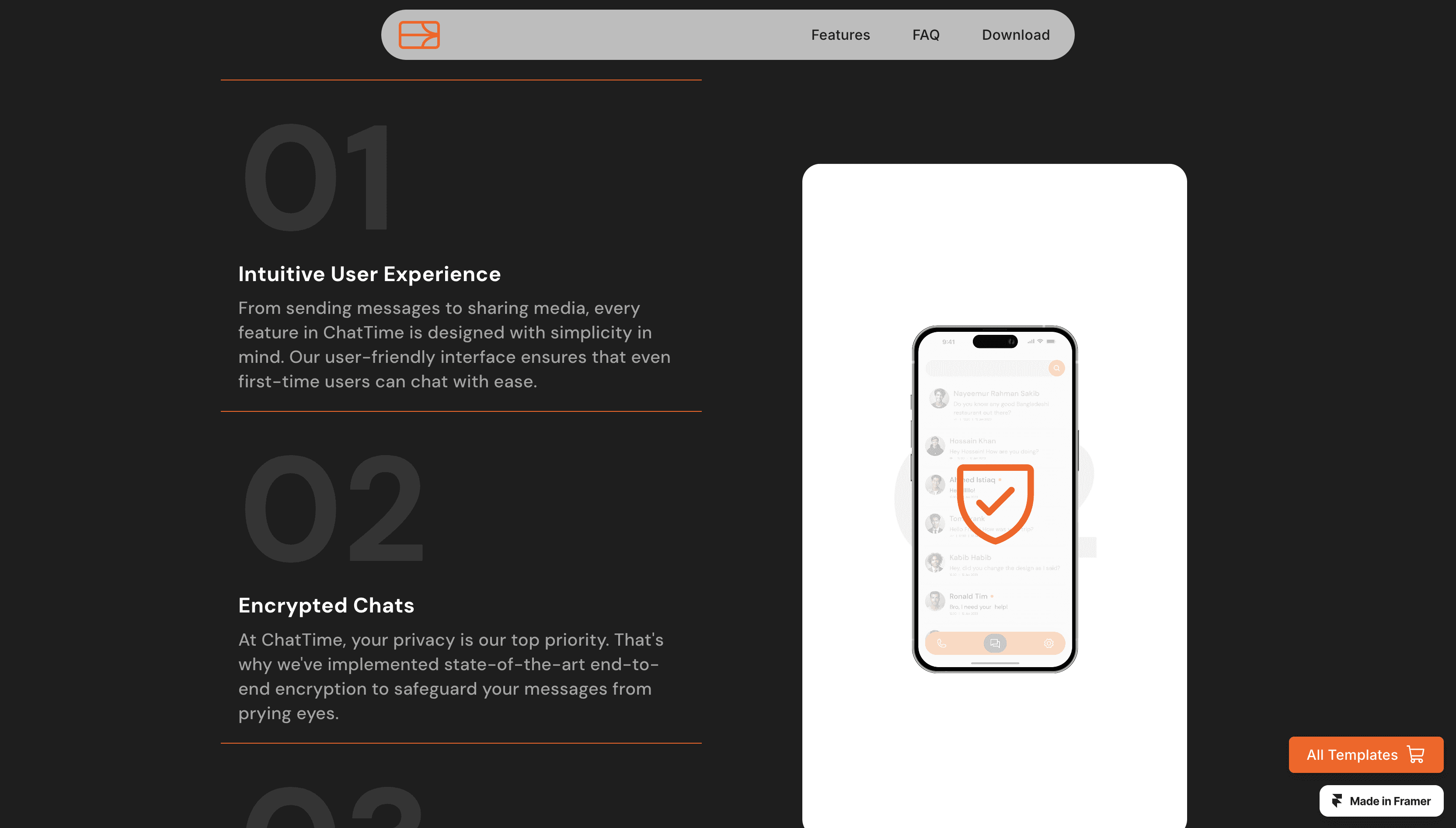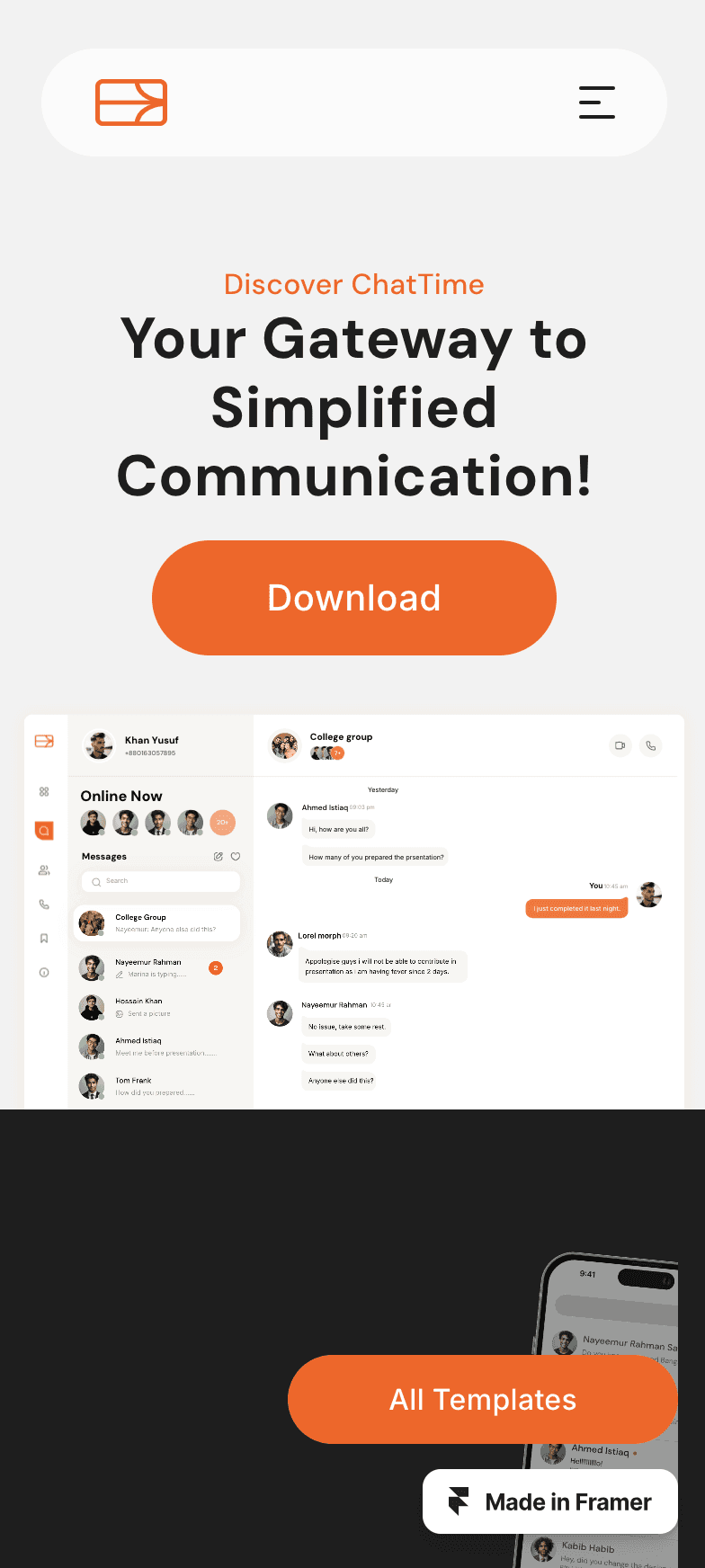 ChatTime is a mobile app Showcasing creative one-page website template.