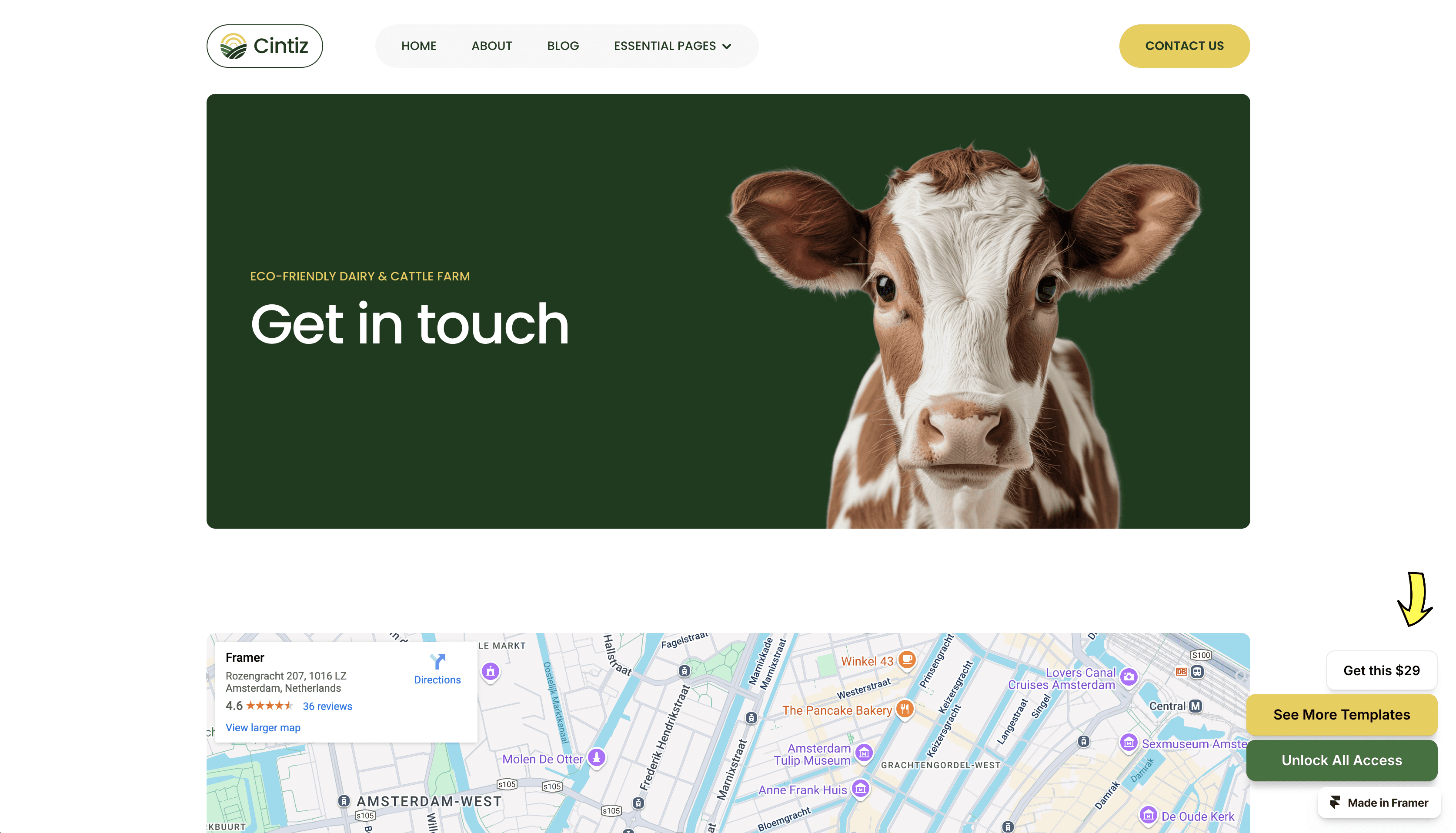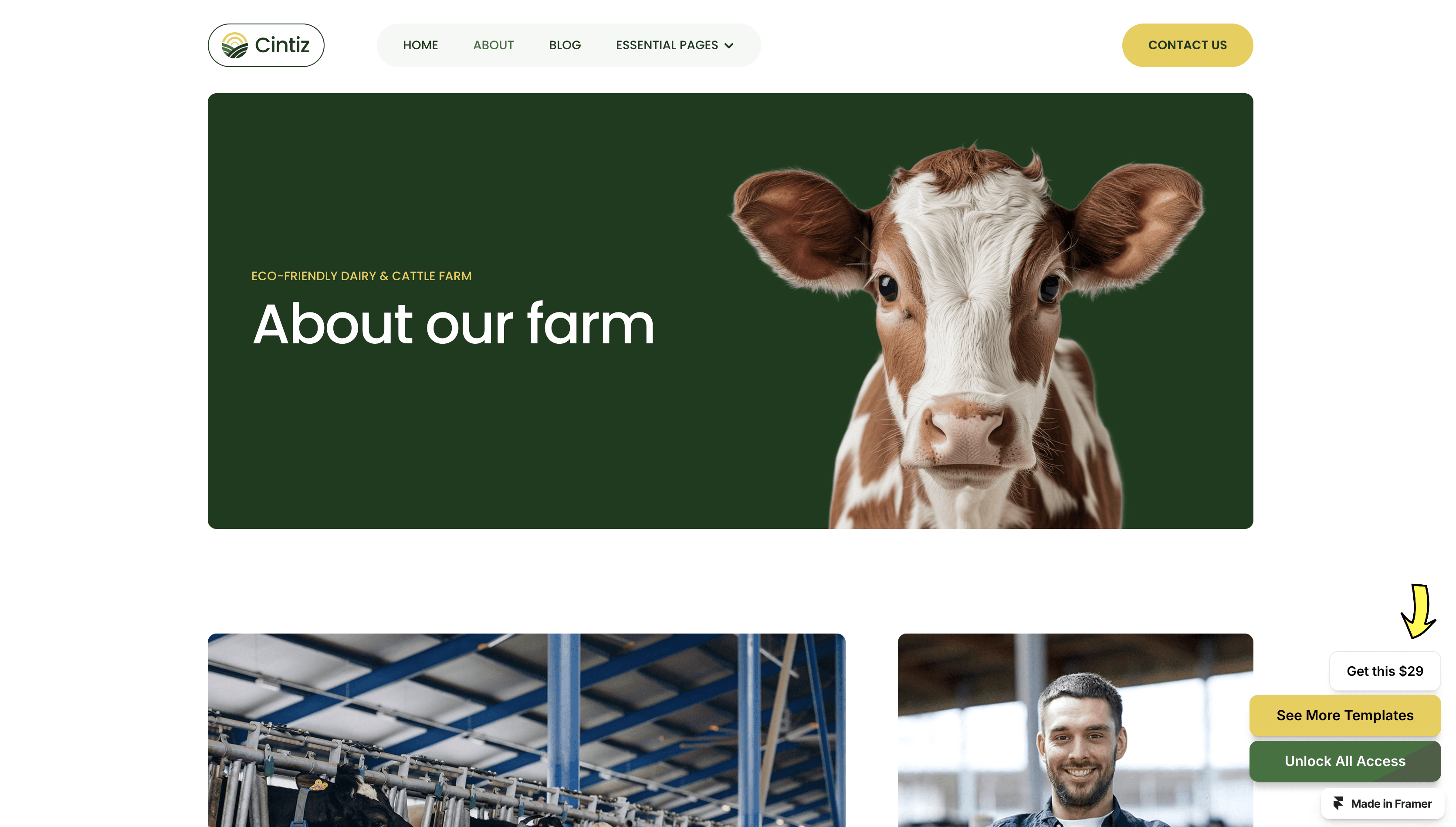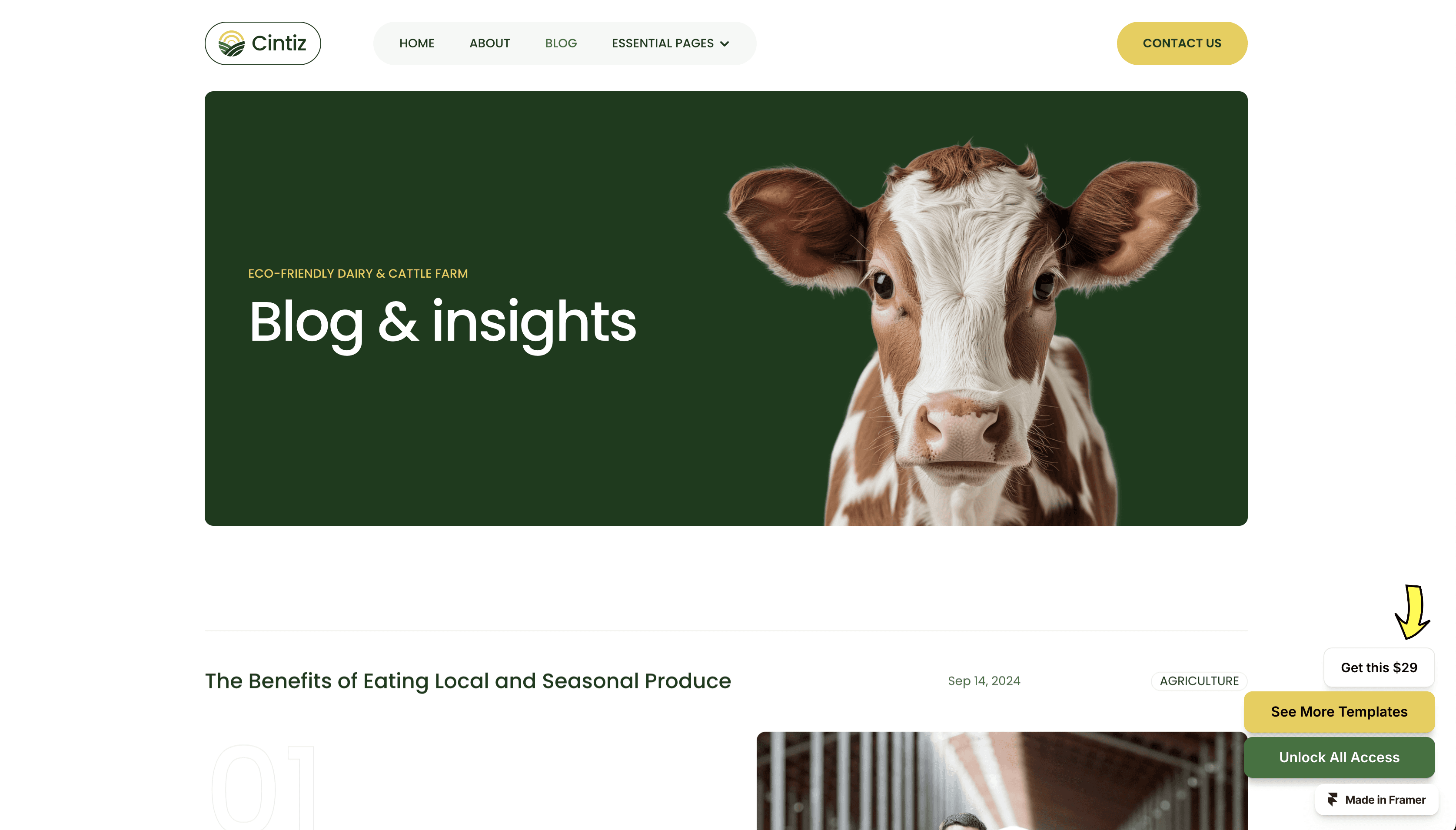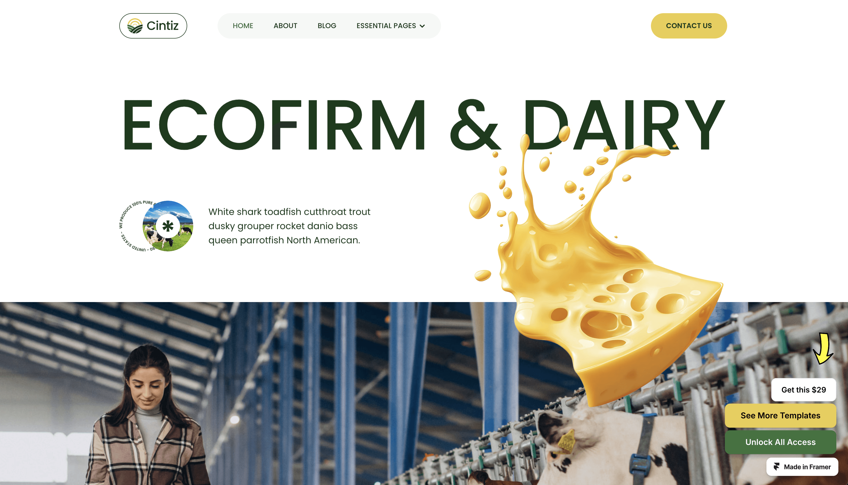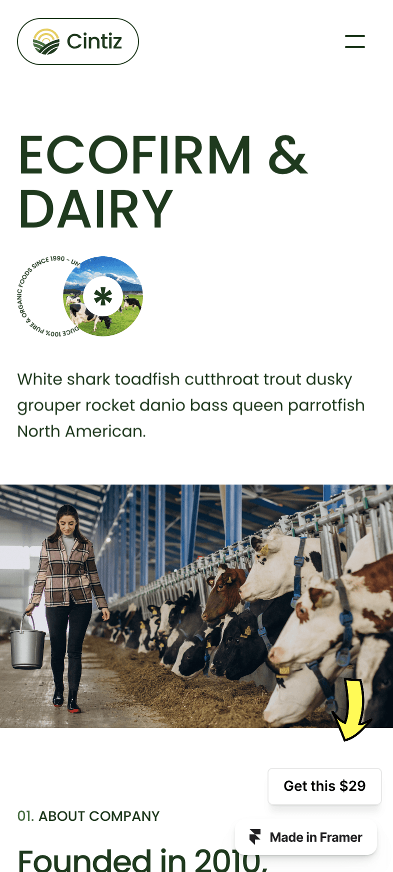 Cintiz is a beautifully crafted Framer template designed for farms, dairy businesses, and agricultural enterprises.