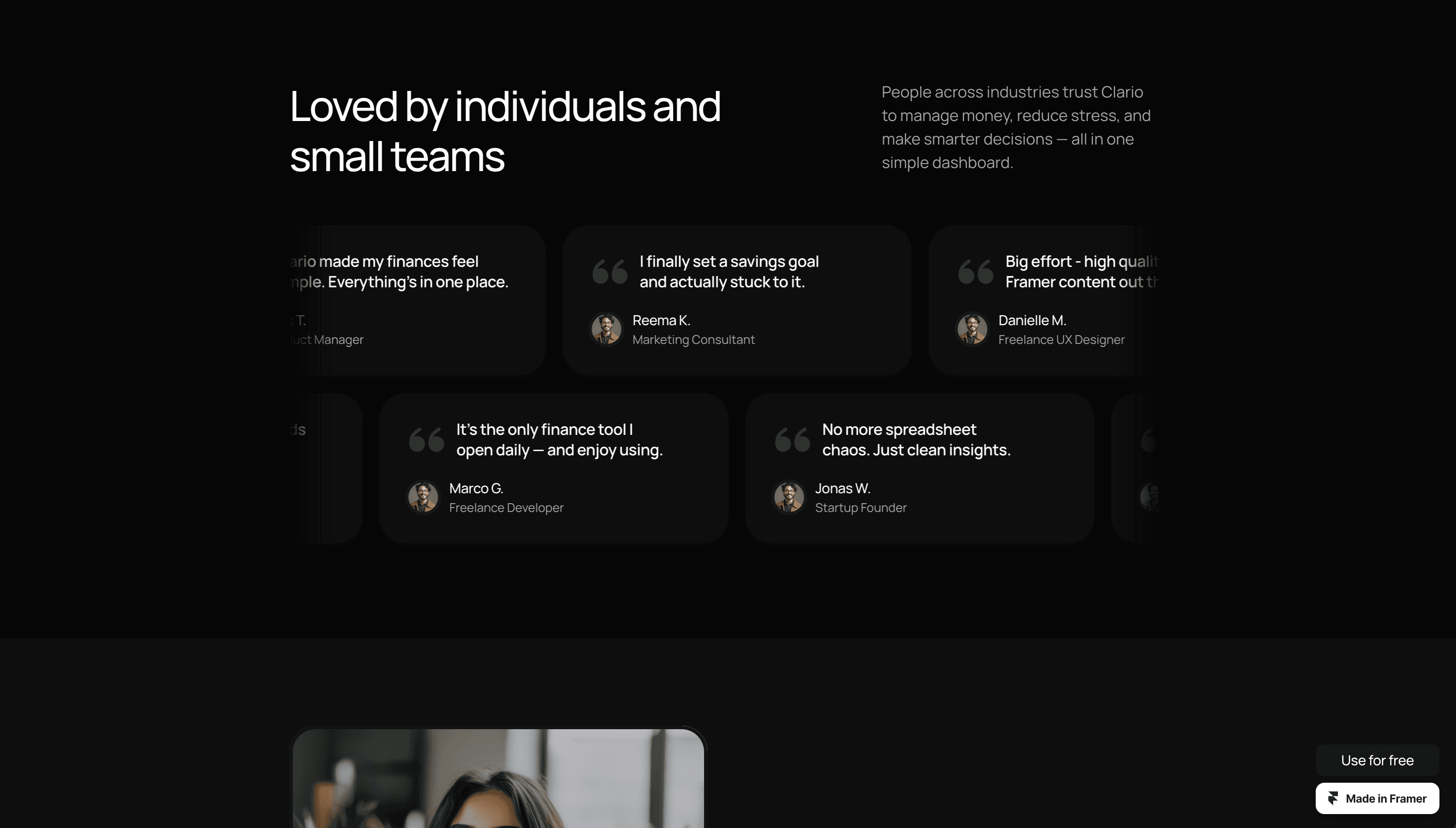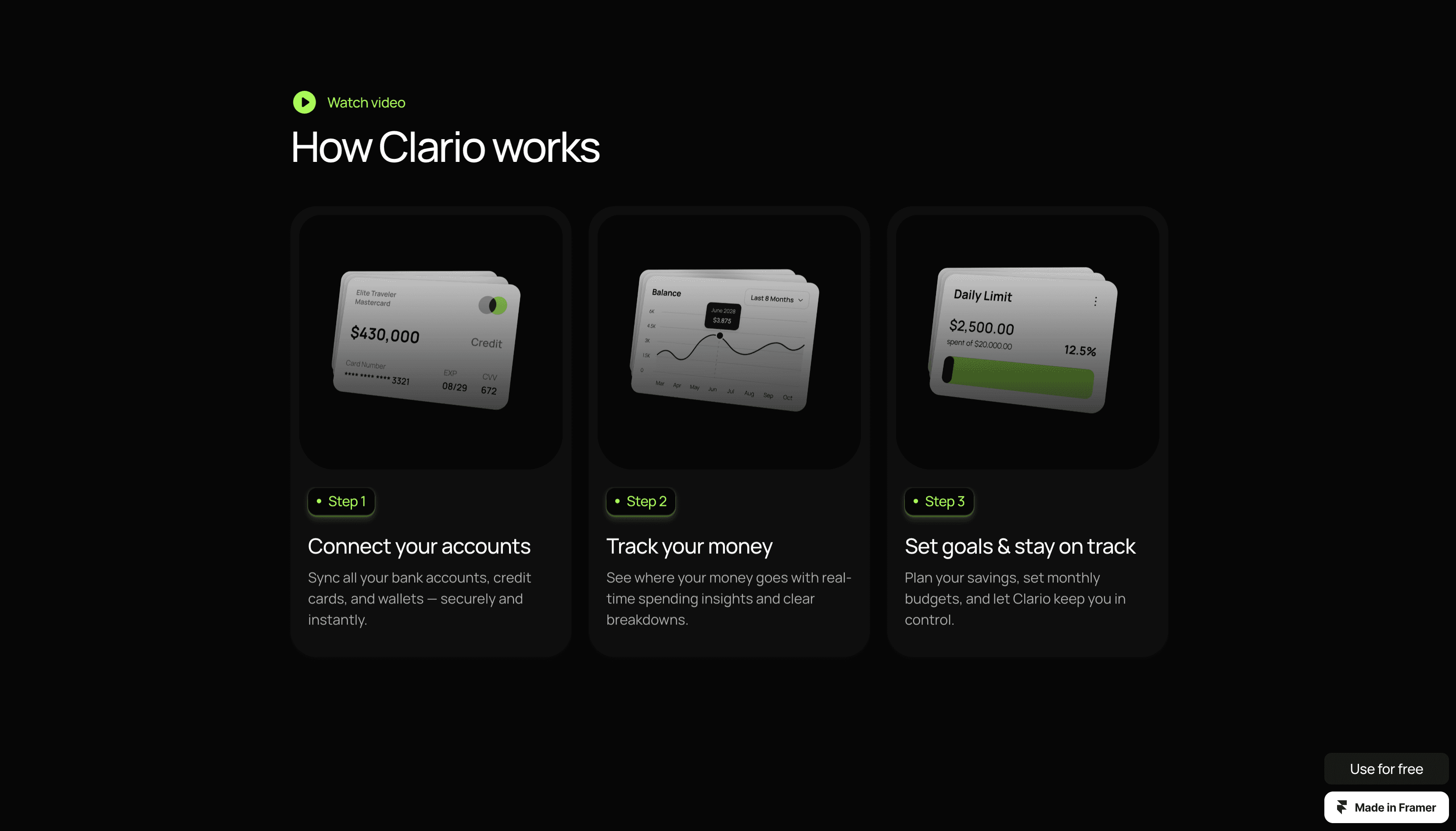 Clario is a sleek and modern Framer template designed for SaaS products, fintech apps, and dashboard-based platforms looking to showcase their services with clarity and impact.