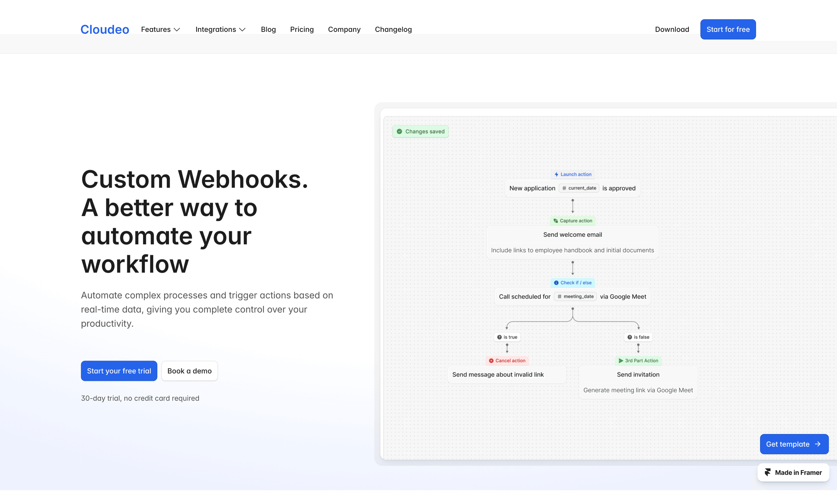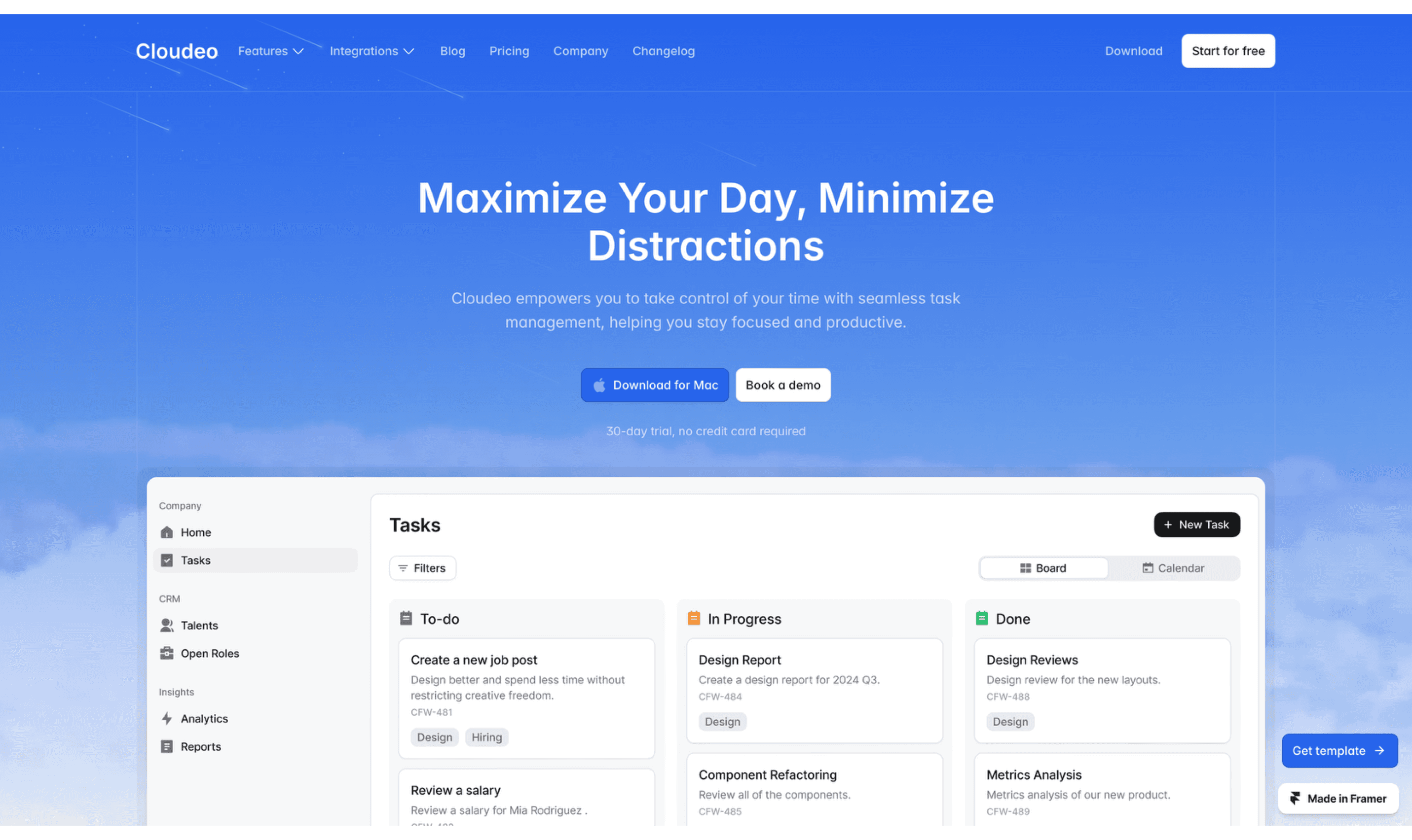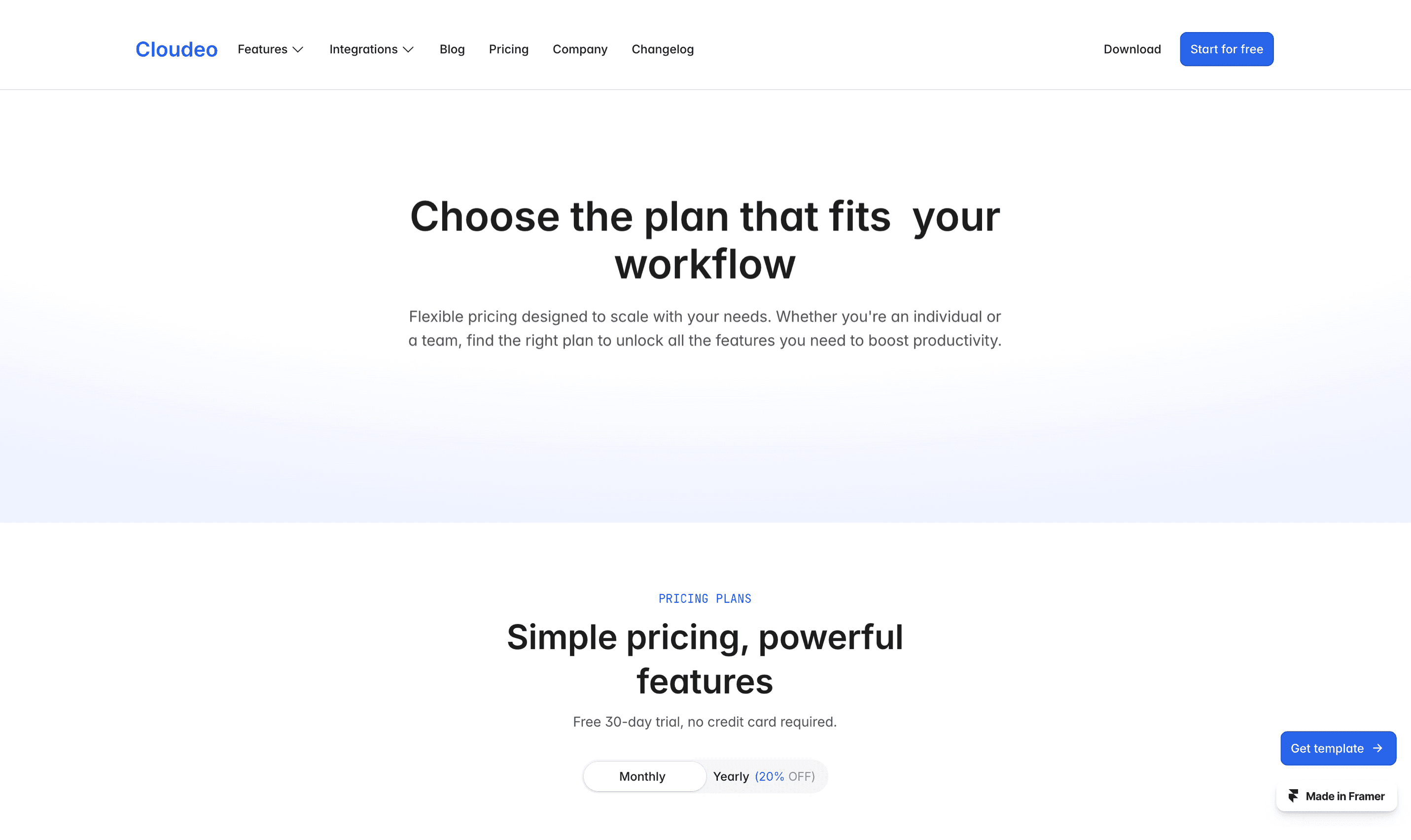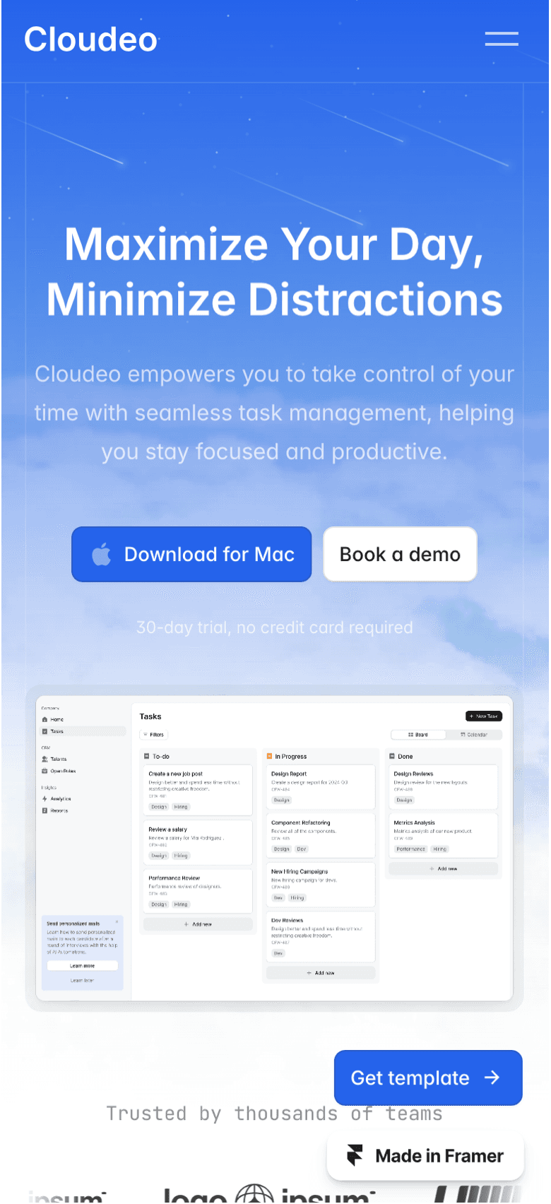 Cloudeo is a high-performance Framer template designed for AI-driven startups, SaaS platforms, and innovative tech businesses.