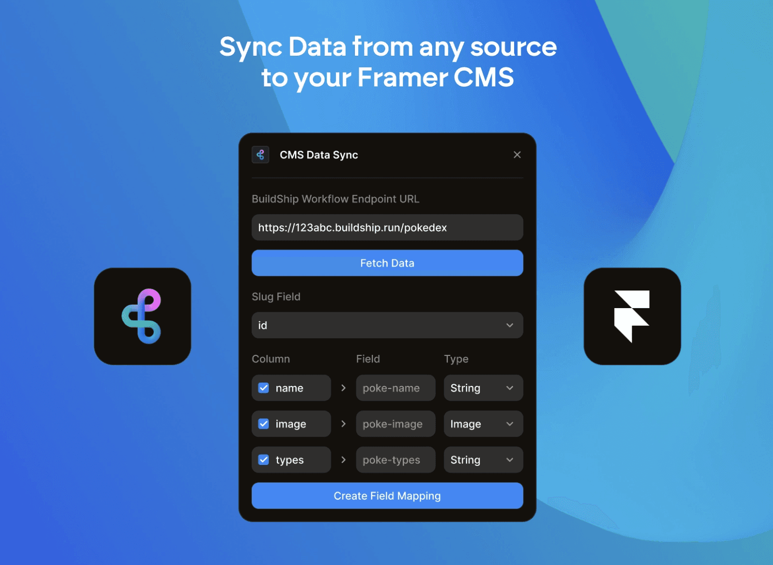 Sync data from any source like Google Sheets, Airtable, Firebase, Supabase, Postgres etc to Framer CMS.