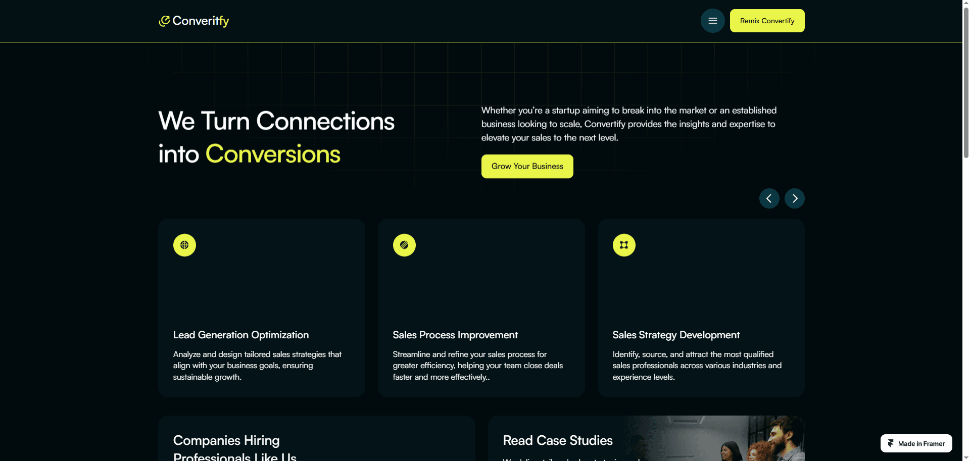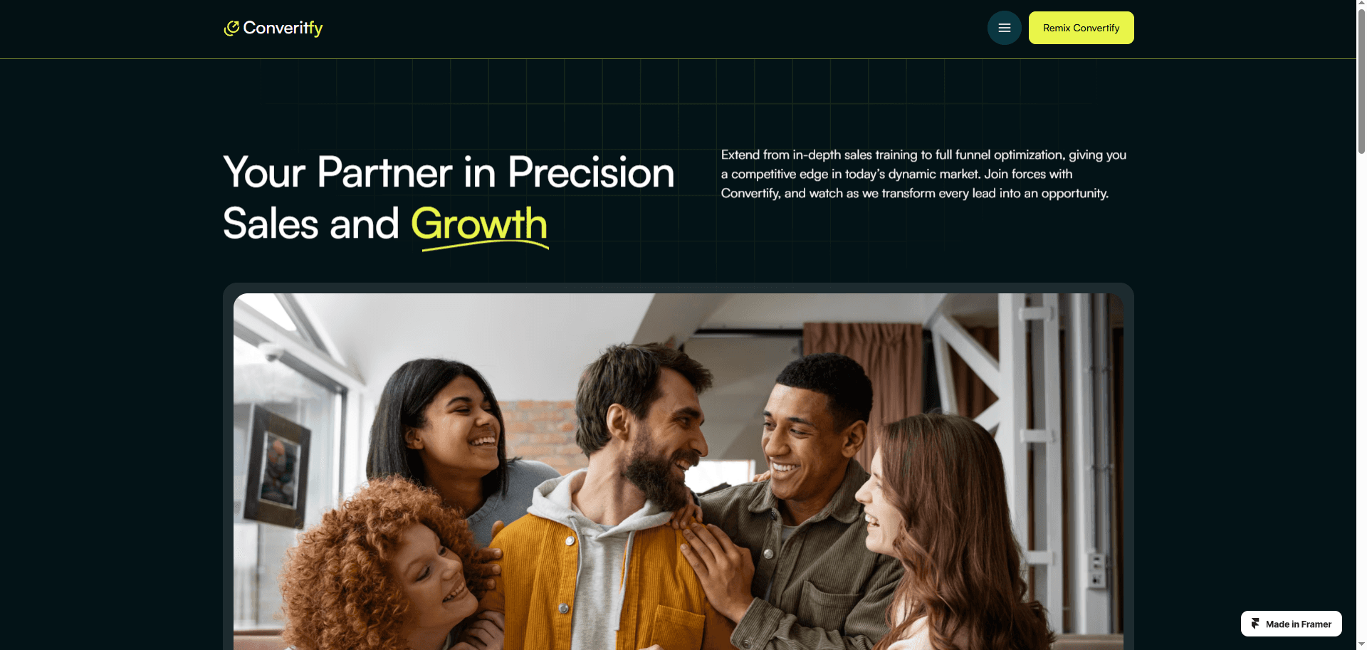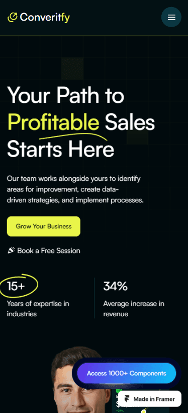 Convertify is a premium Framer template crafted for sales consulting agencies that aim to boost client engagement and elevate their digital footprint.