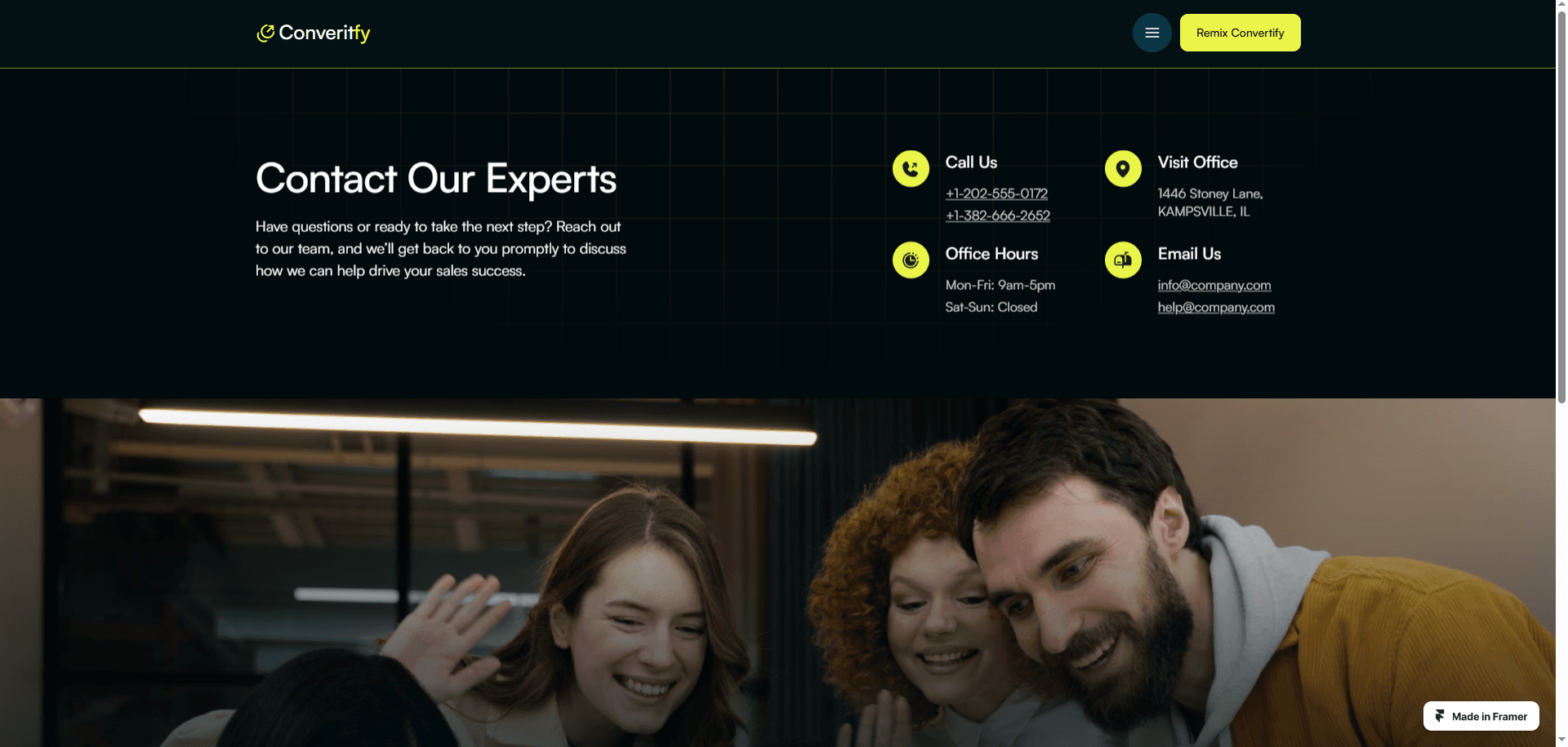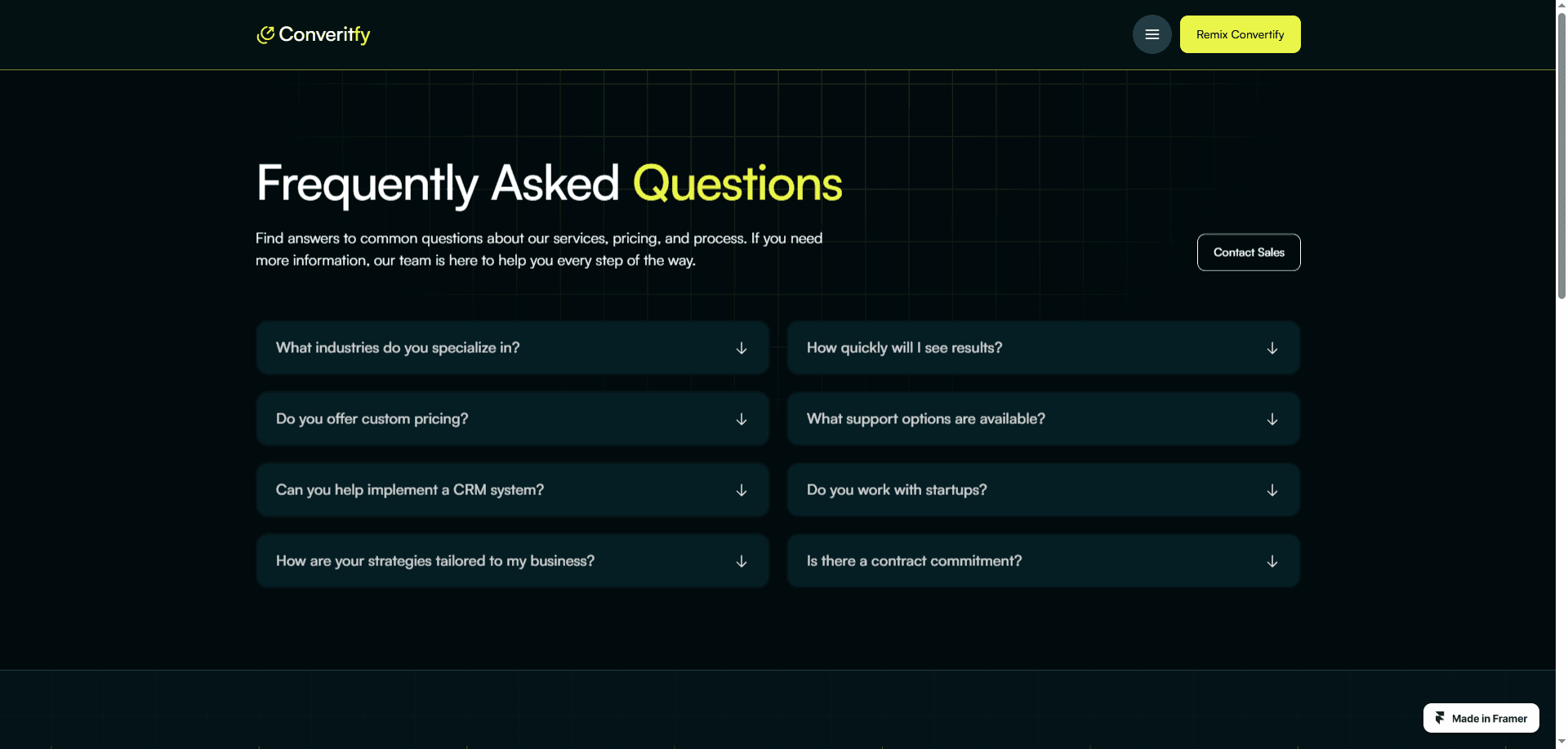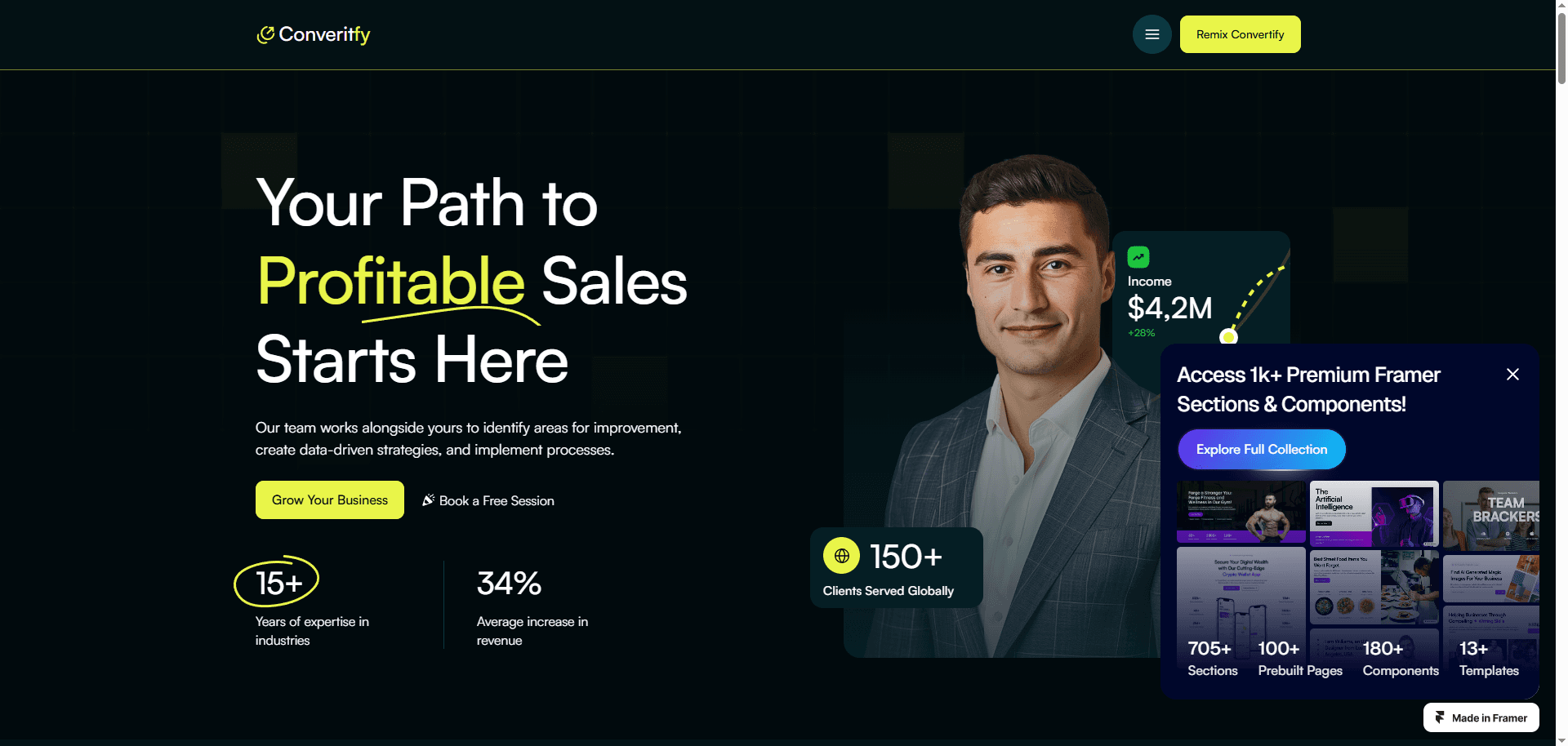 Convertify is a premium Framer template crafted for sales consulting agencies that aim to boost client engagement and elevate their digital footprint.
