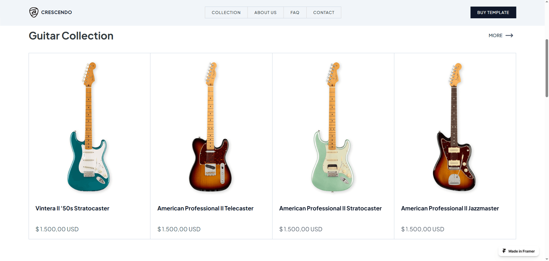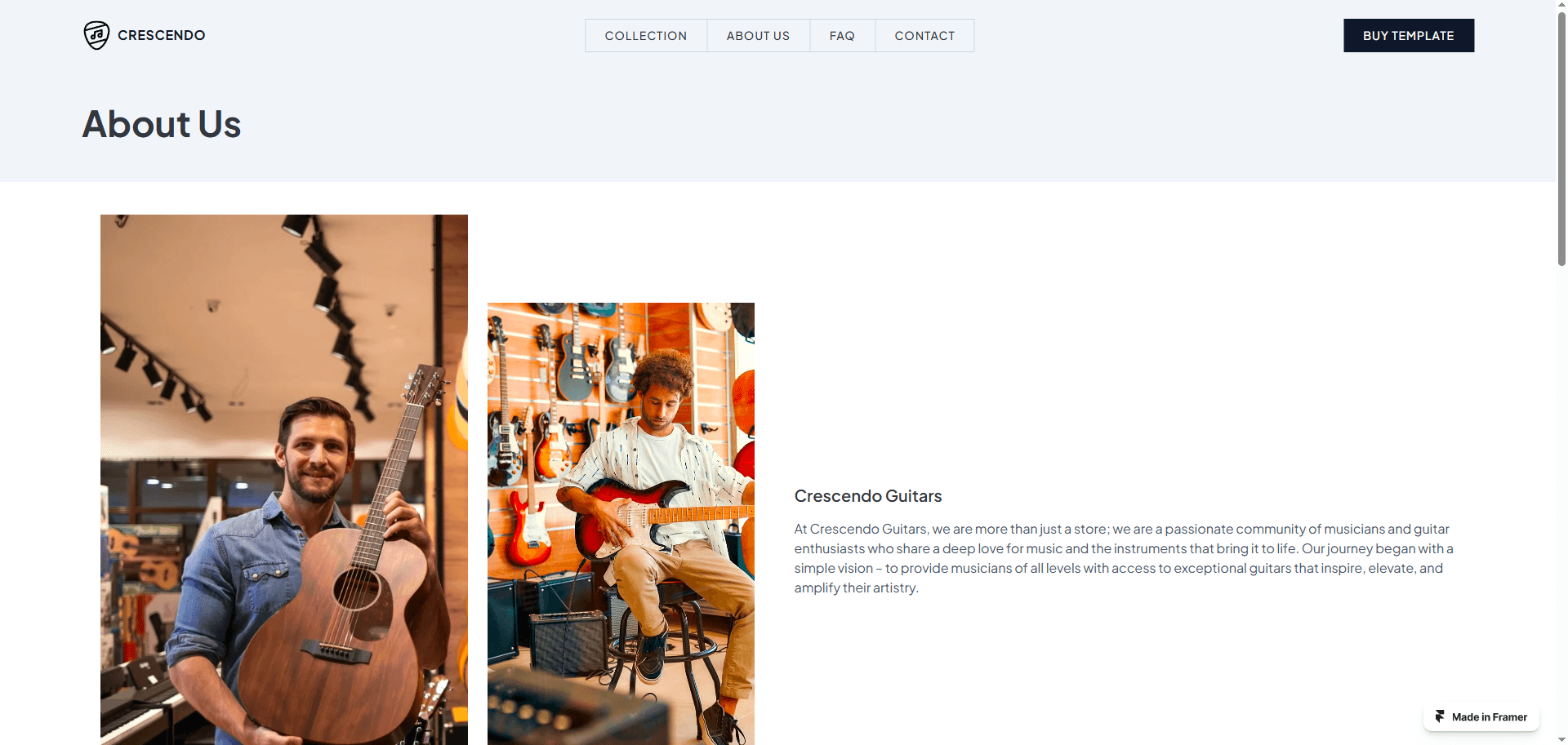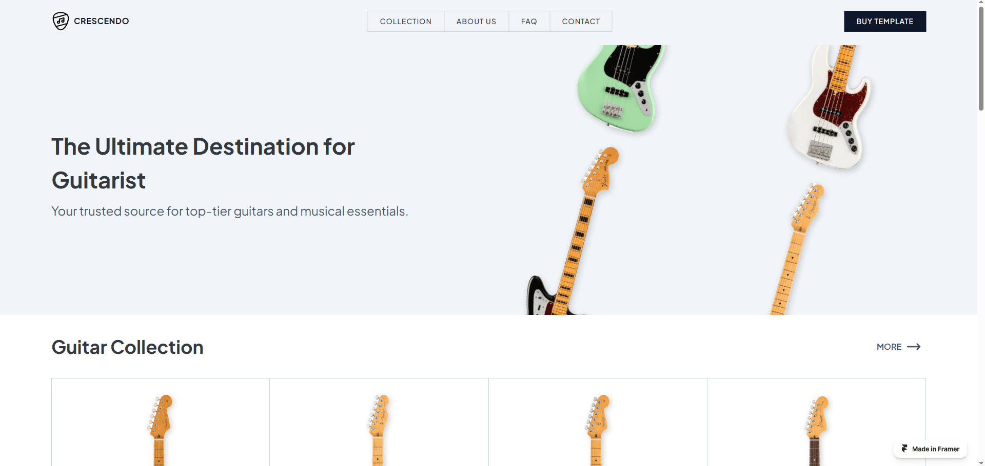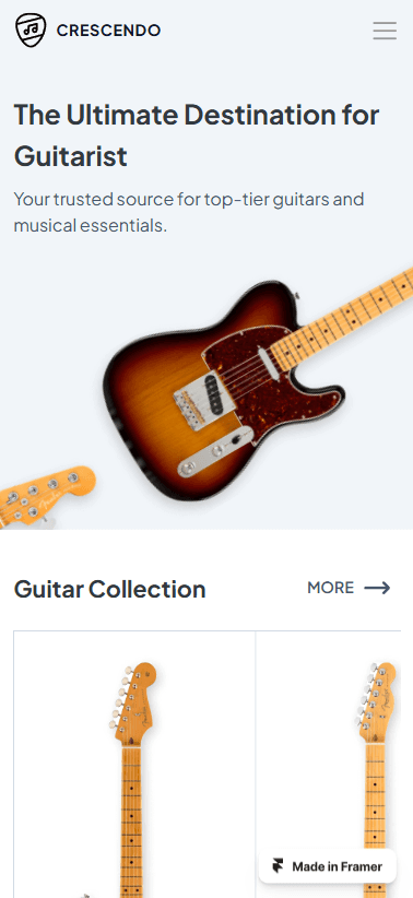 Introducing the Crescendo Guitar Store Website Template – the ultimate digital platform designed to harmonize your guitar retail business with the online world.