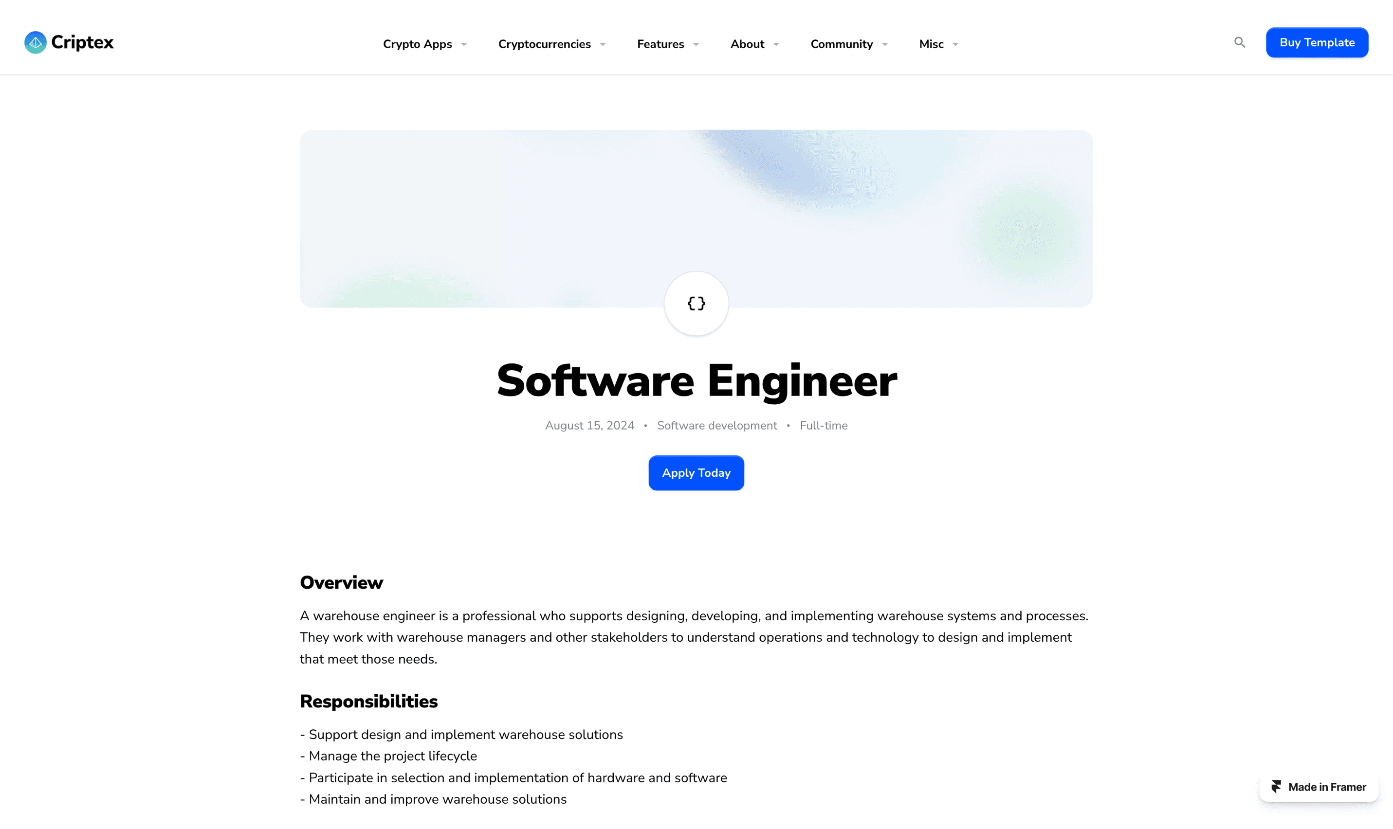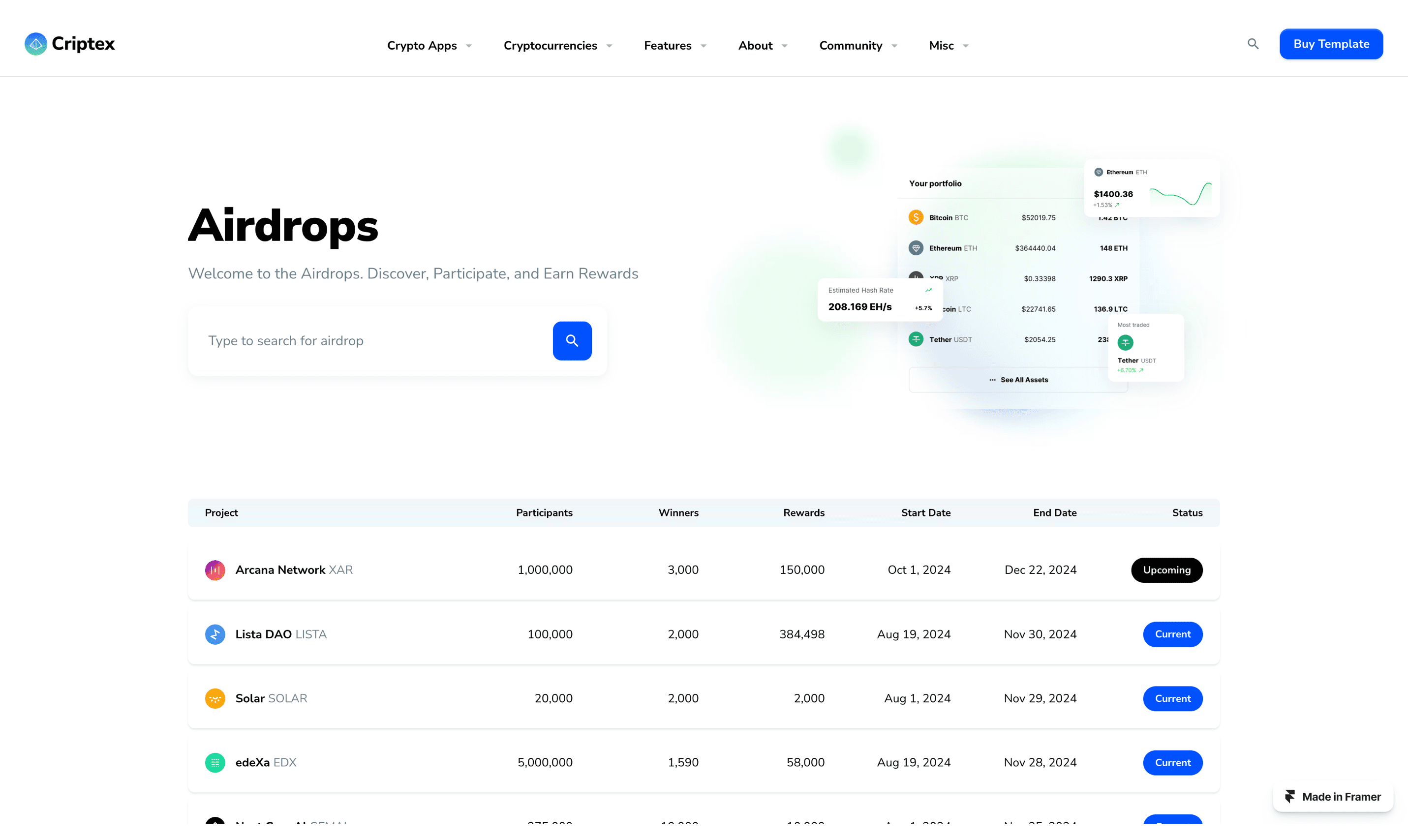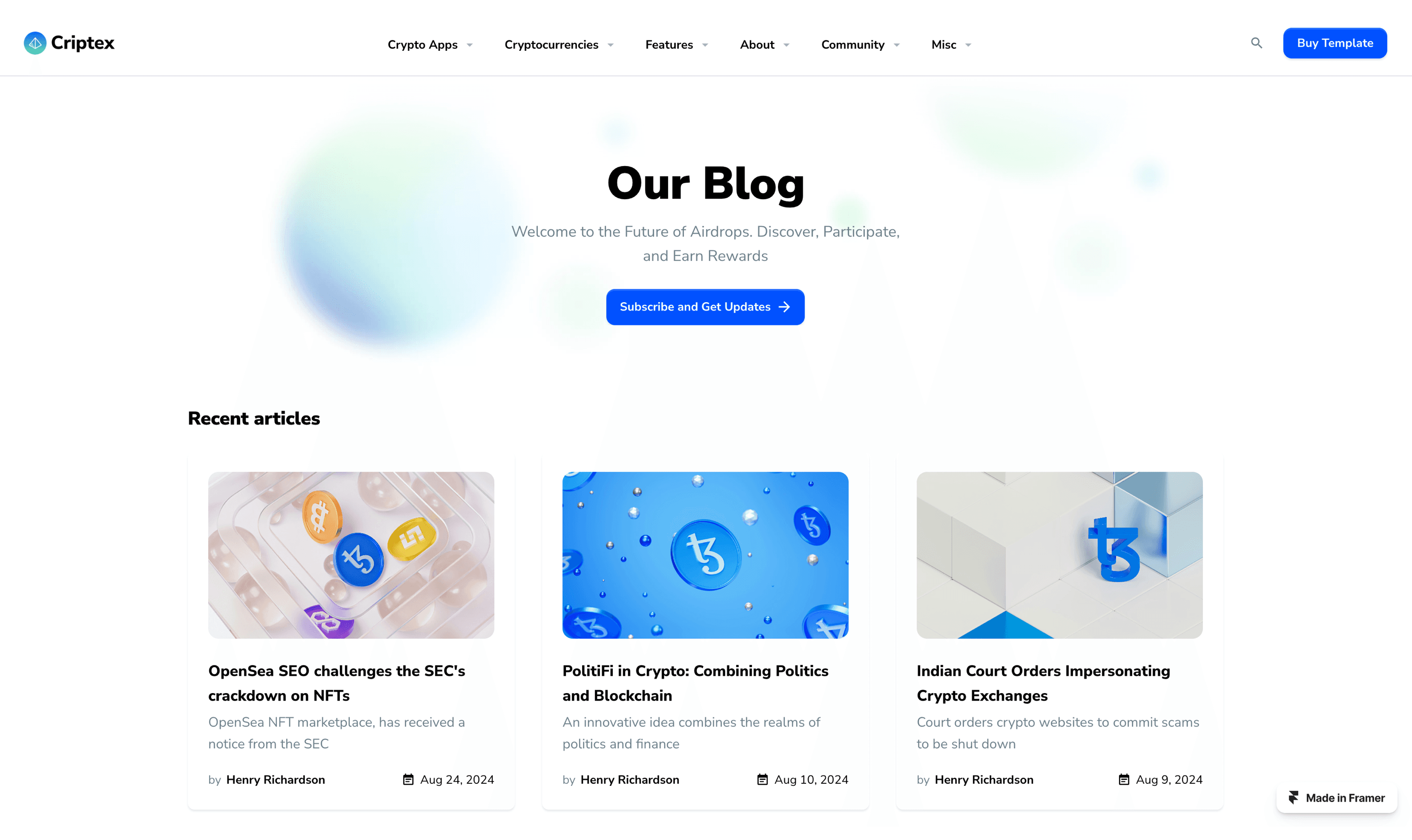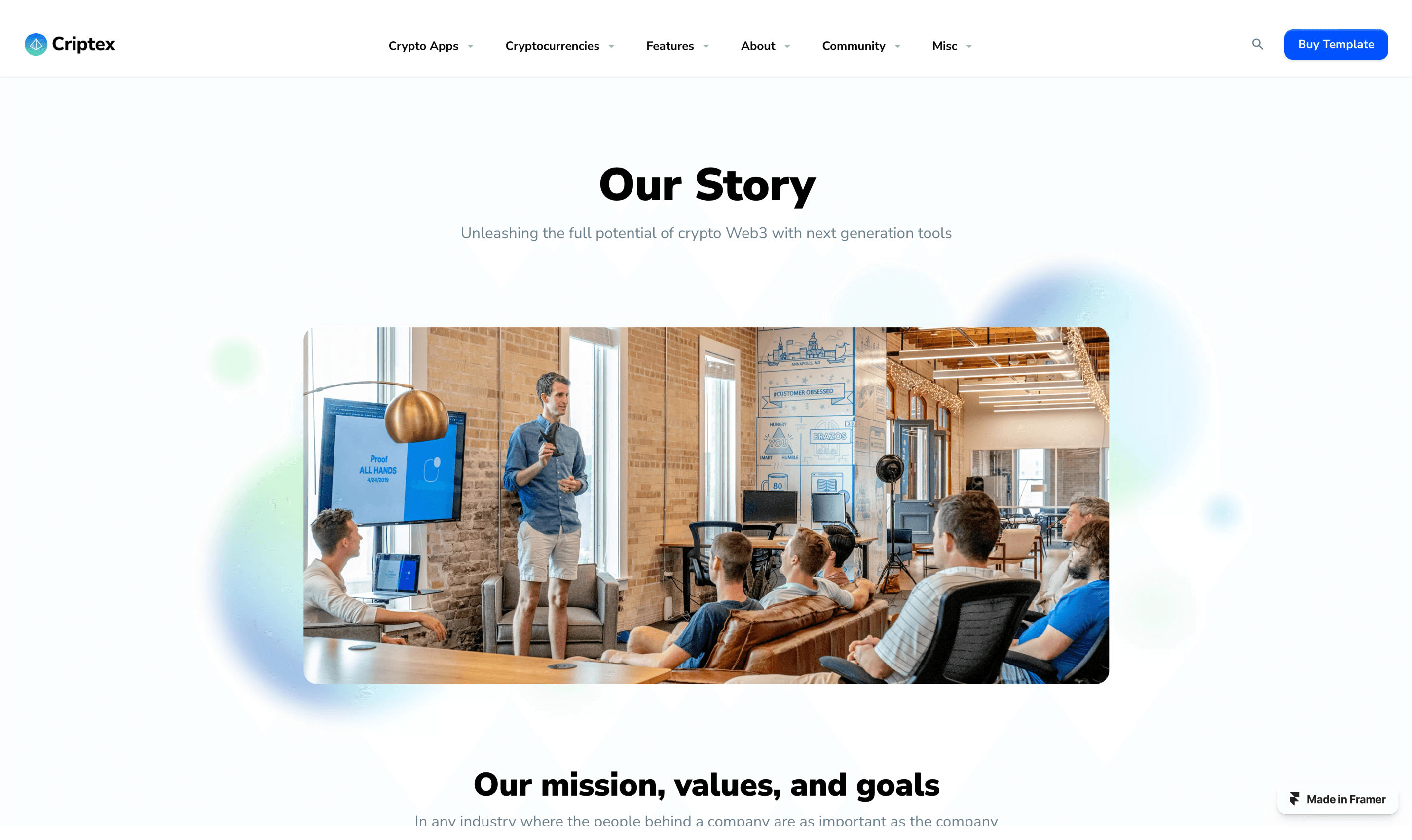 Criptex is a multipurpose template for crypto and web3 startups made with Framer.
