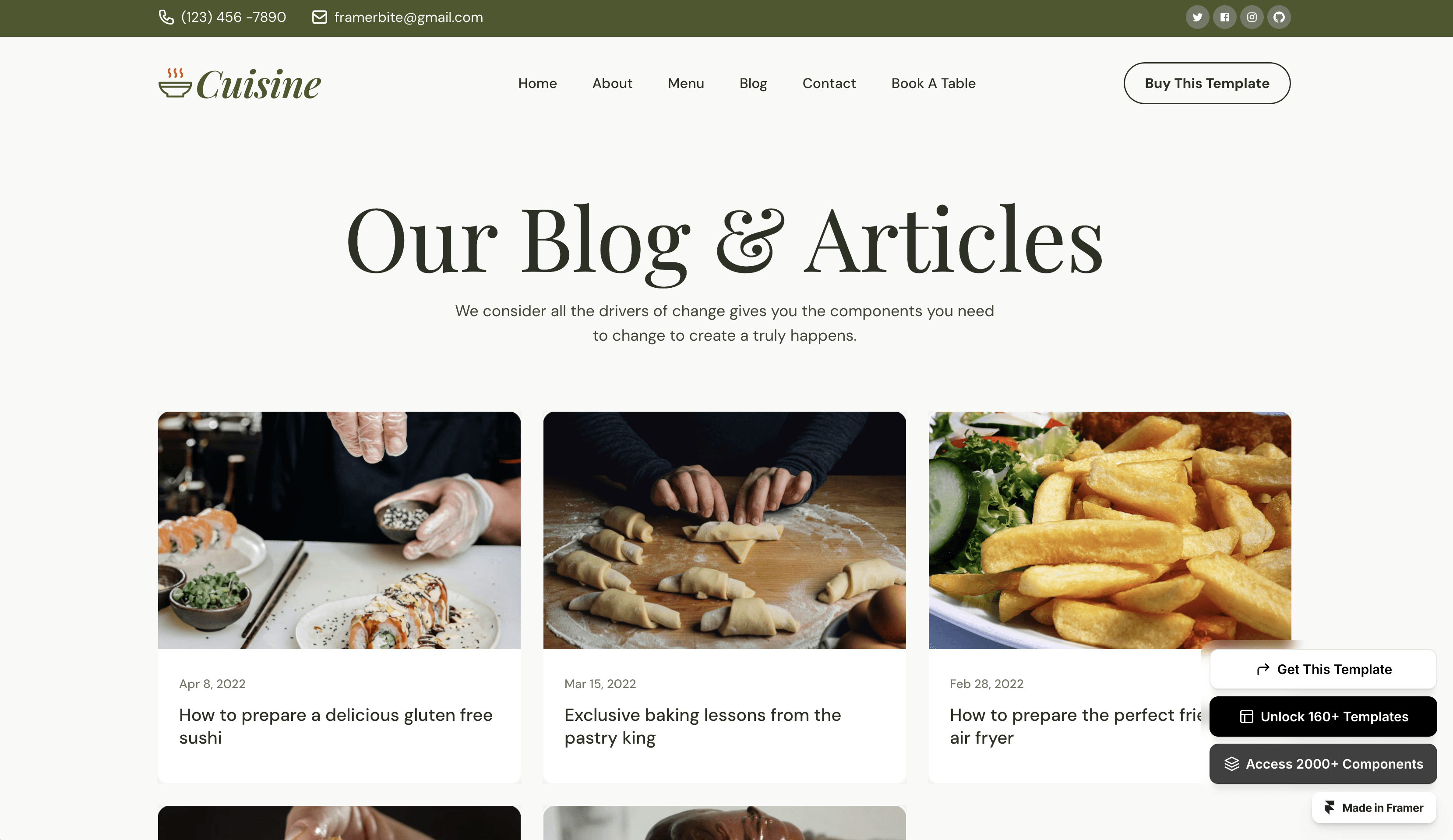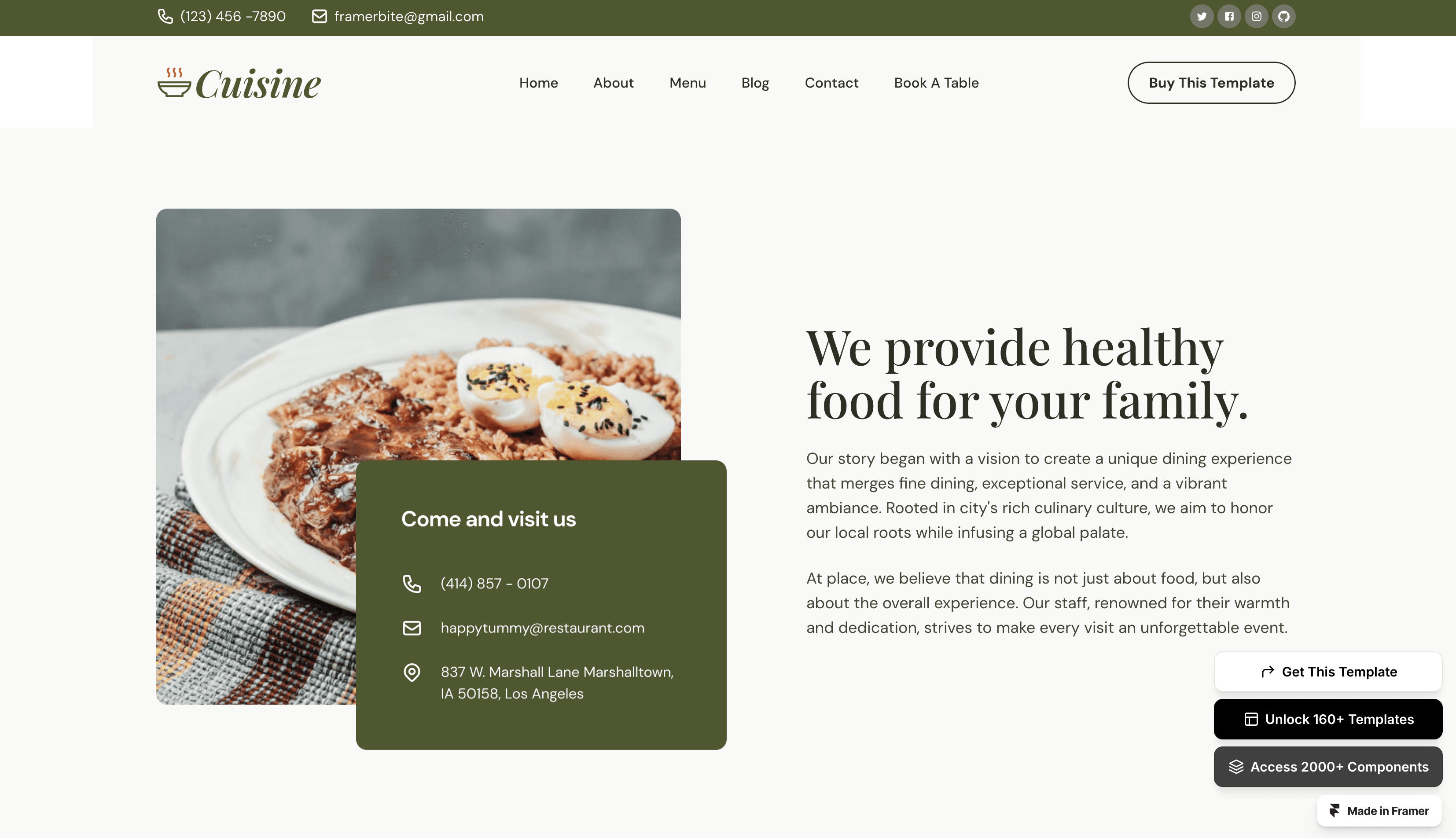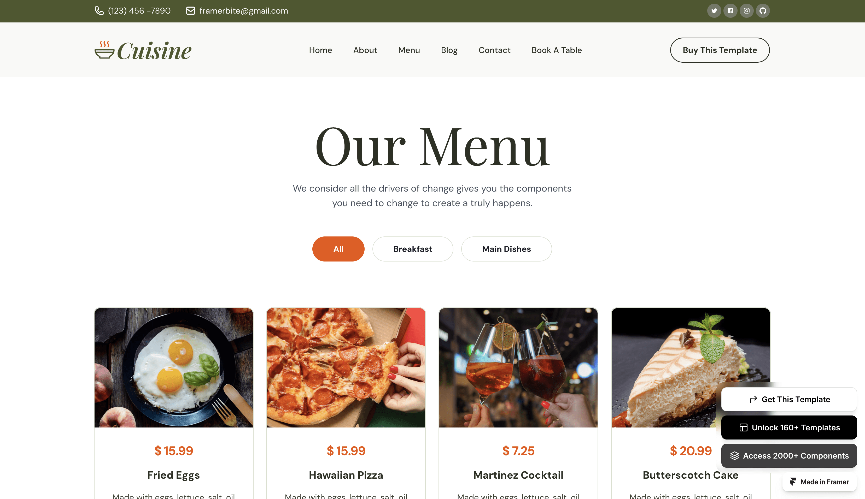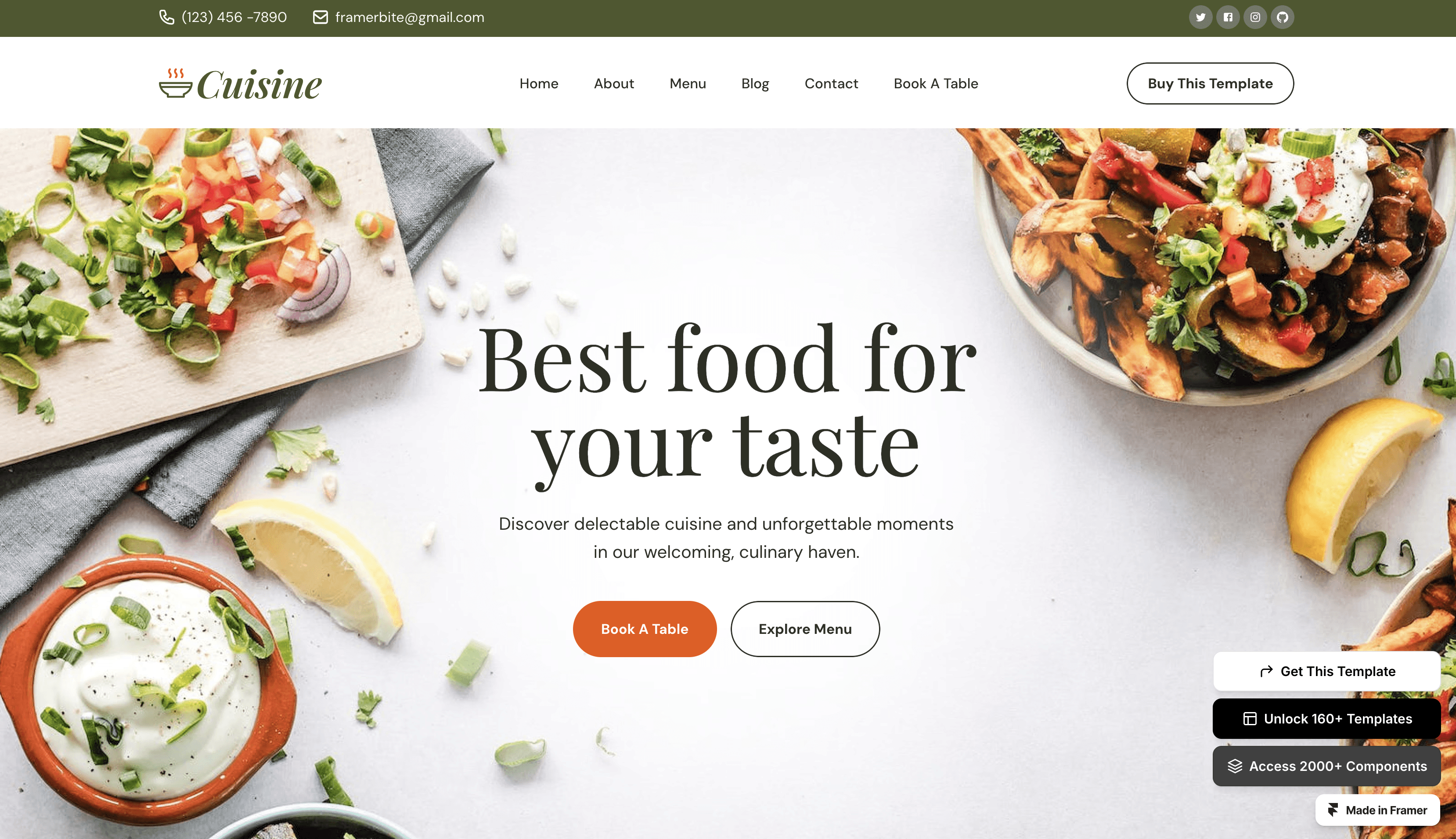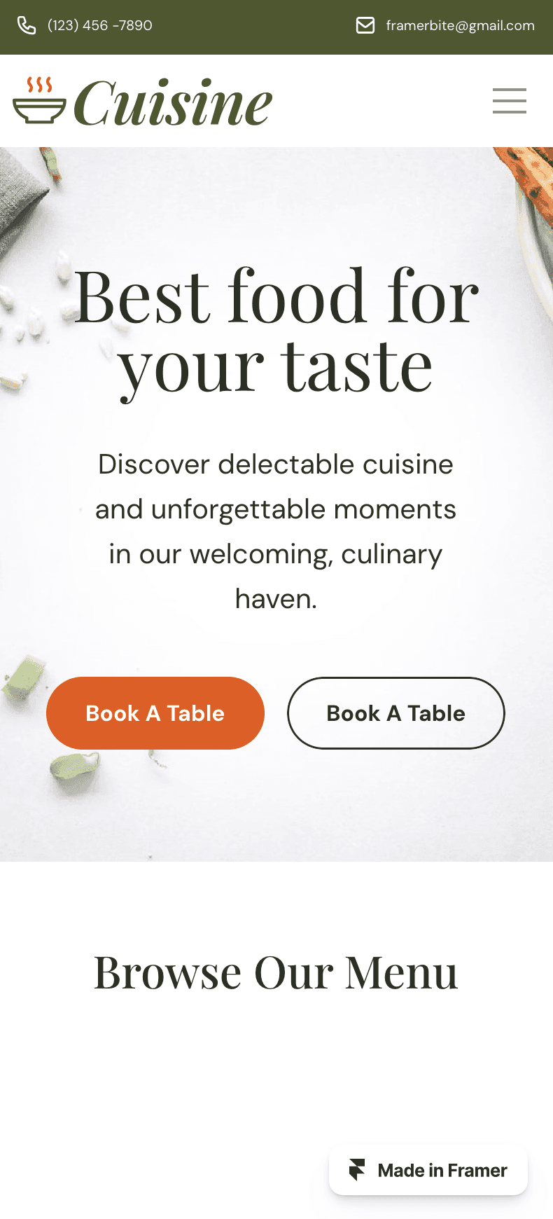 Cuisine is premium restaurant & food Framer Template tailored for restaurants and food businesses.