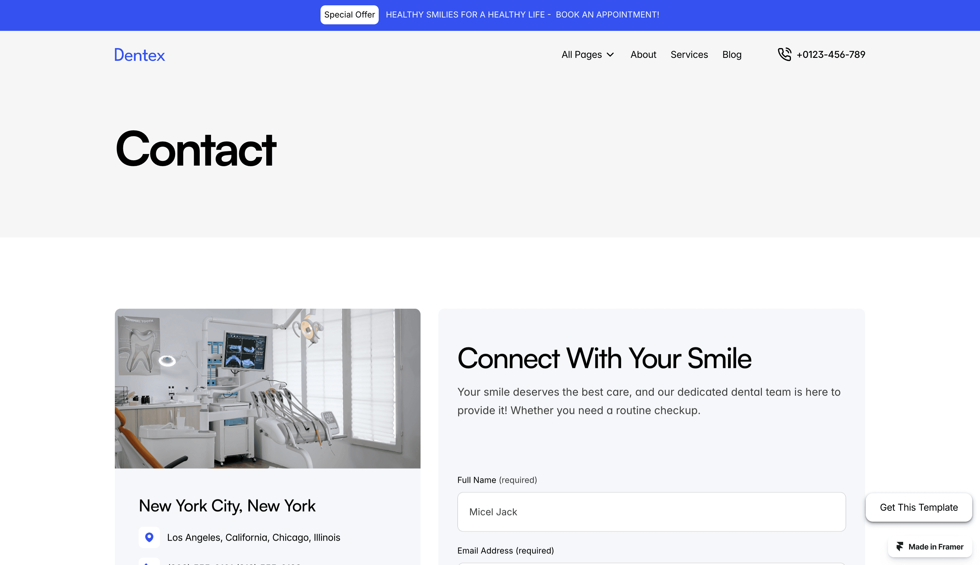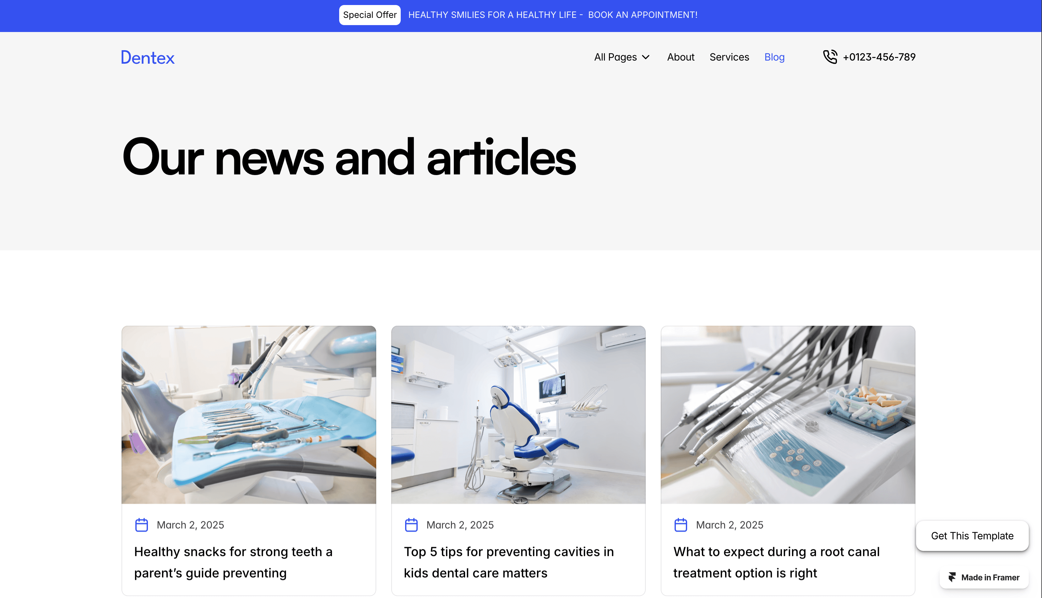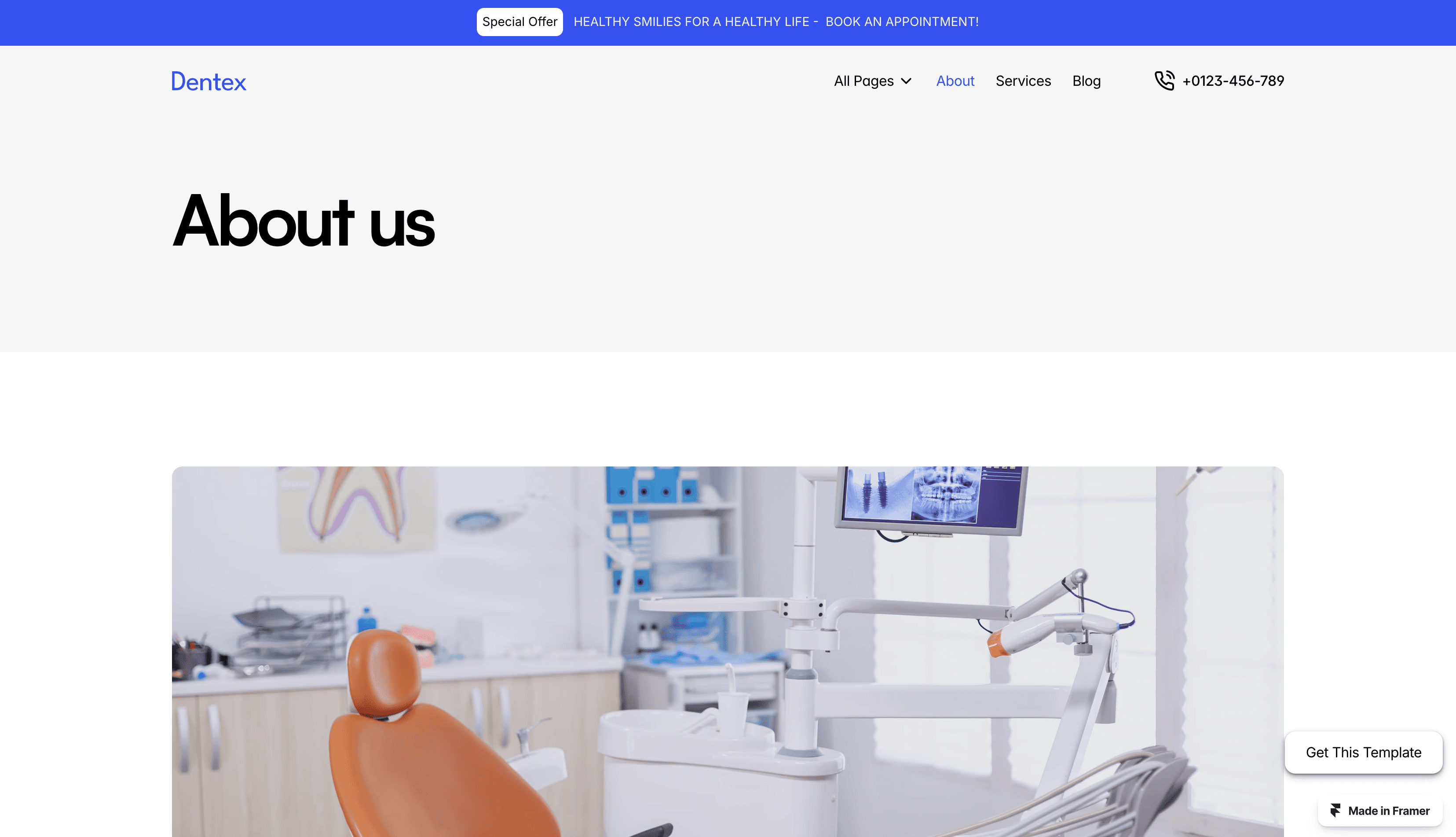 Dentex is a free Framer template crafted for dental professionals, blending modern design with seamless functionality.