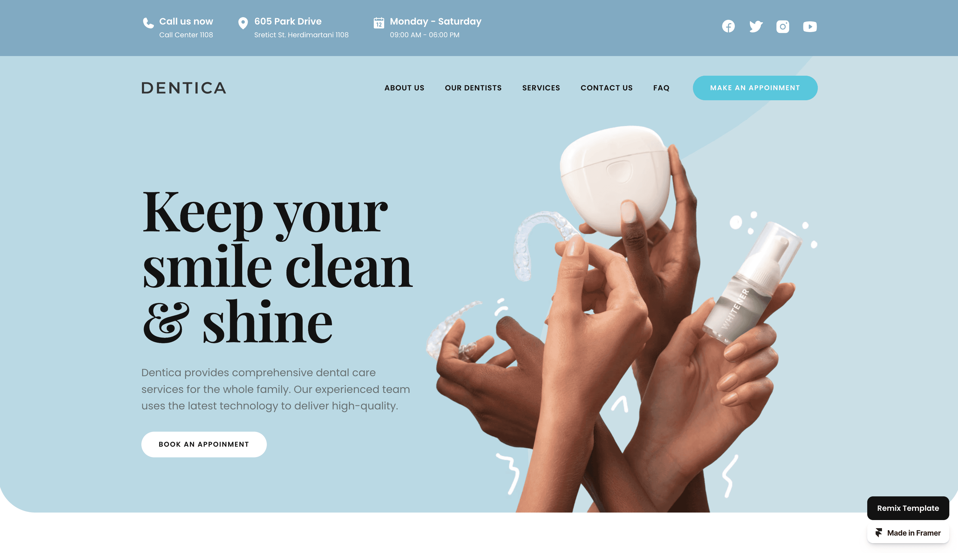 Dentica is a premium Framer template designed for dentists and dental clinics.