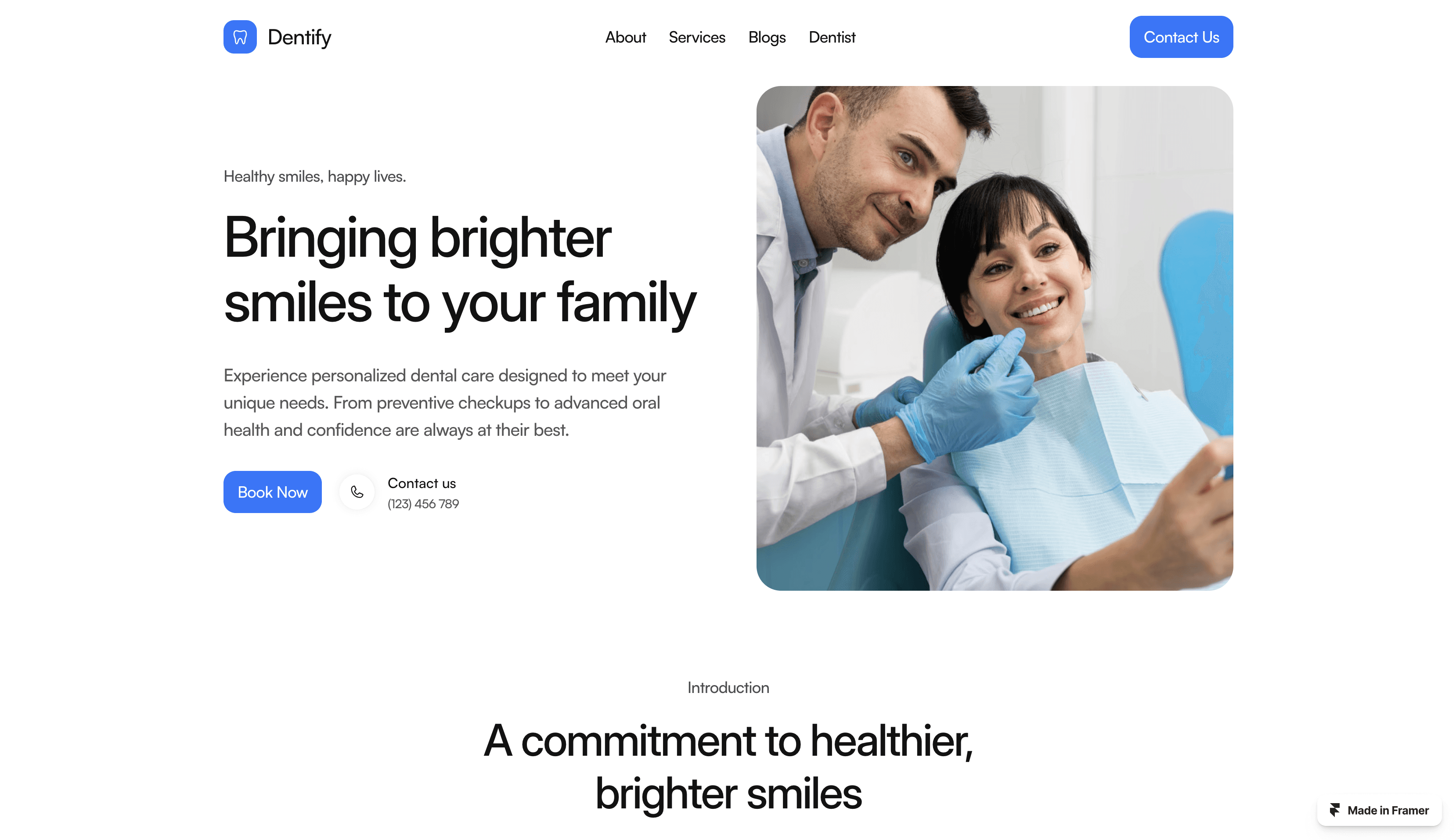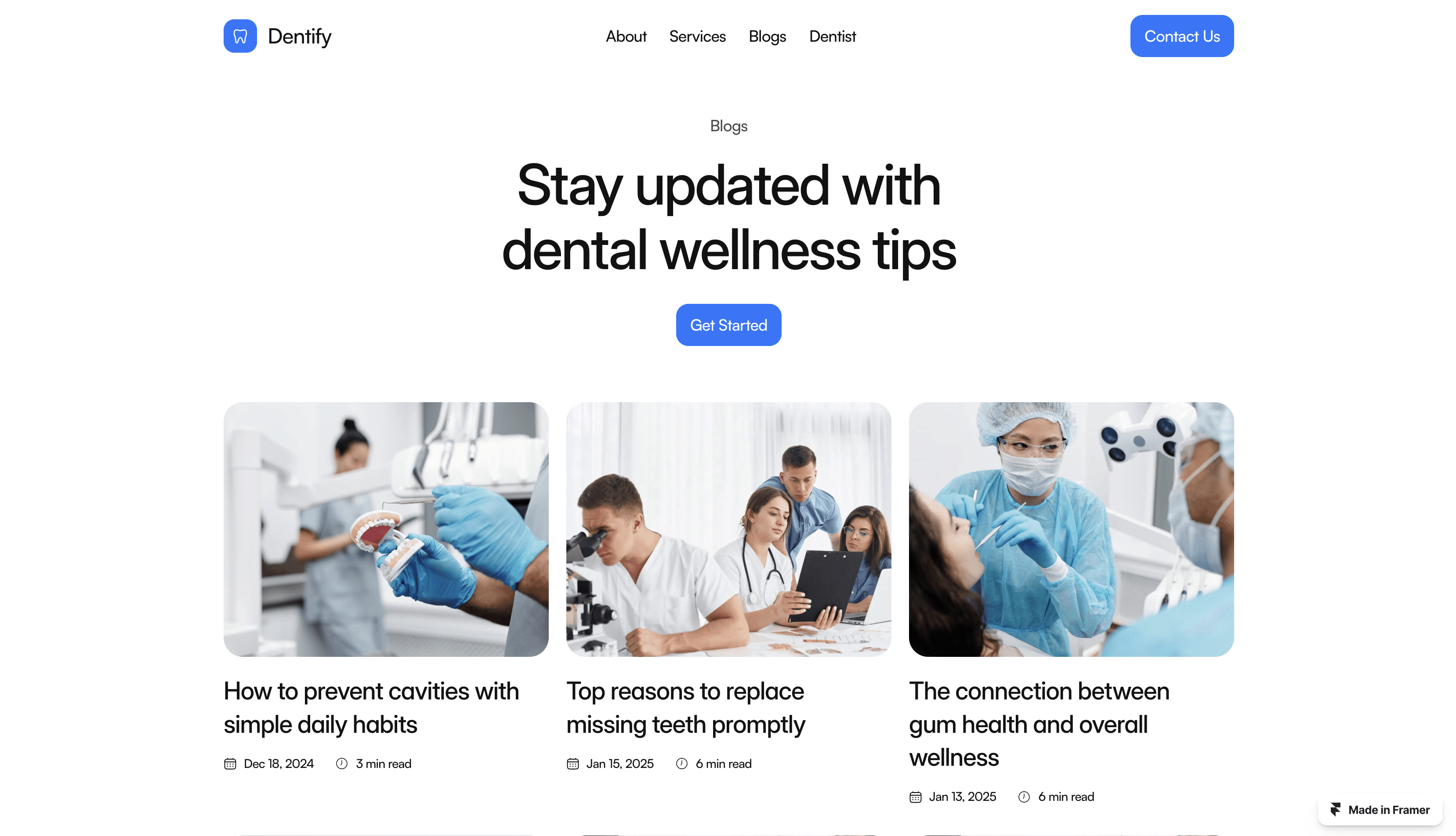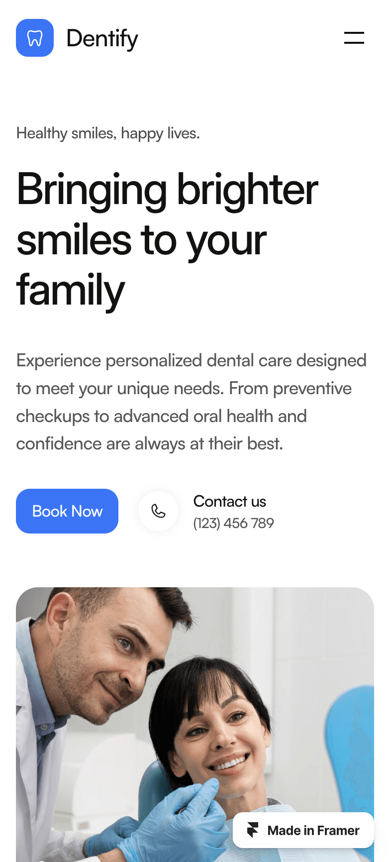 Dentify is a modern and clean Framer template designed for dental clinics and hospitals.