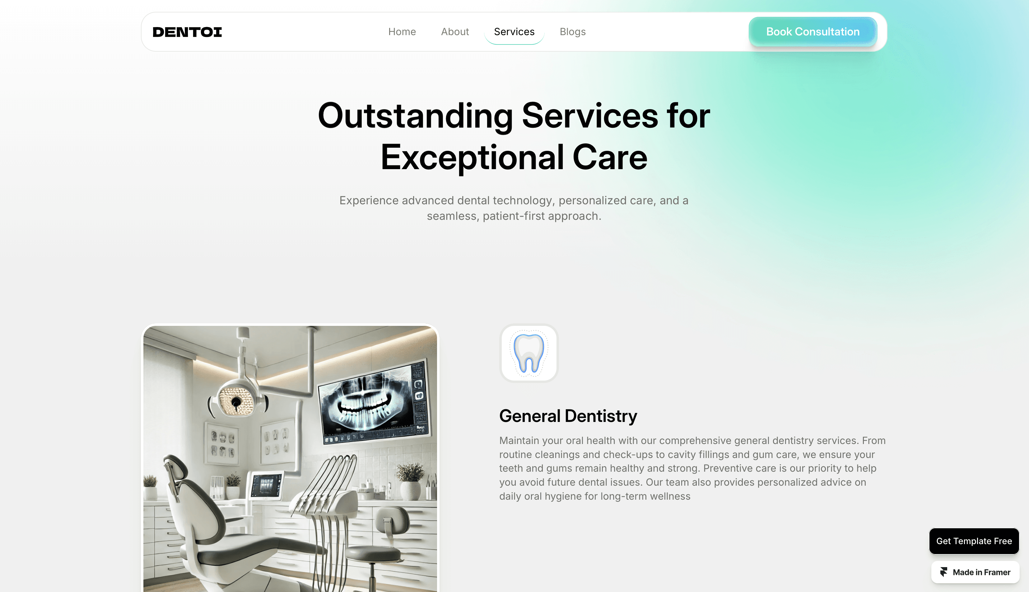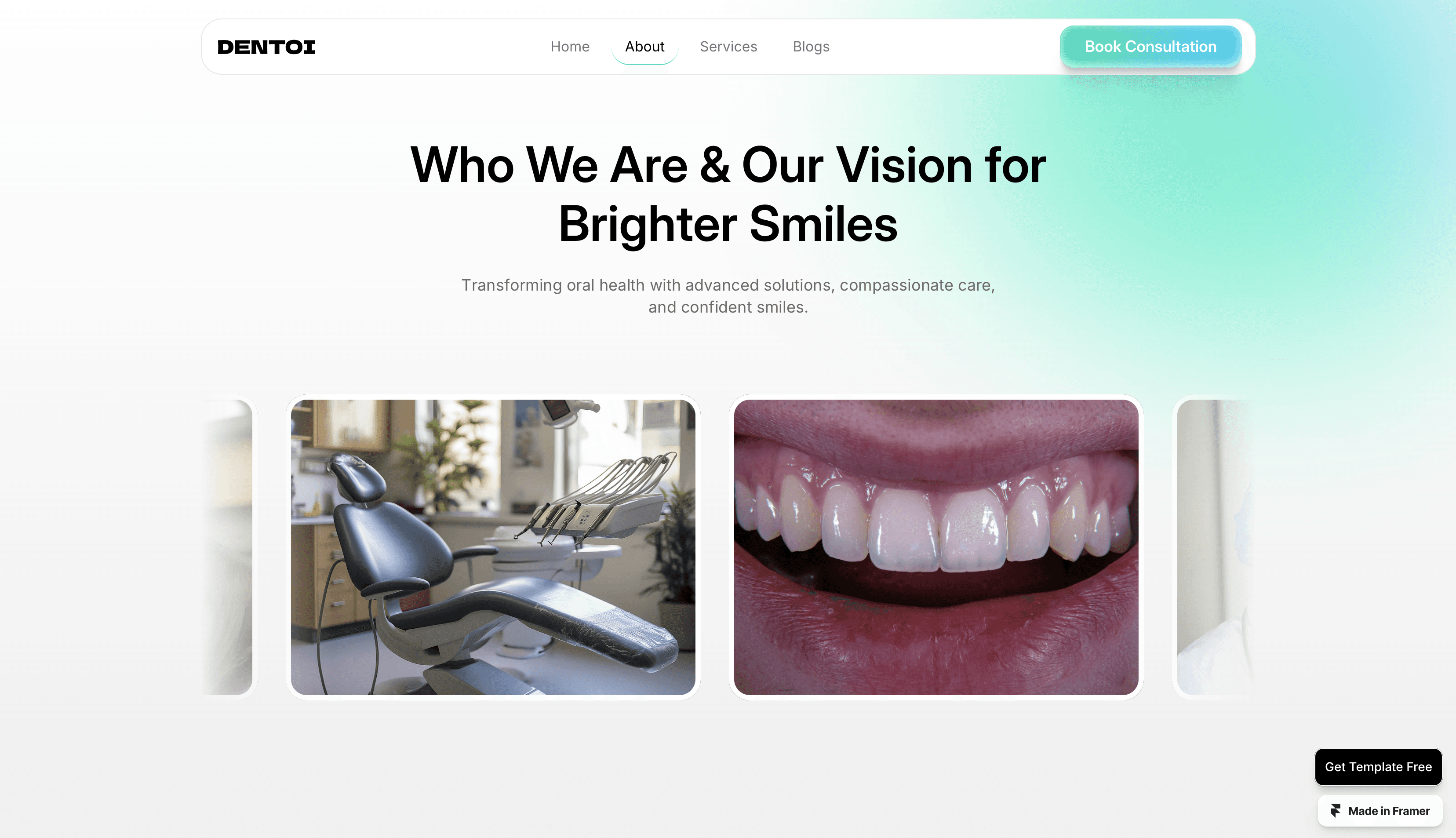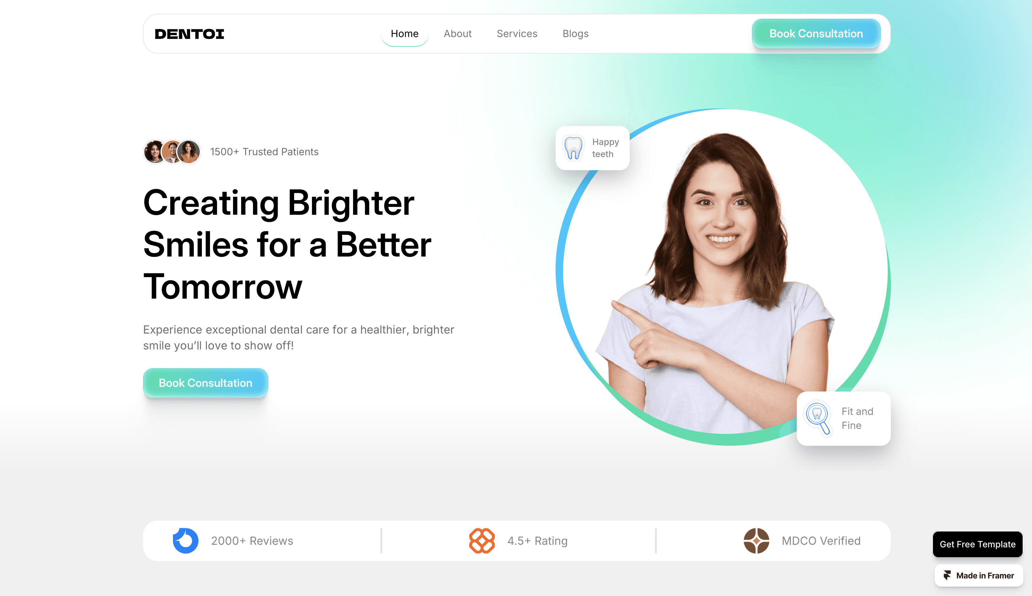 Dentoi is a modern Framer template designed specifically for dental clinics and professionals.