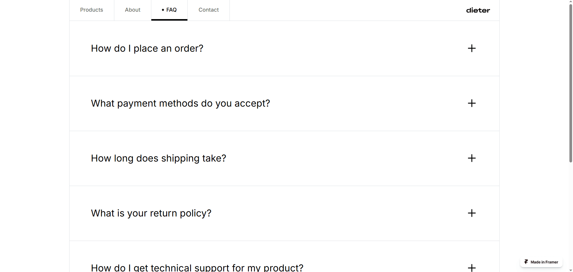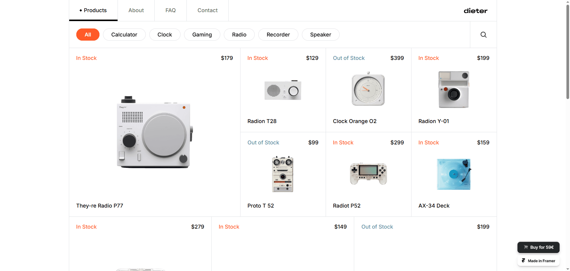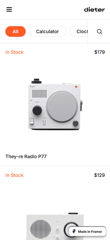 Dieter is a very simple e-commerce template that has been made for Framer. Experience e-commerce simplicity at its best.