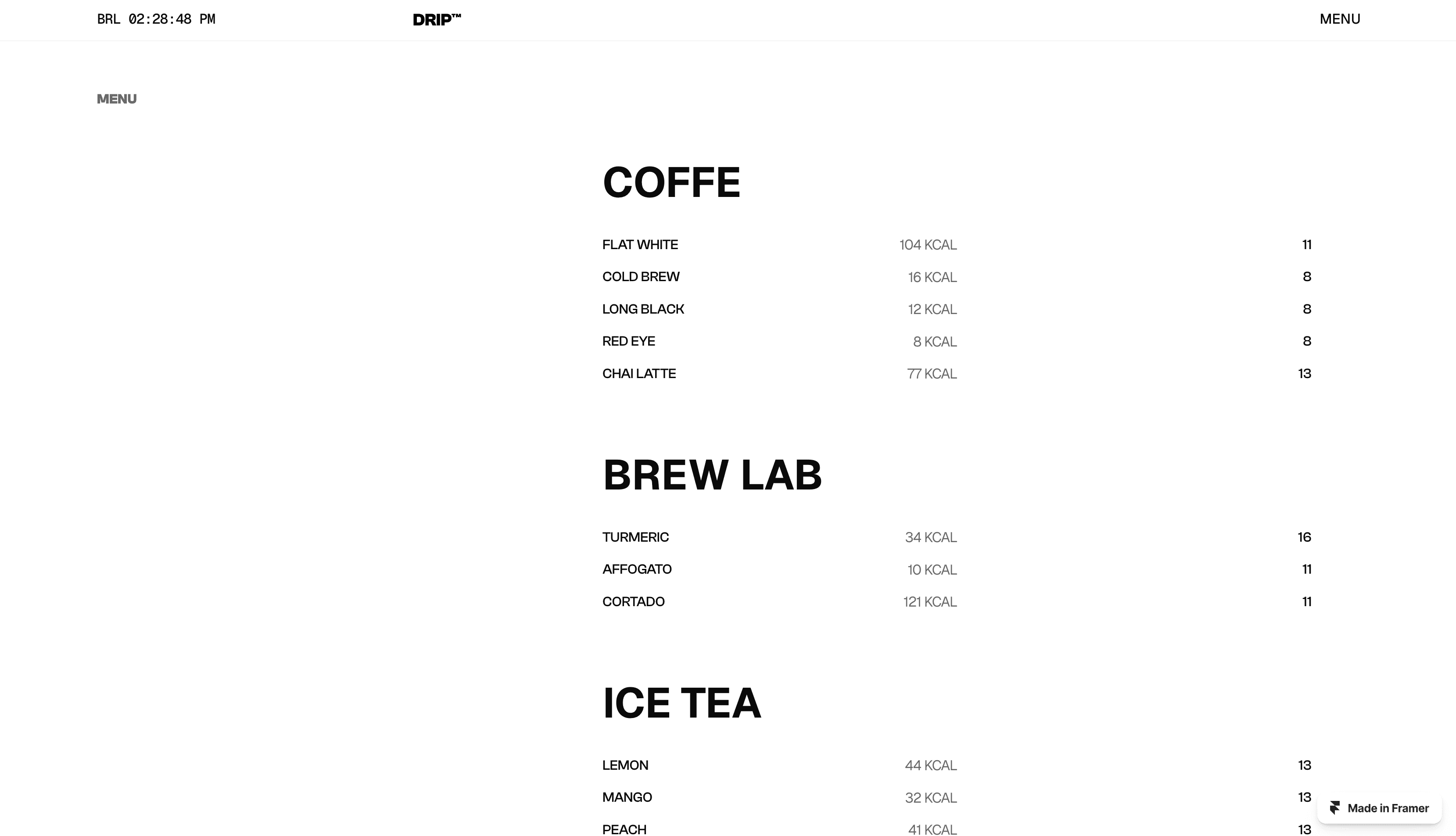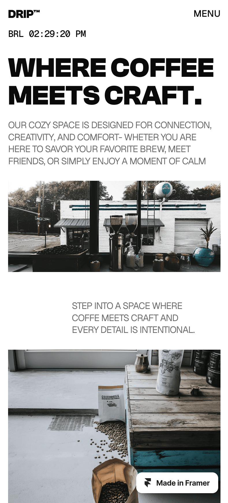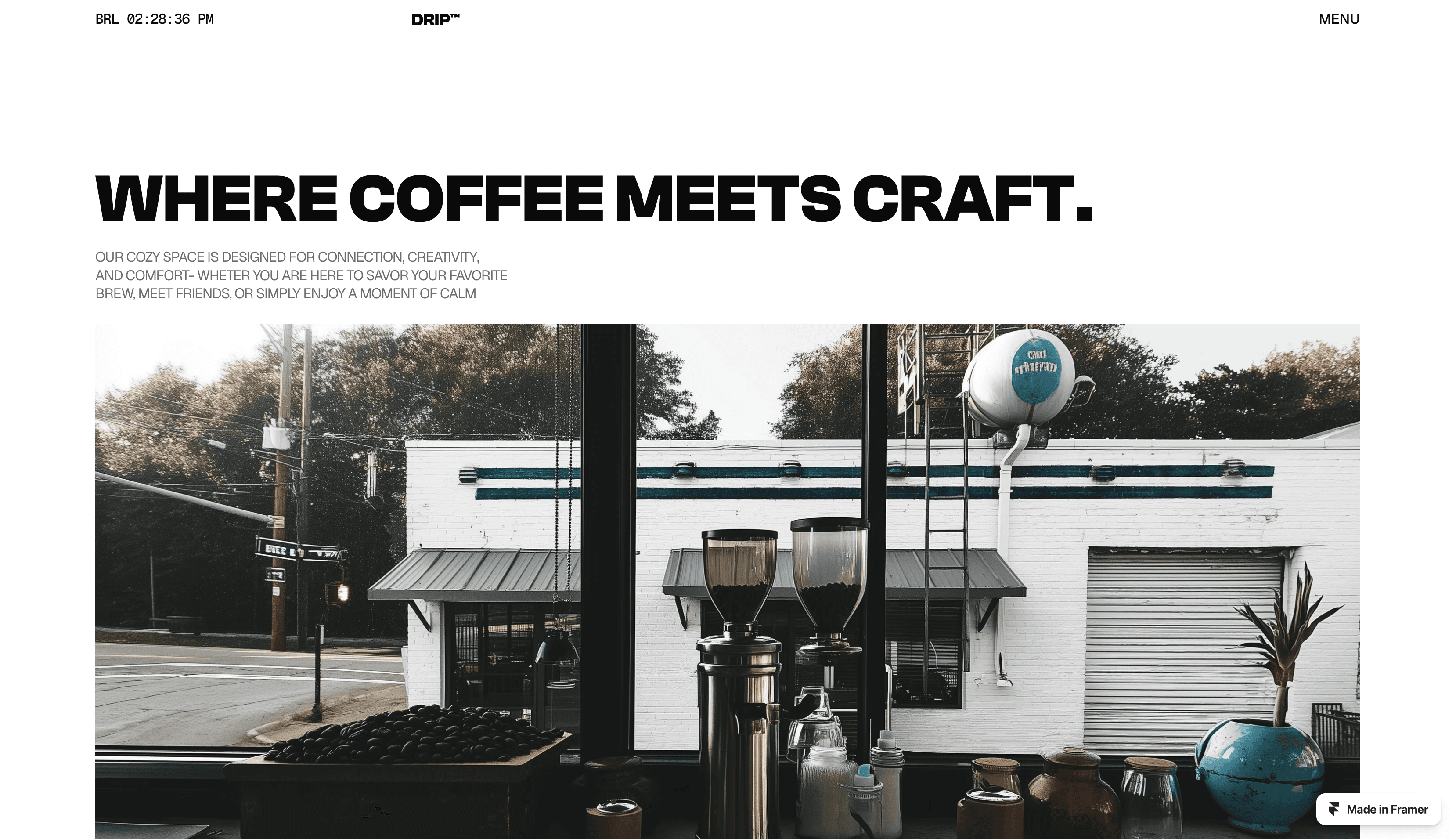 Drip is a Swiss-style Framer template built for third-wave coffee shops and passionate home brewers.