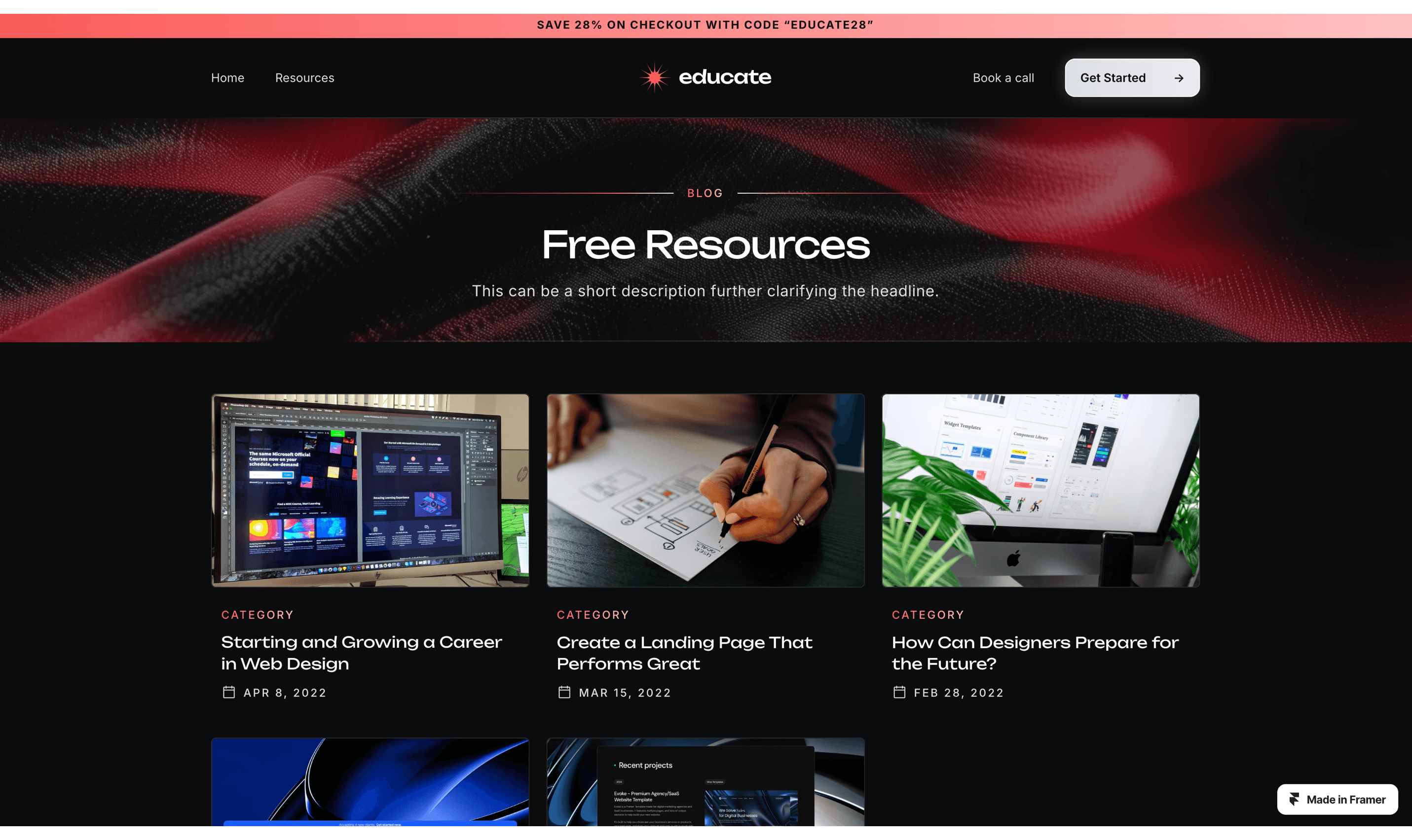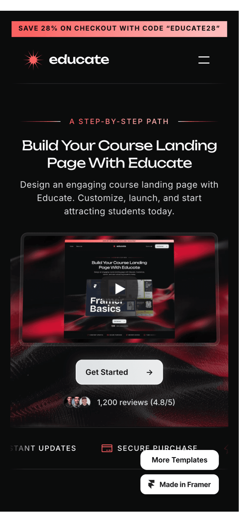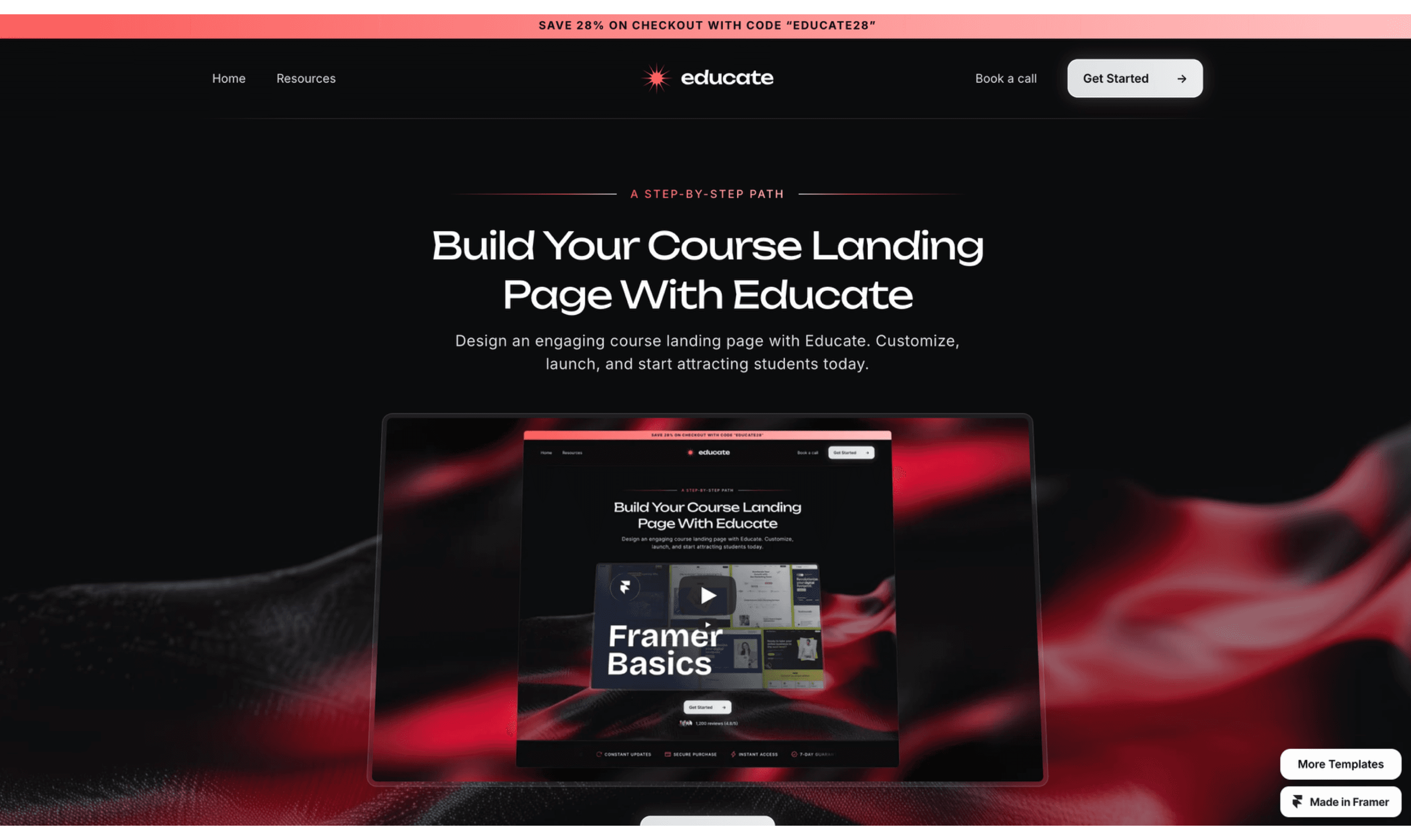 Educate is a Framer website template built for digital course creators. It's built with a conversion funnel that contains everything you need to sell your course effectively.