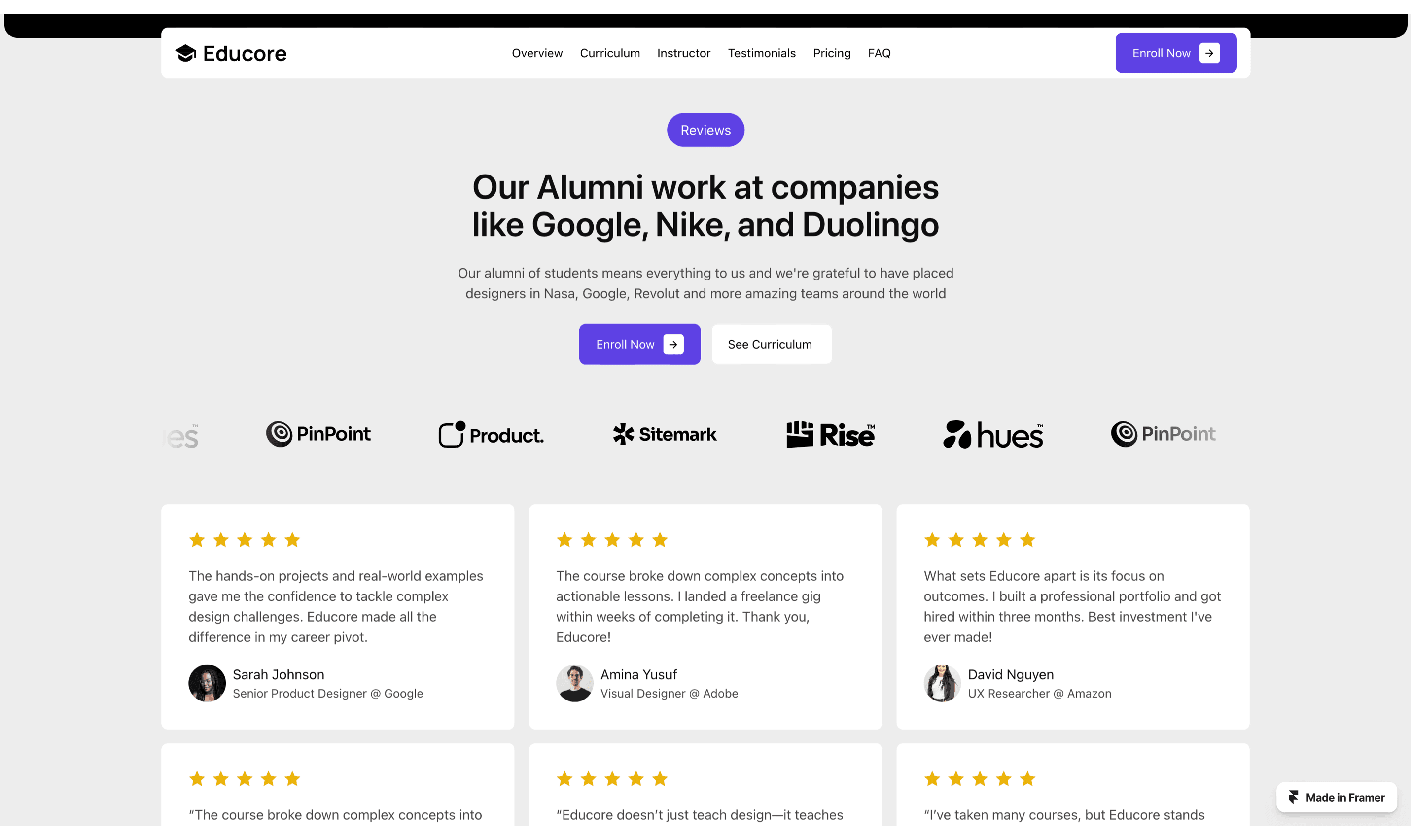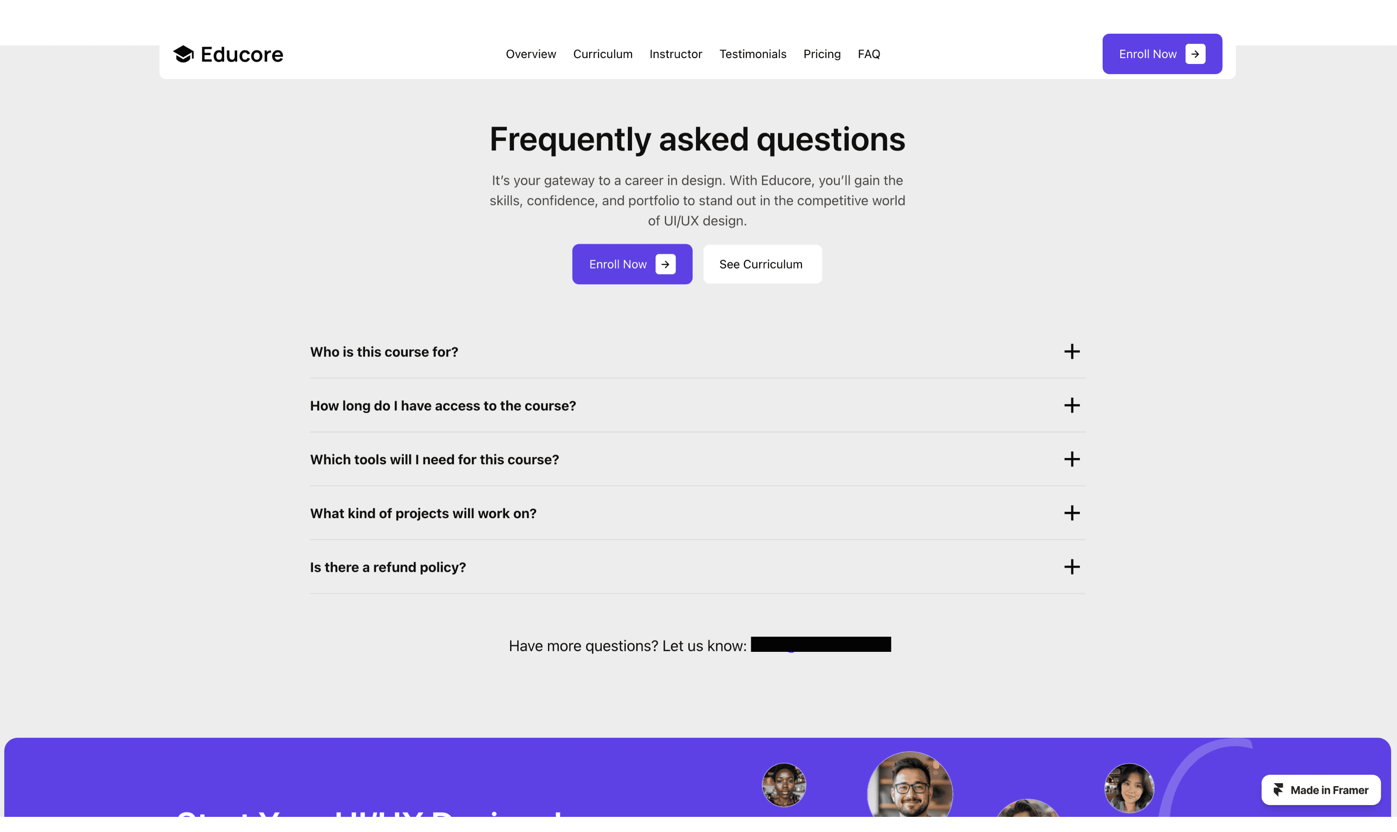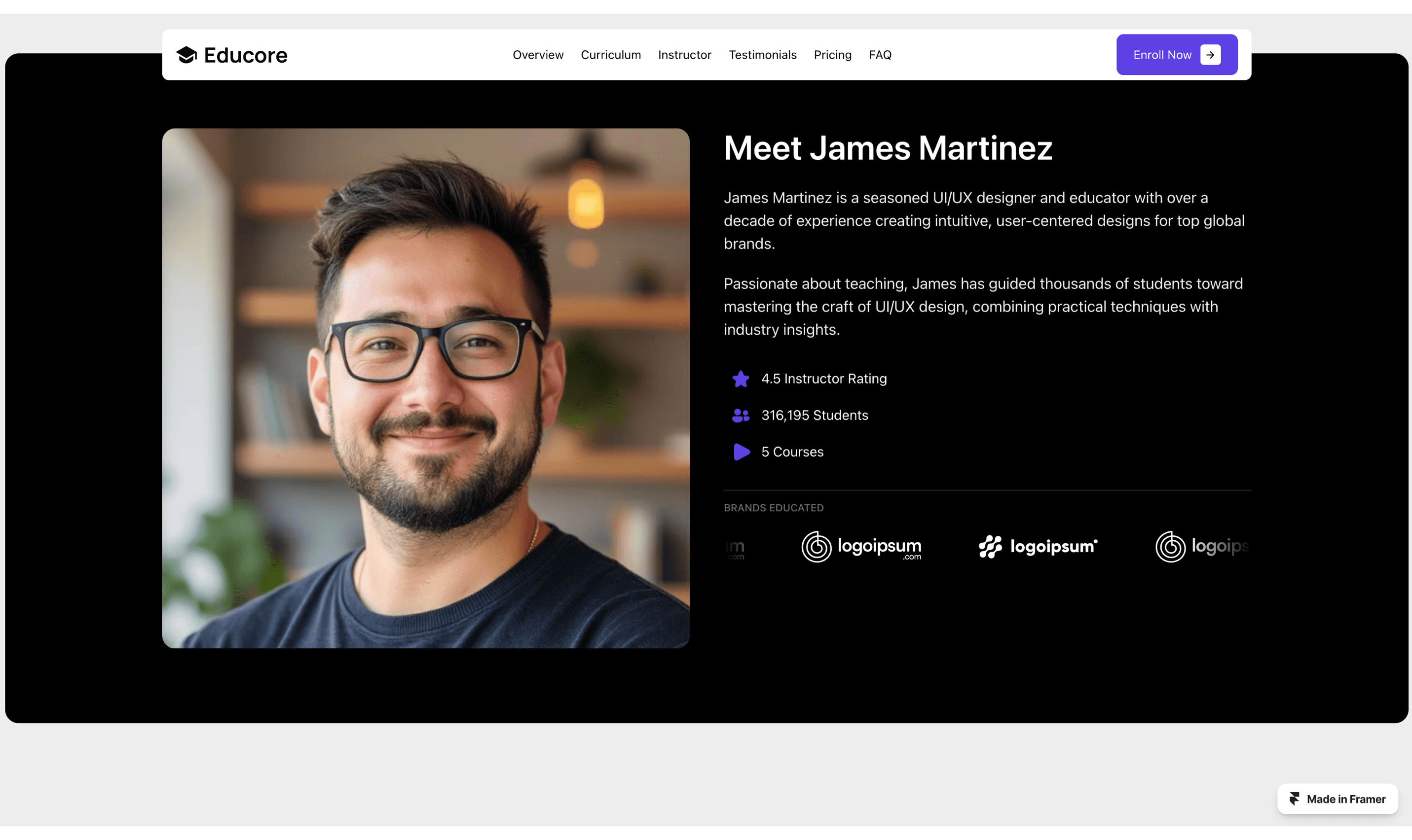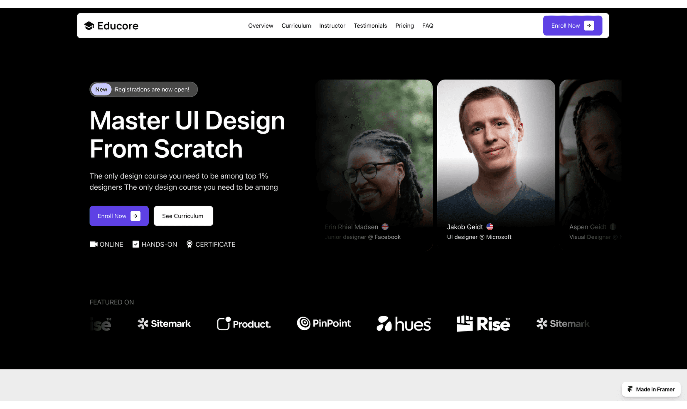 Educore is a feature-rich Framer template tailored for online education, specifically for UI/UX design courses.
