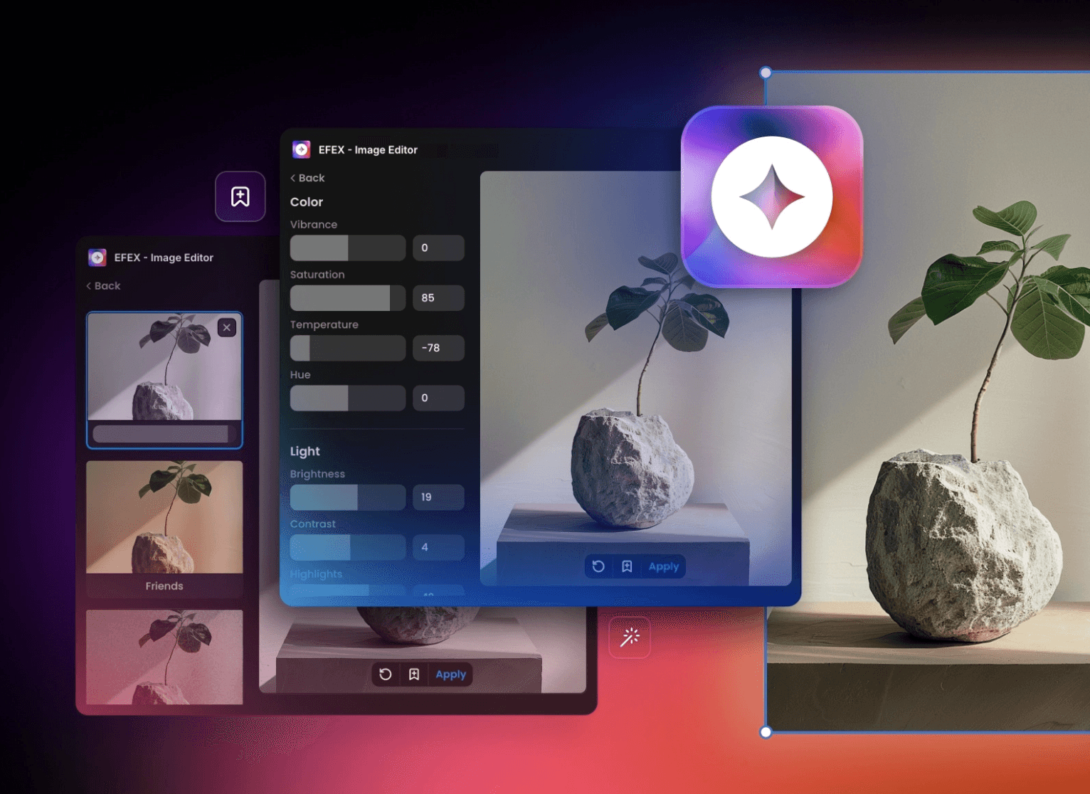 Edit images with pro adjustment tools and filters, or add fun effects!