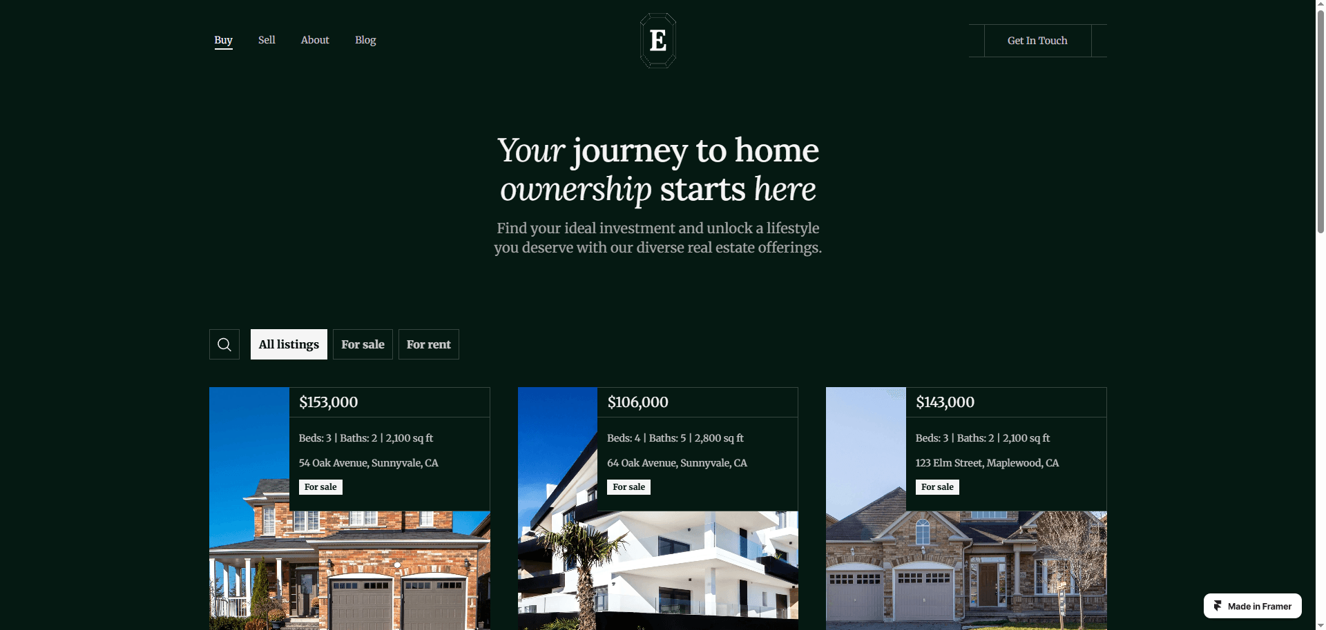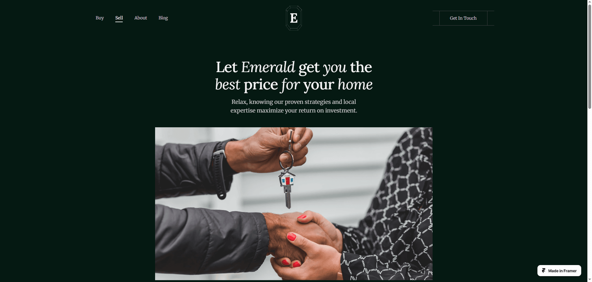Emerald is a beautifully designed Framer template, crafted specifically for real estate agencies to effortlessly create engaging listings that showcase properties in the best light.