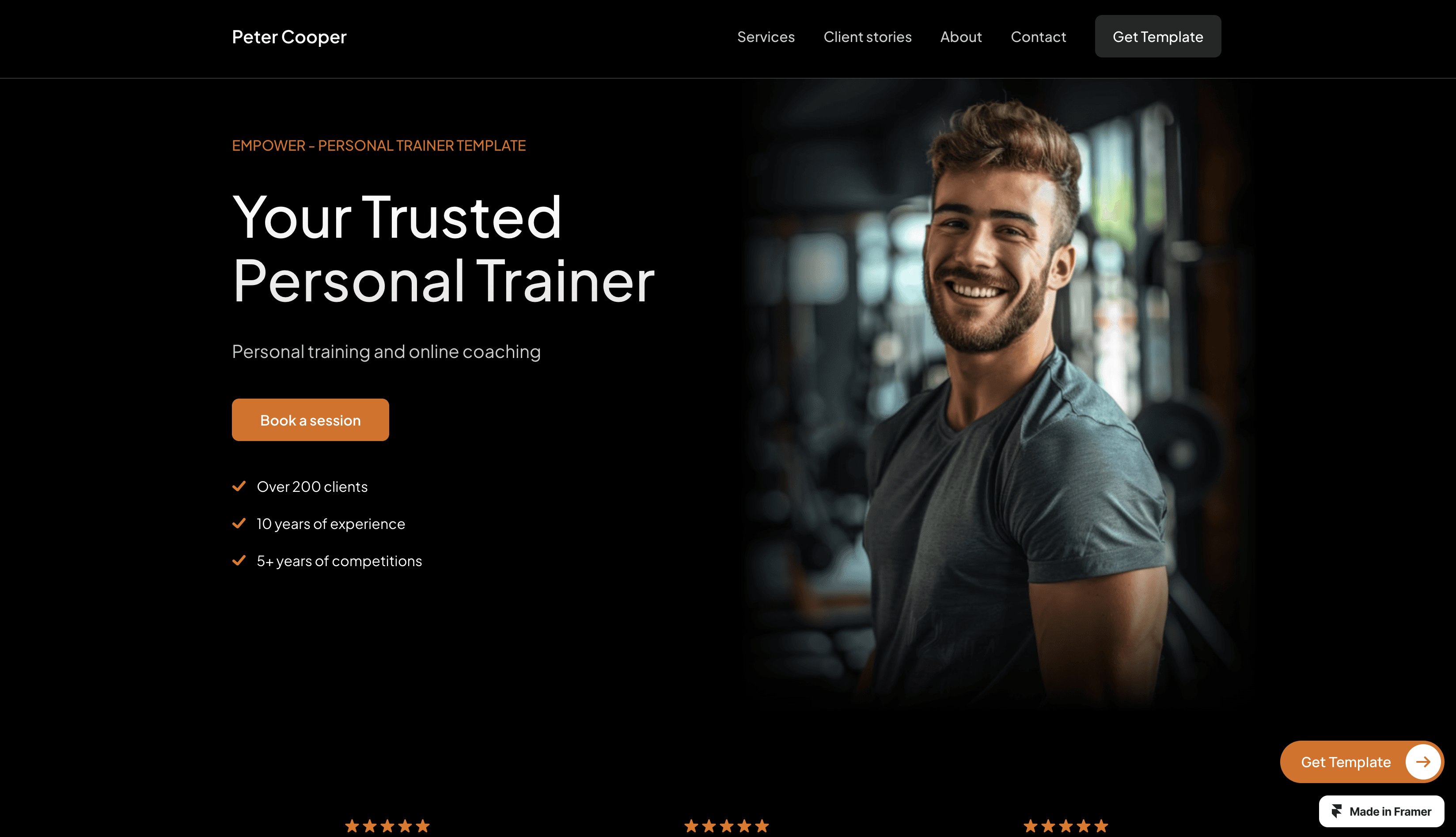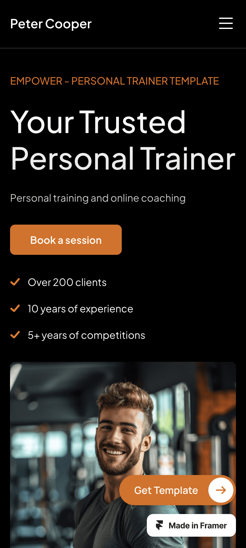 Empower is a sleek Framer template for personal trainers.