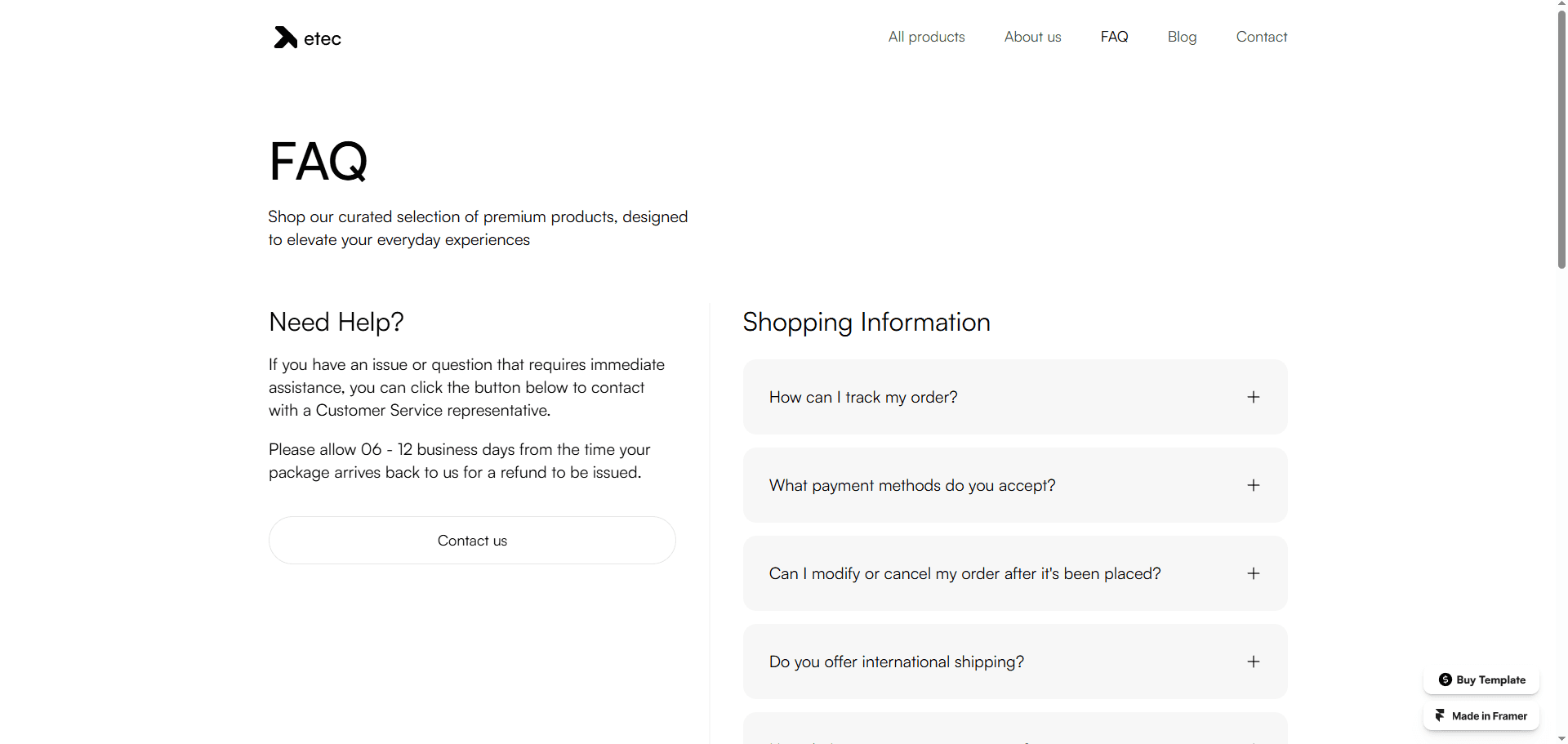 Framer Parts Store