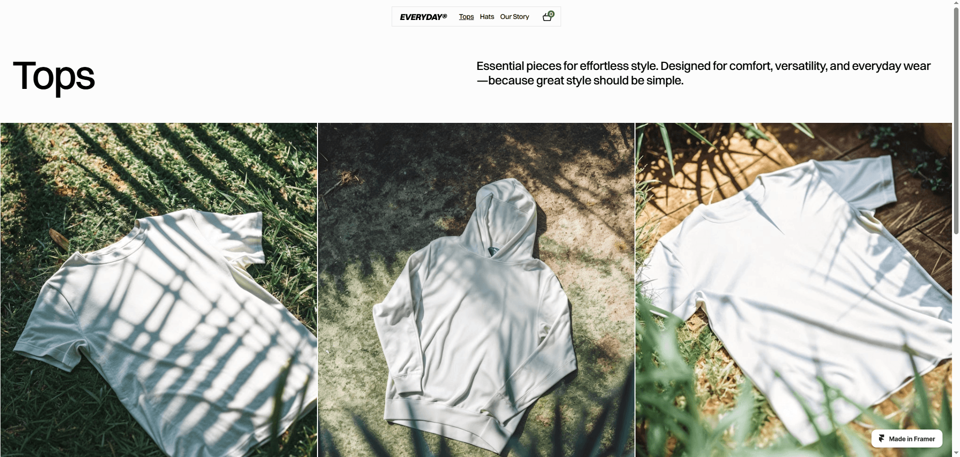 A clean, minimalistic Framer eCommerce template with seamless Shopify integration.