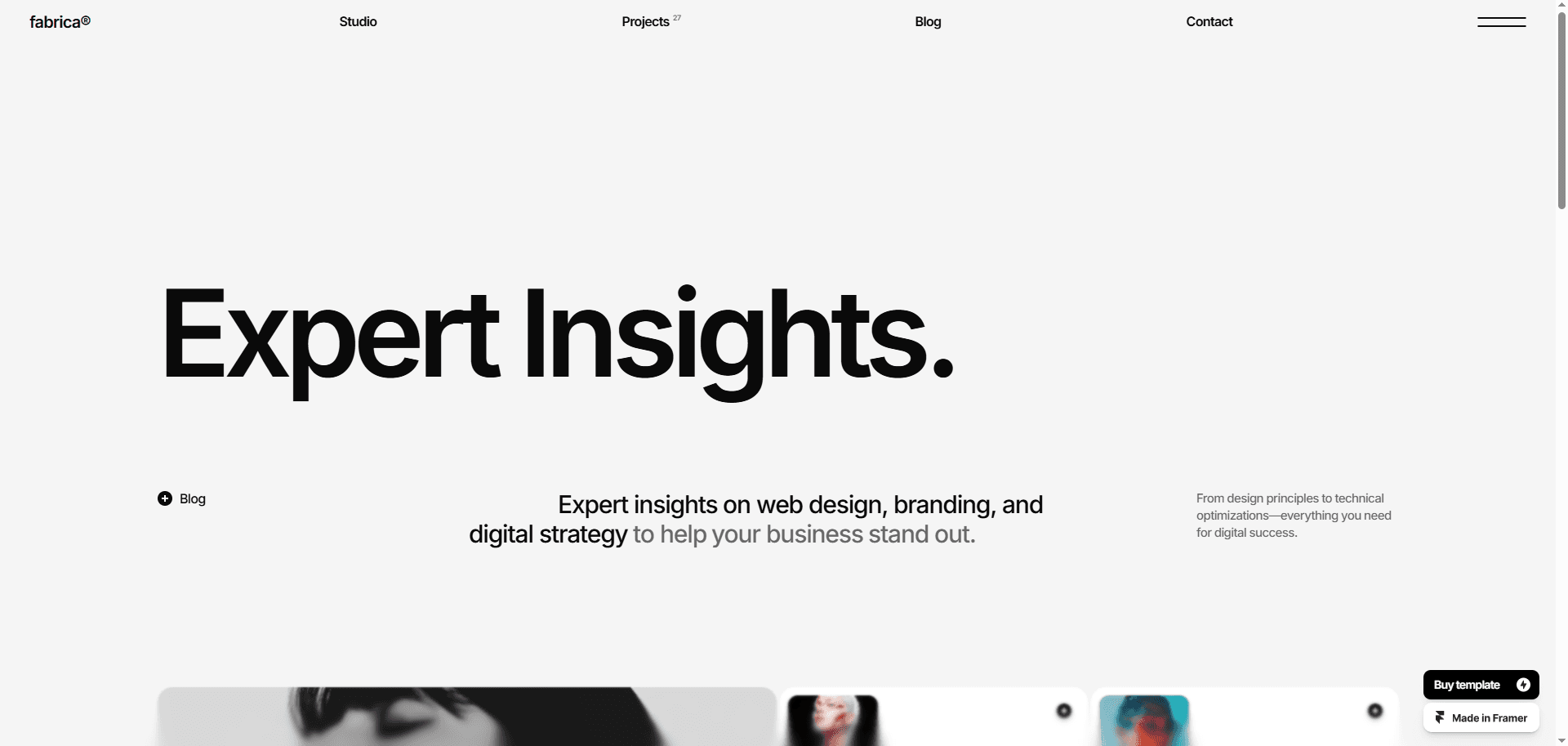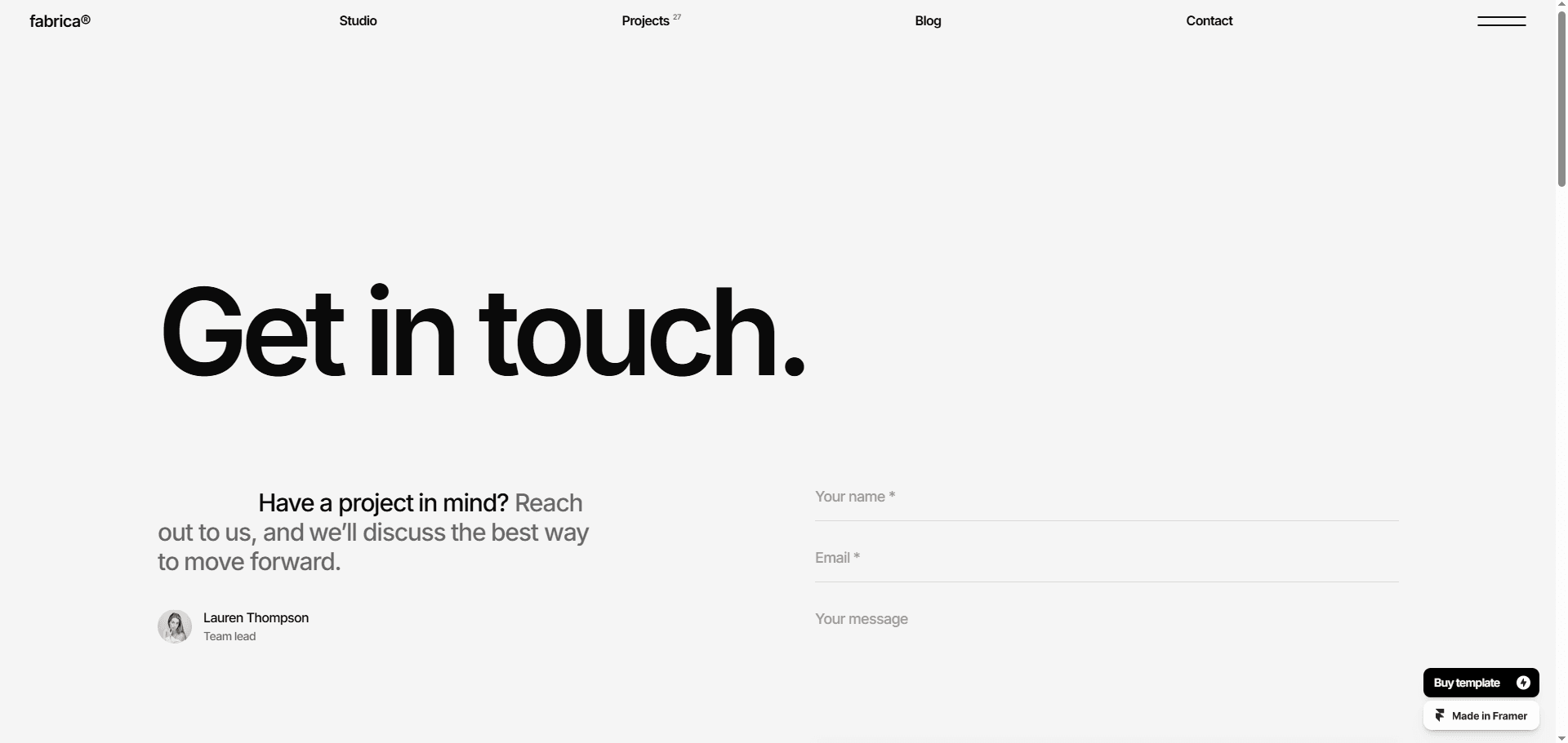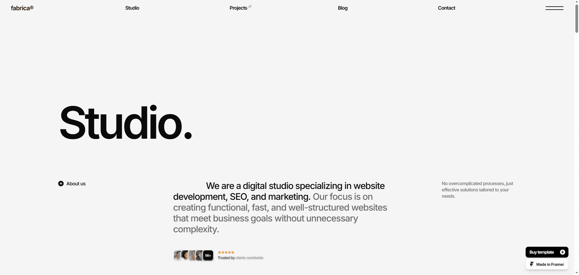 FABRICA® is a sleek, monochrome Framer website template designed for creative studios.