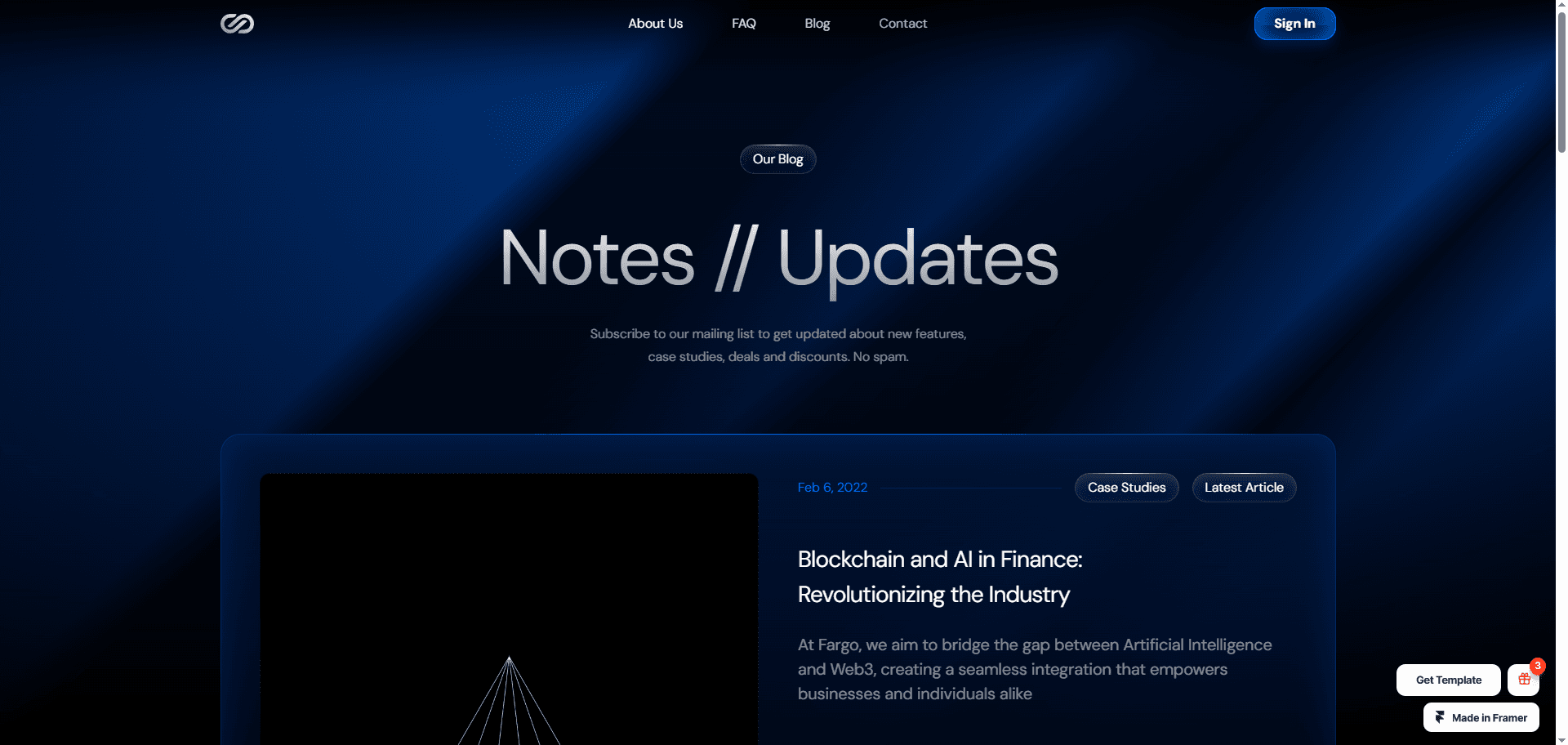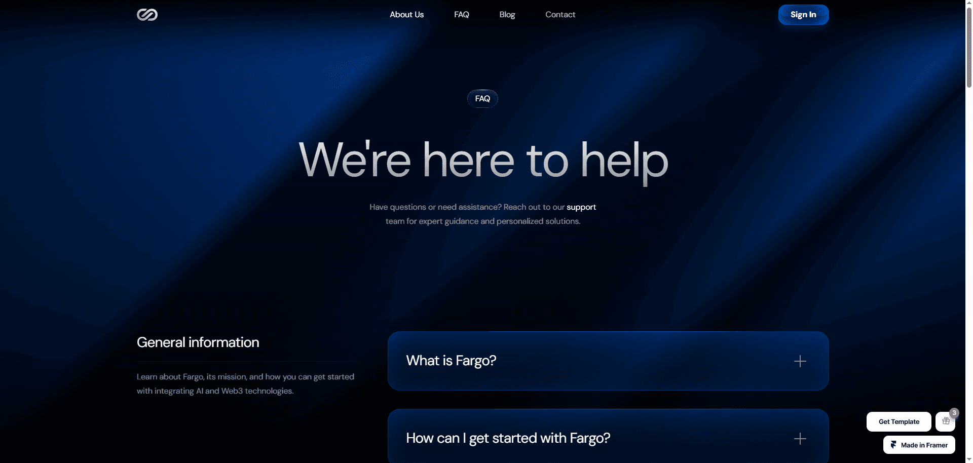 Fargo is a dark-themed website template that aims to make AI and Web3 startups look 10x bigger and get engaged leads.