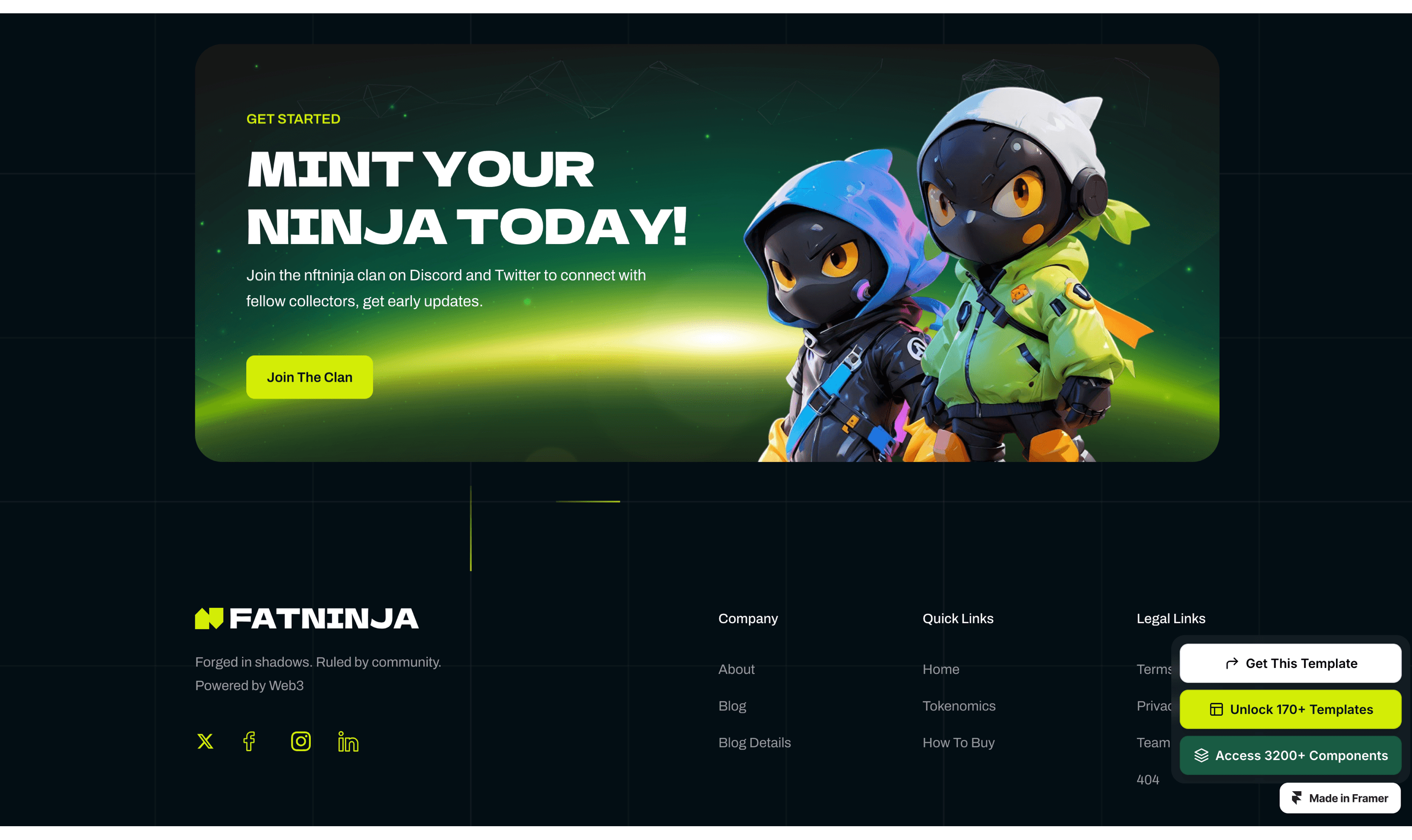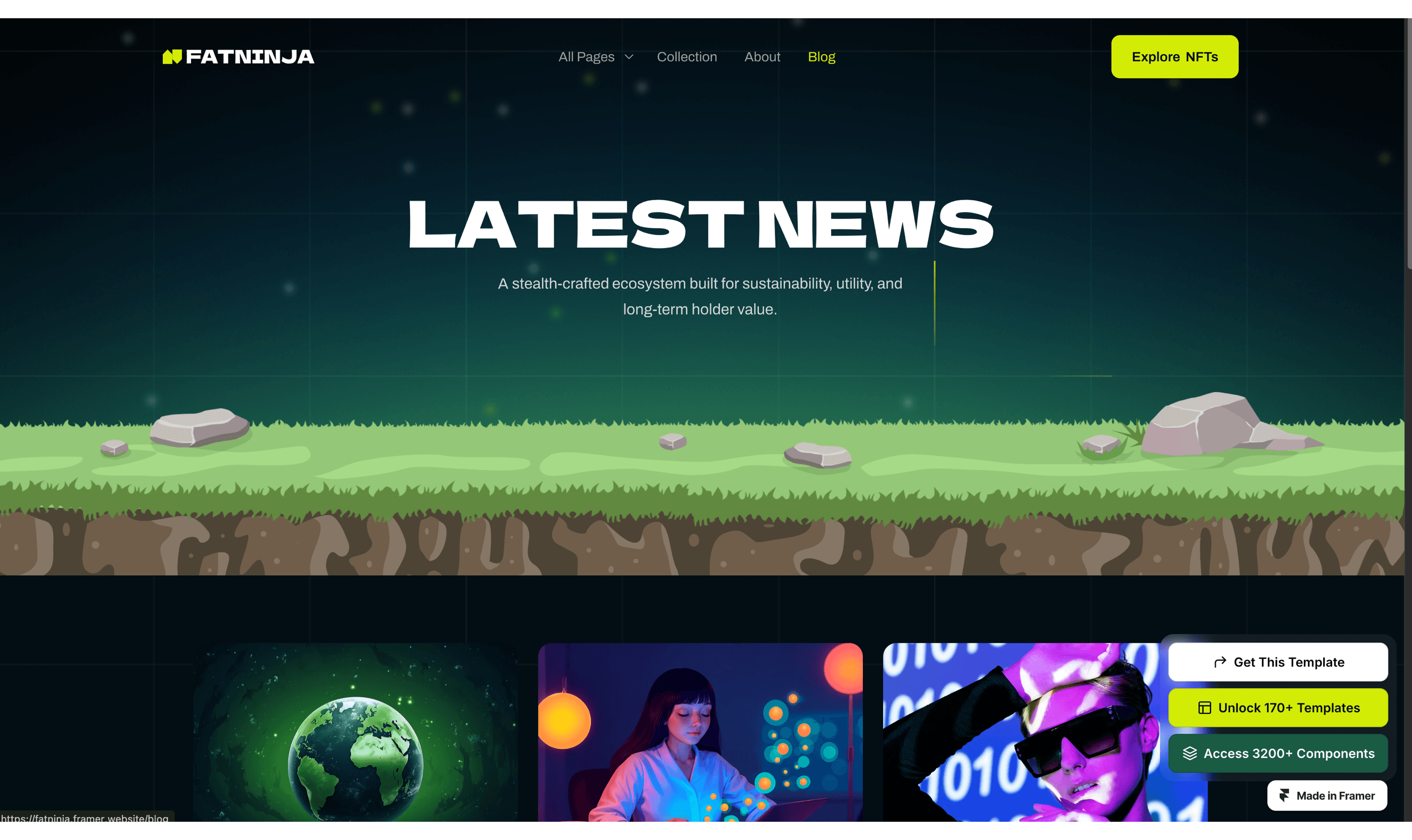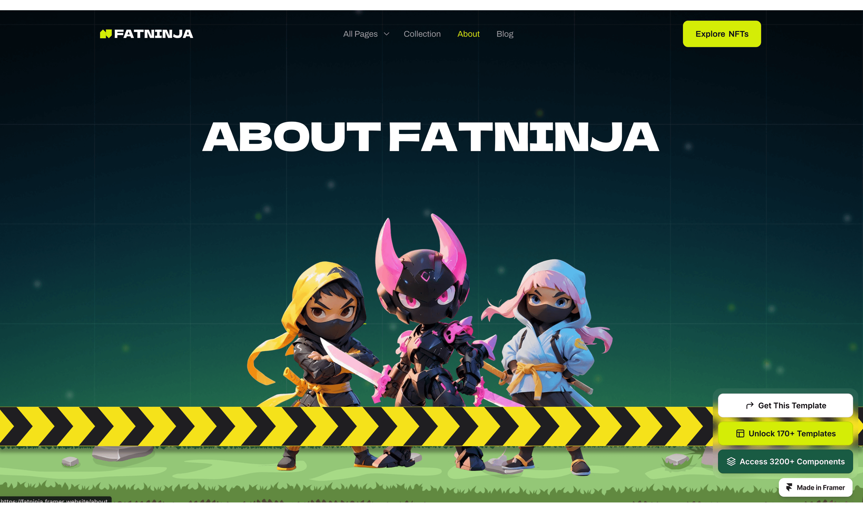 FatNinja is a futuristic and eye-catching Framer template crafted for NFT projects, Cryptocurrency. digital collectibles, blockchain and Web3 ventures.