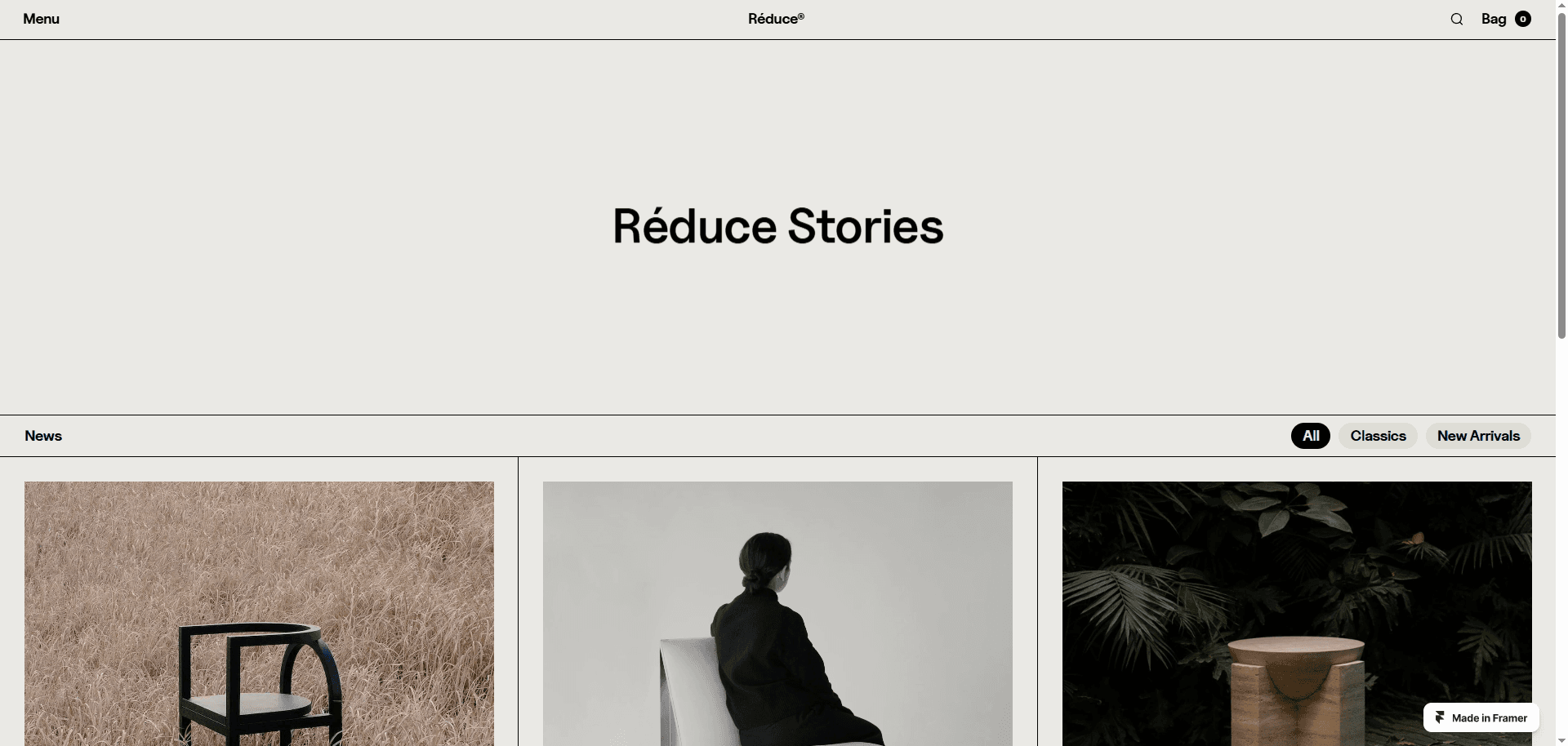 A high quality Framer x Shopify template for brands that embrace minimalism.