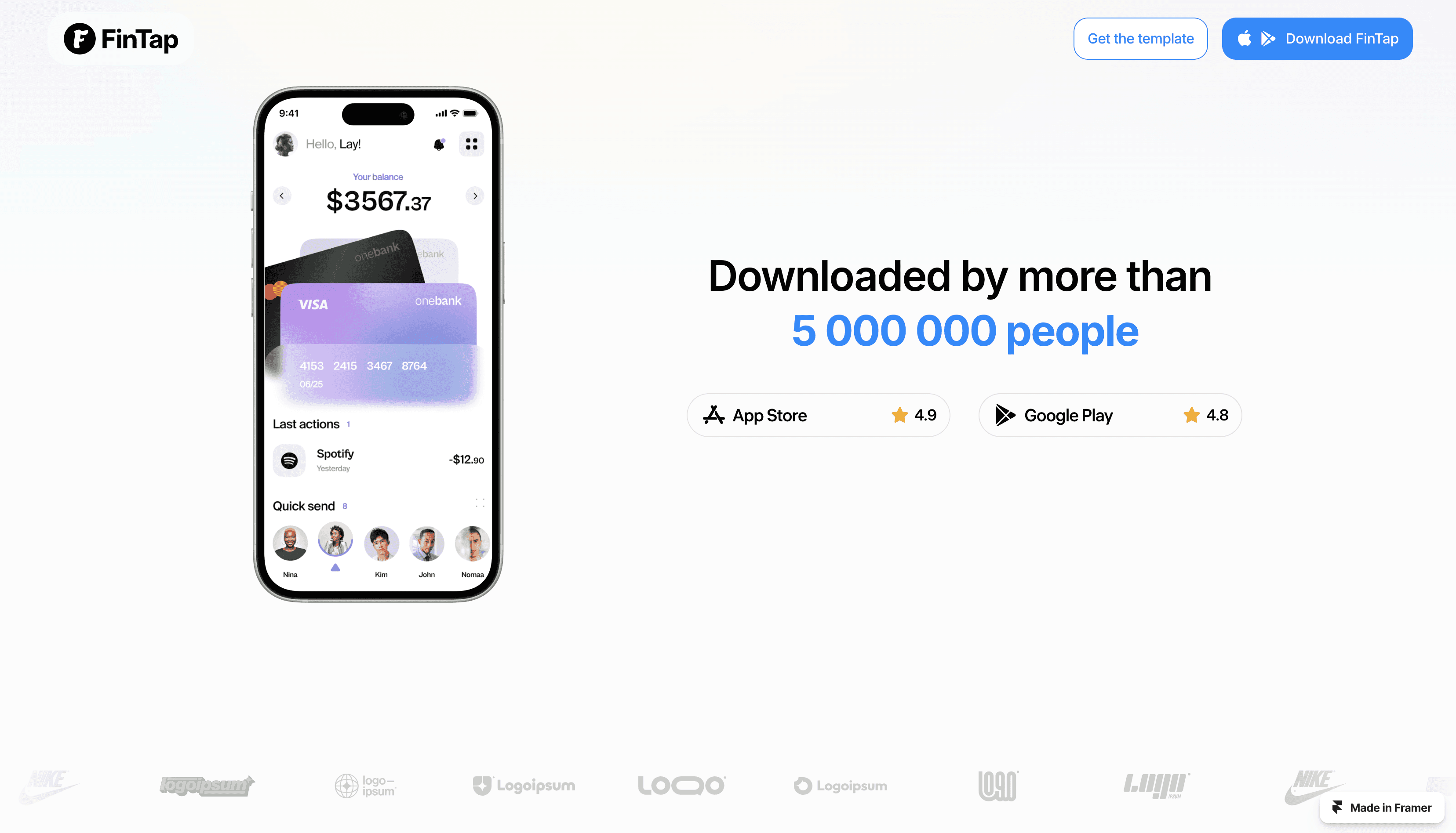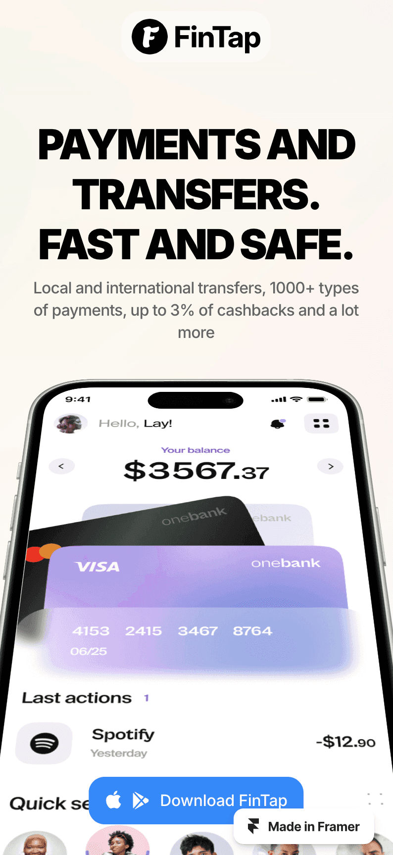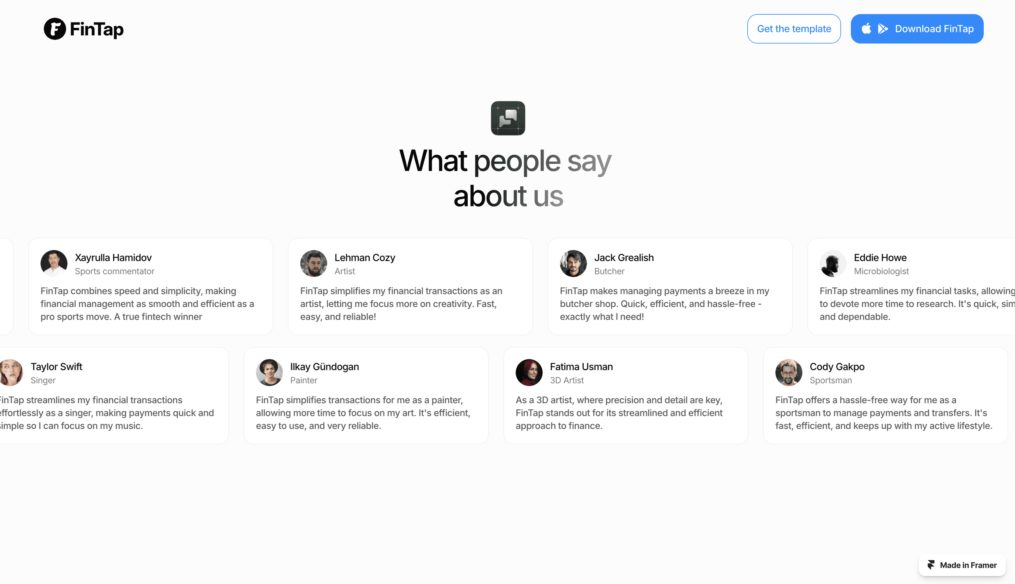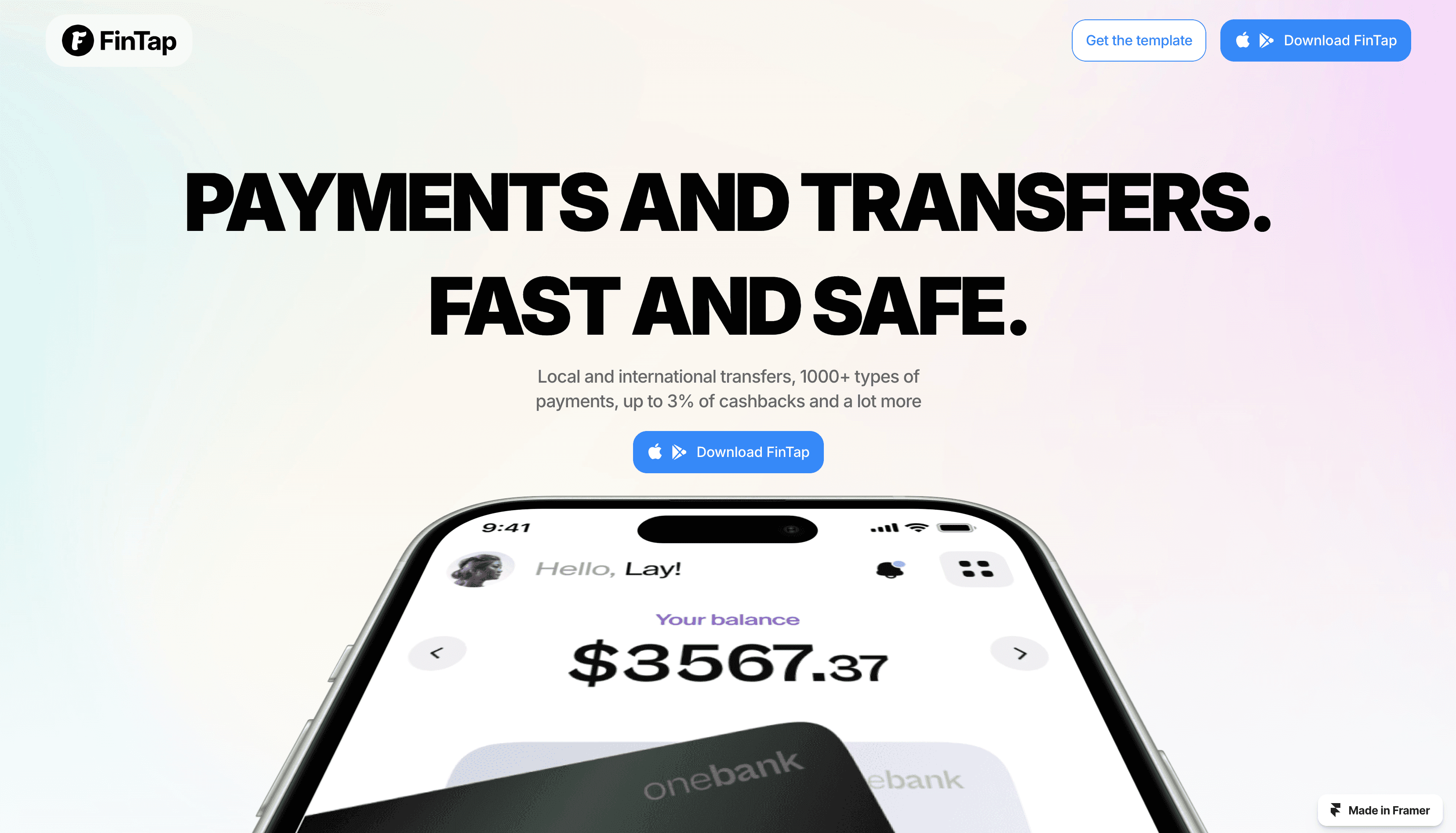 FinTap: A modern mobile app landing page template with a sleek, vibrant design — ideal for indie hackers and individual developers.
