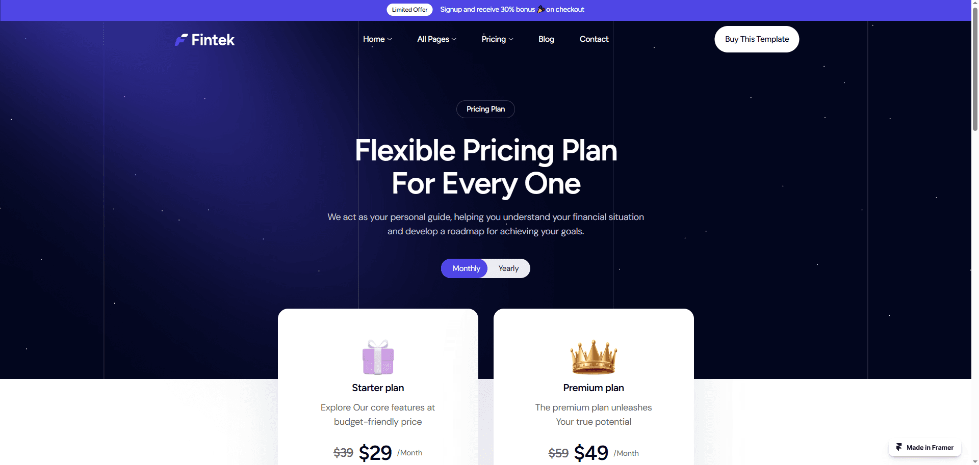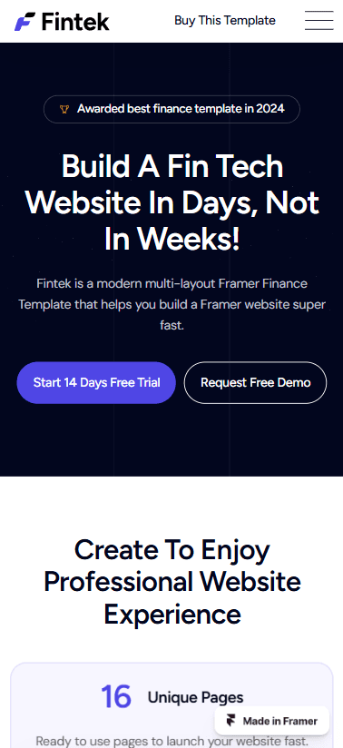 Launch your FinTech website faster with a Framer template! Build trust & showcase features with beautiful pre-designed pages for services, pricing, and user dashboards.