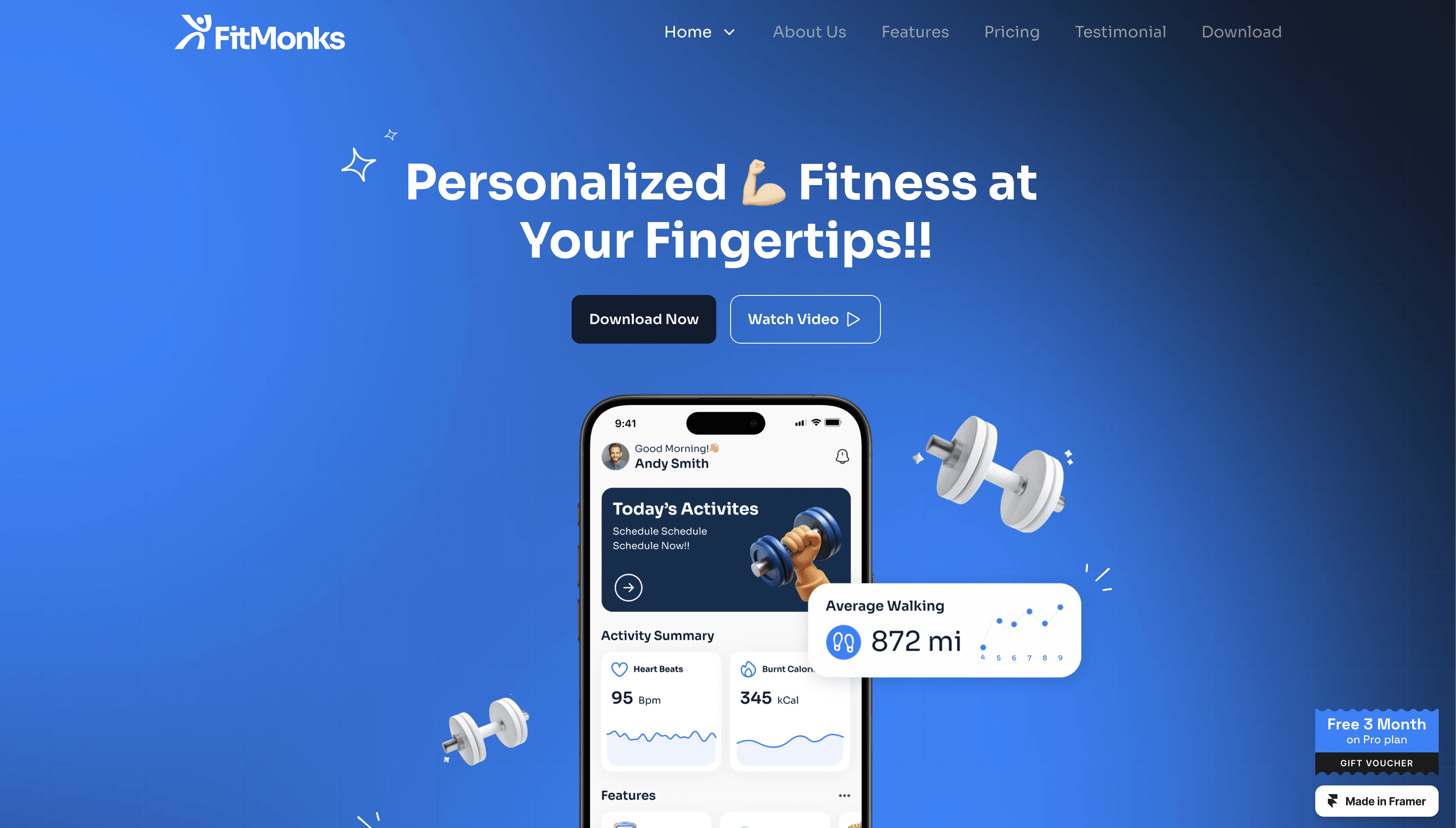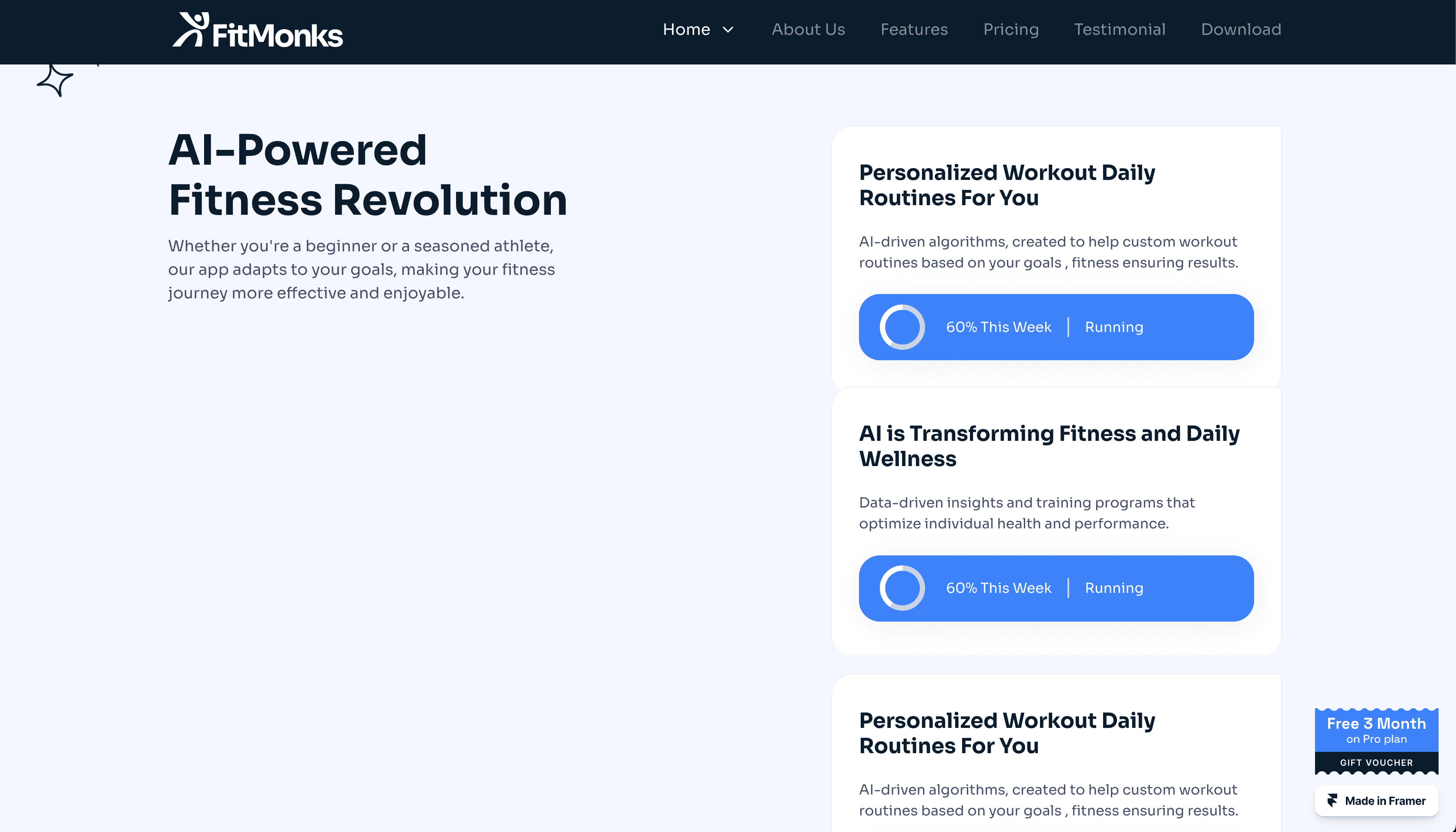 FitMonks is the ultimate AI-driven fitness companion designed to enhance users' fitness journey with personalised workouts, real-time coaching, and adaptive wellness insights.