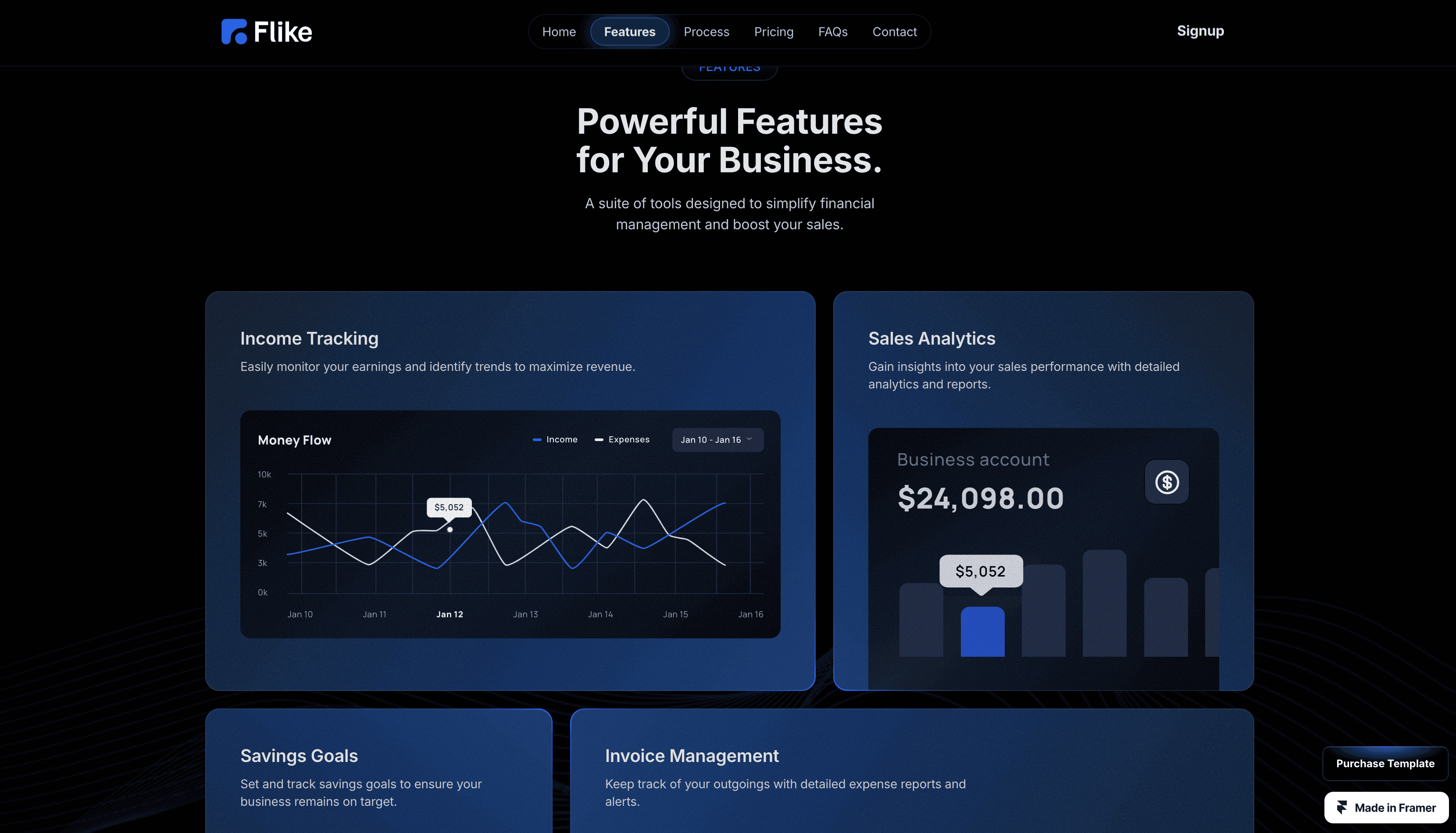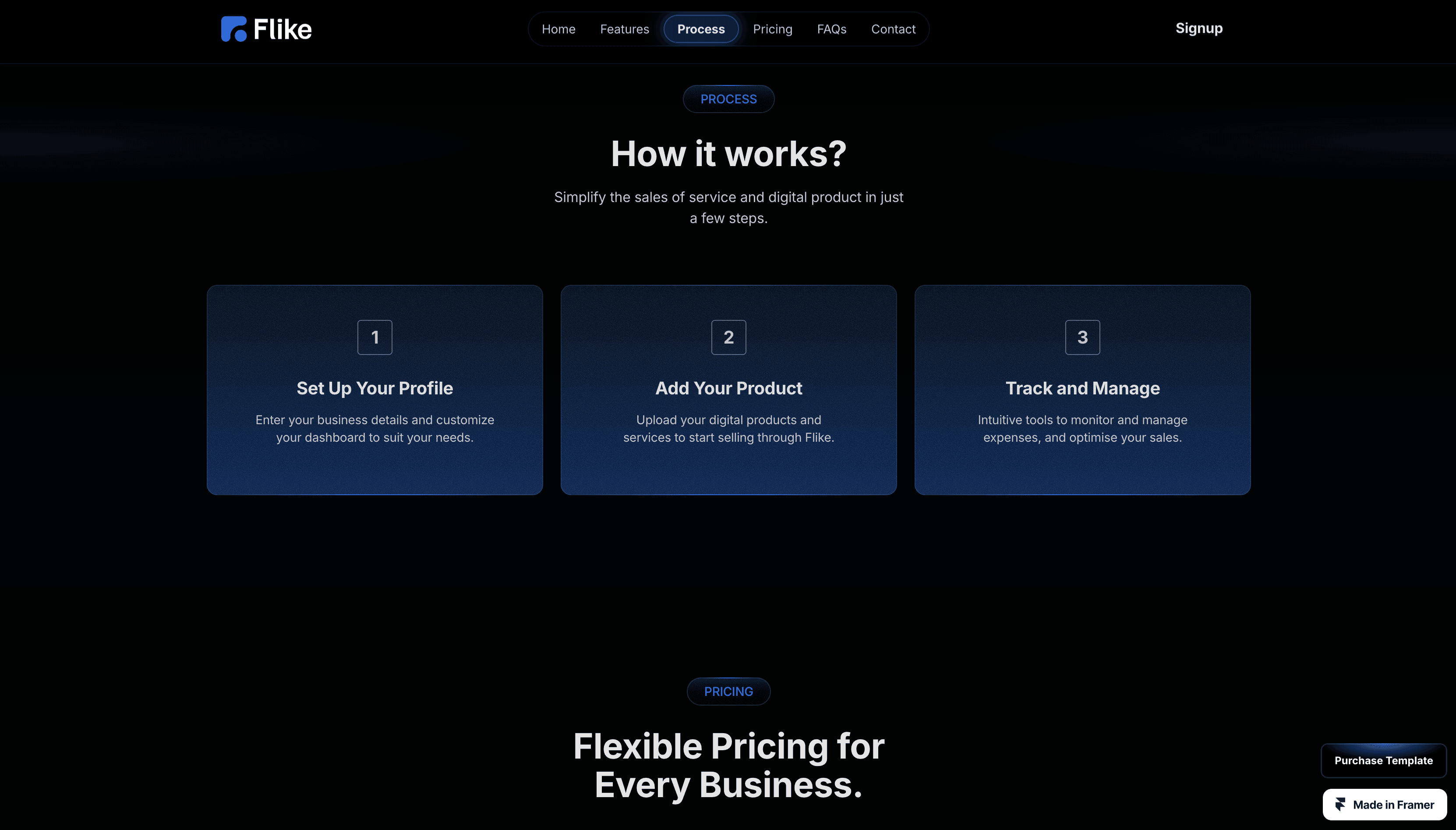 Flike, is a sleek and modern Framer template designed for showcasing digital products and services.