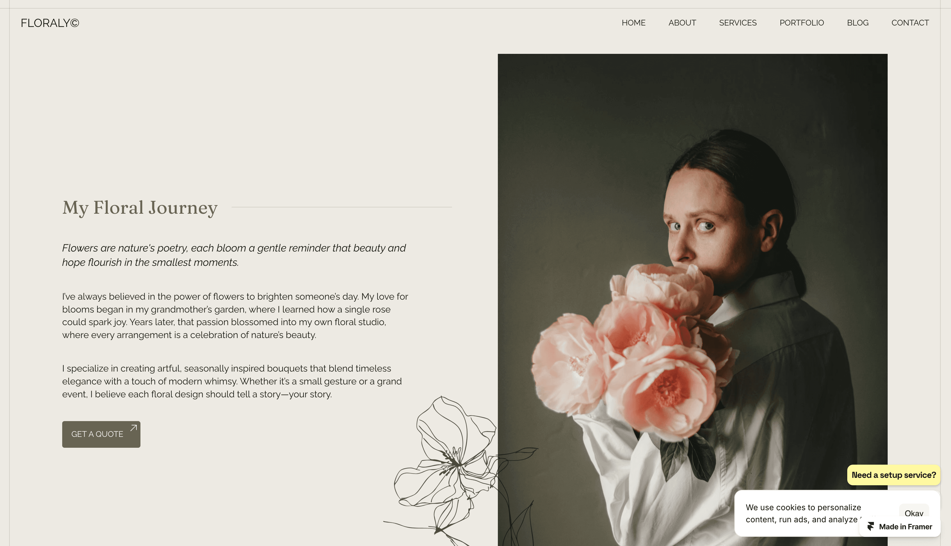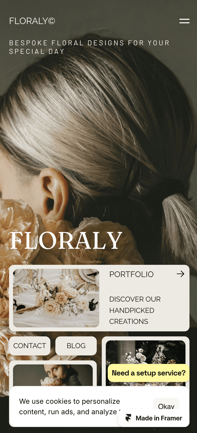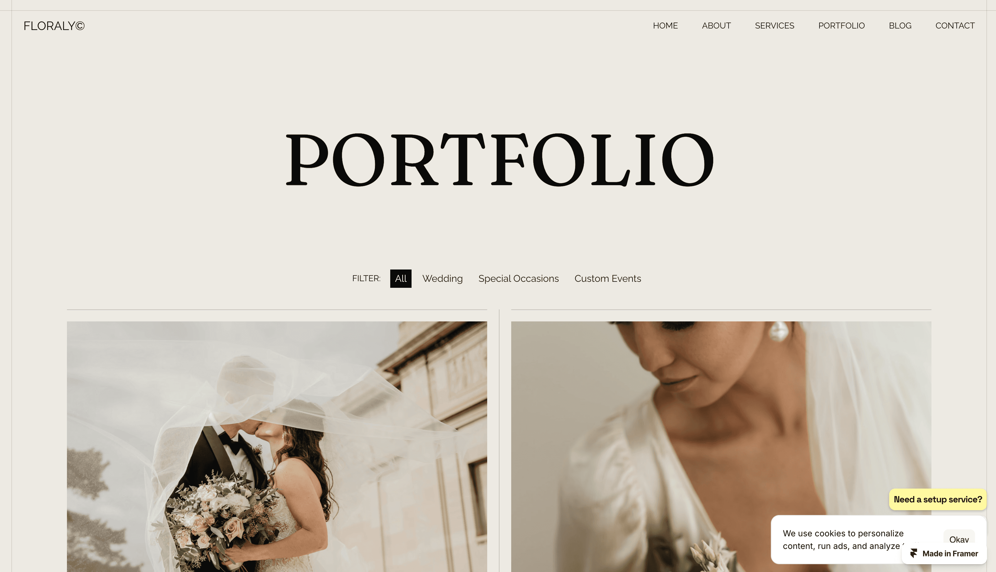 Showcase your floral artistry and photography with this stunning Framer template, designed for florists, flower designers, and wedding photographers.